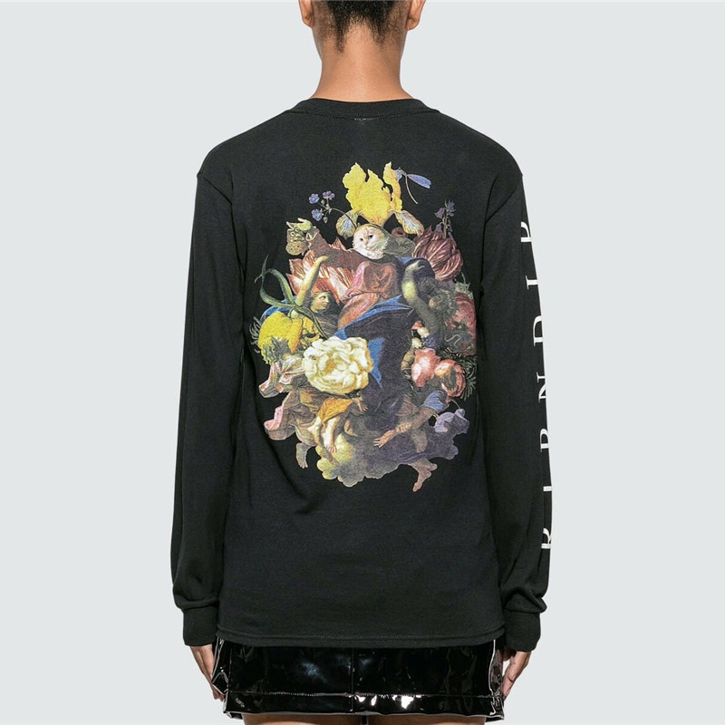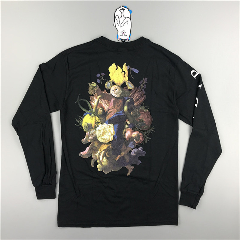 Флэш-распродажа ripndip heavinly bodys Bitch Cat Paradise Flower Virgin Cat Картина маслом Футболка с длинными рукавами