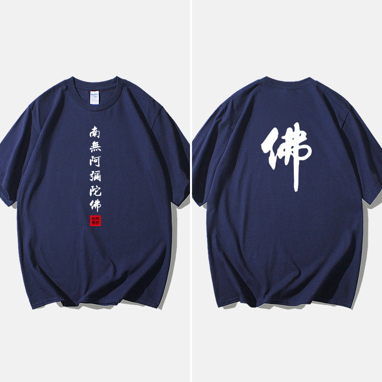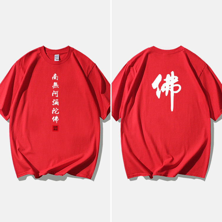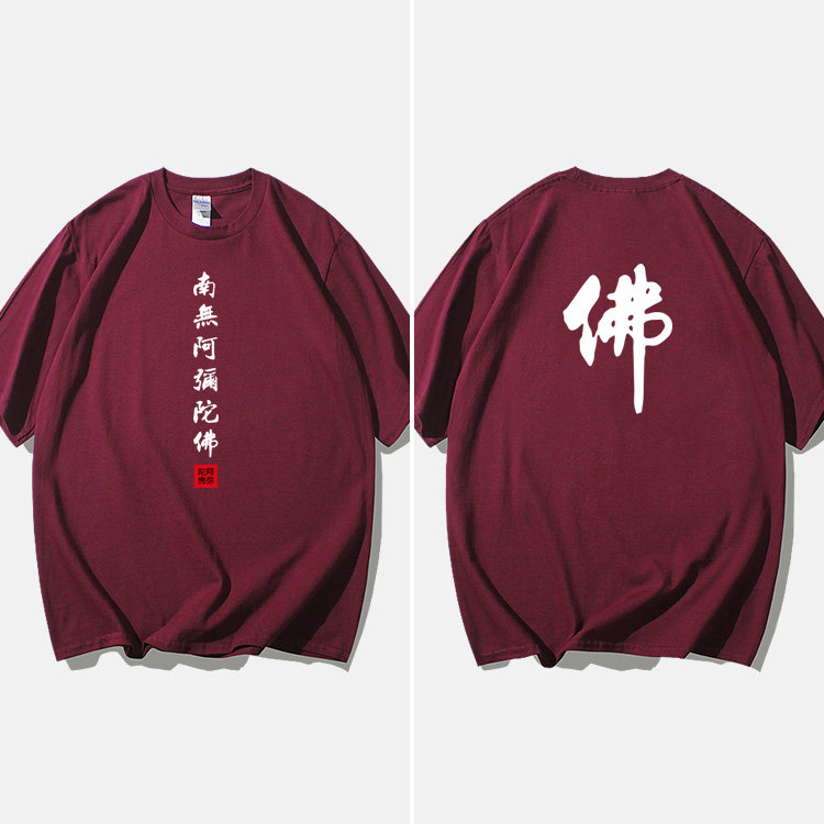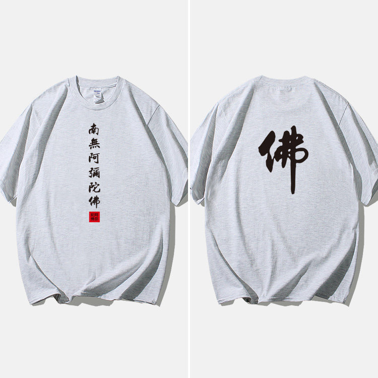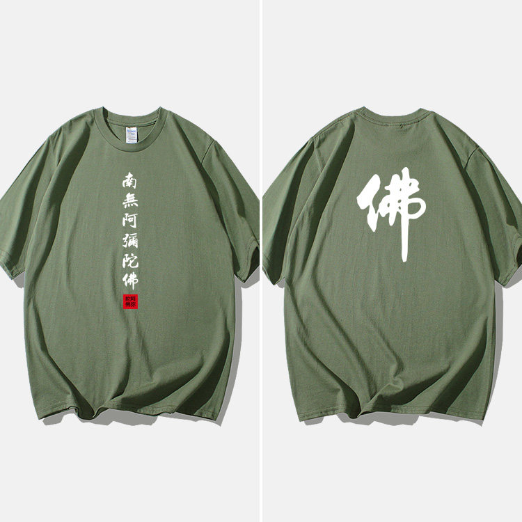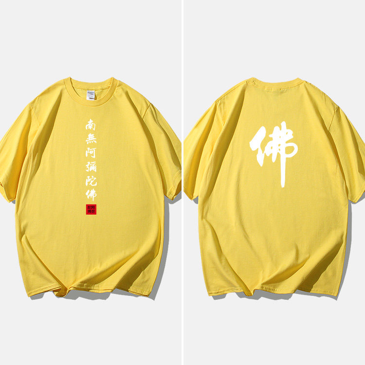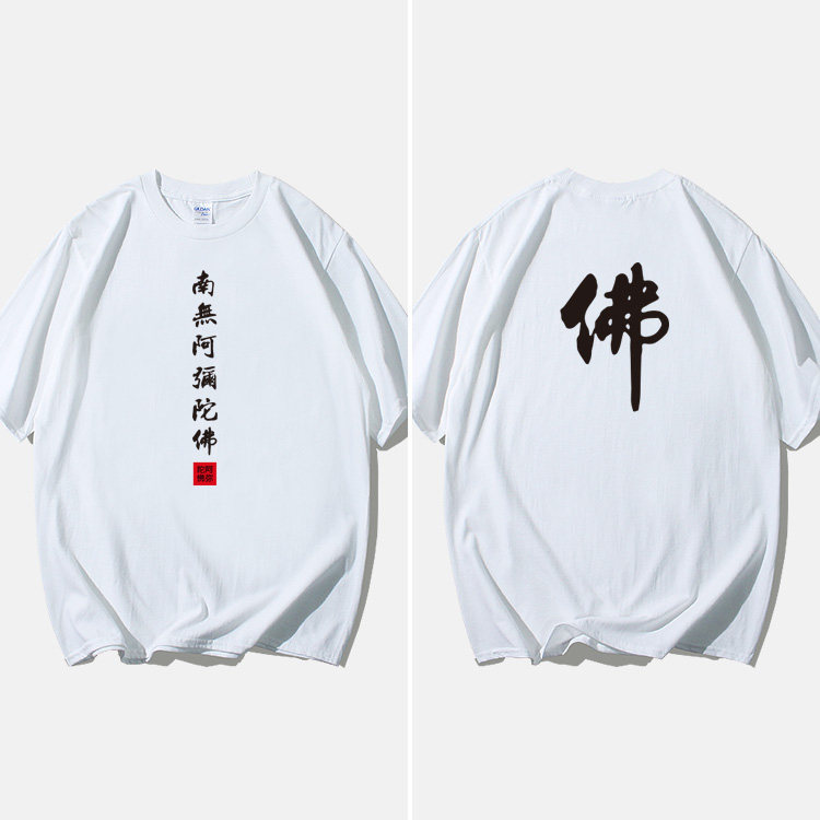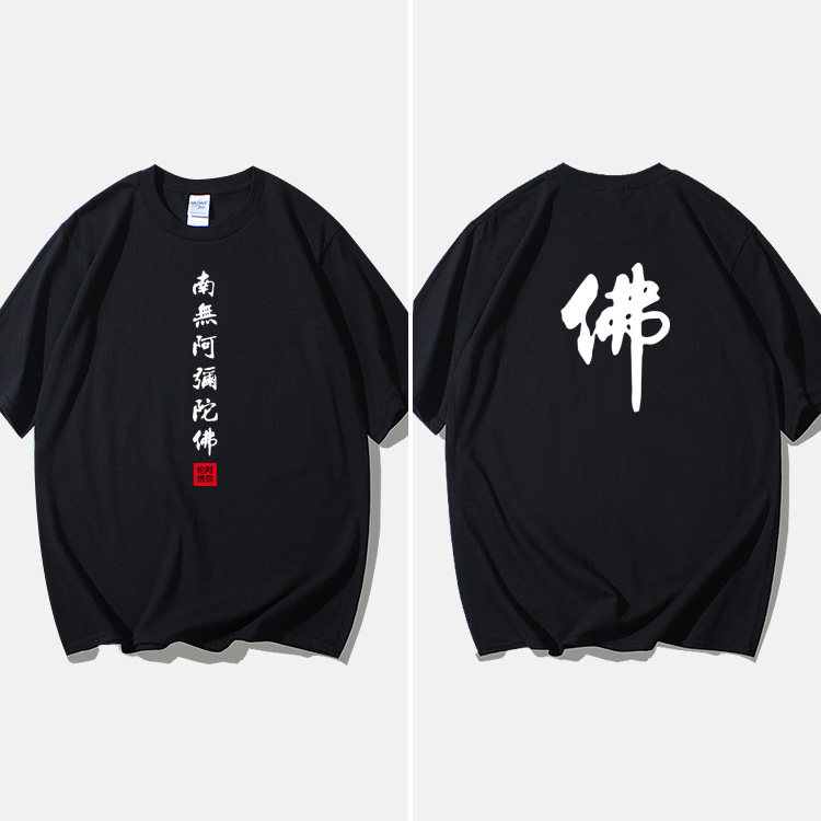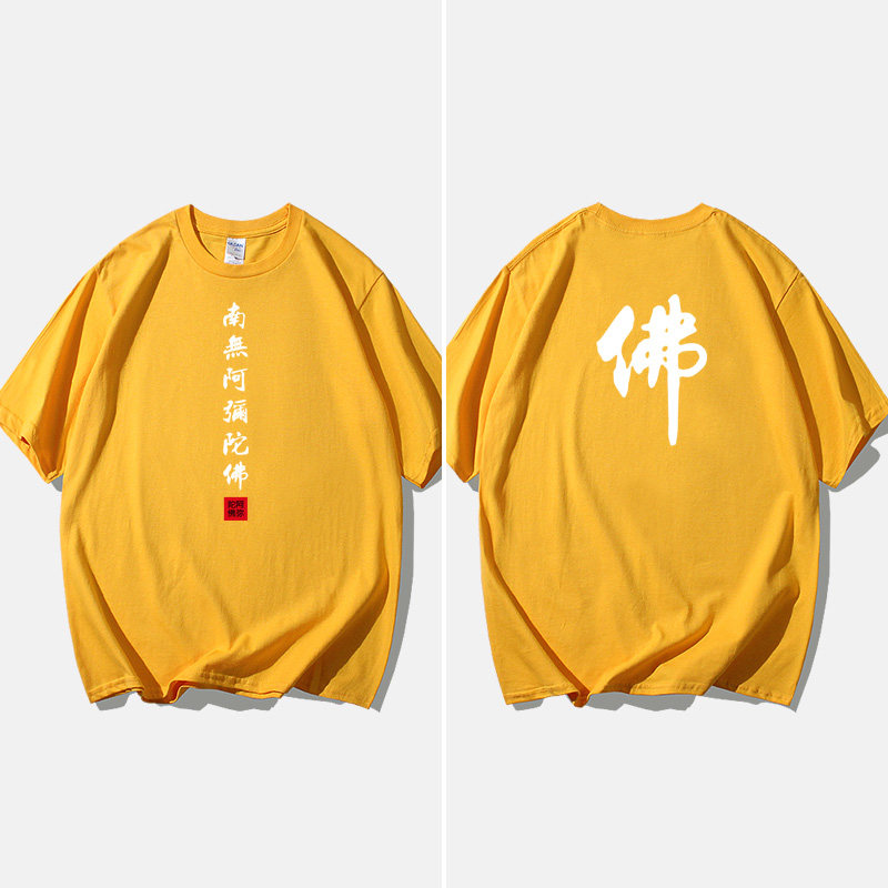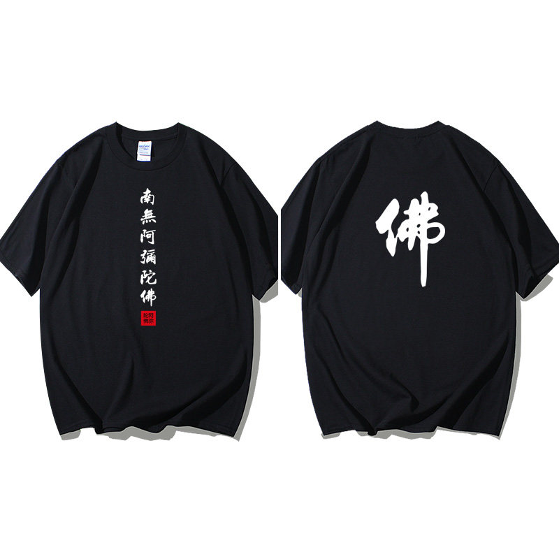 Национальный стиль китайской буддийской культуры Nanwu Amitabha футболка с короткими рукавами для молодых мужчин и женщин с круглым вырезом, большой размер, широкий