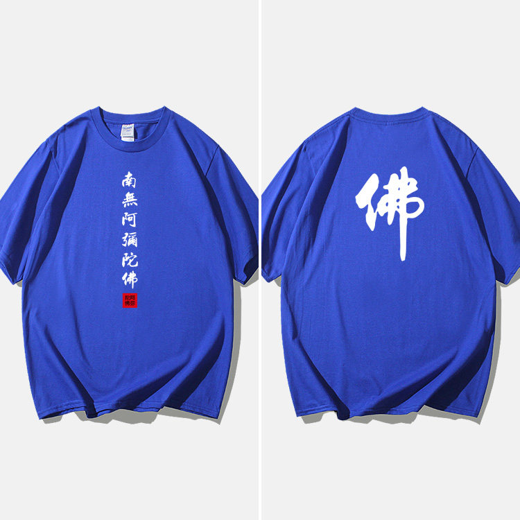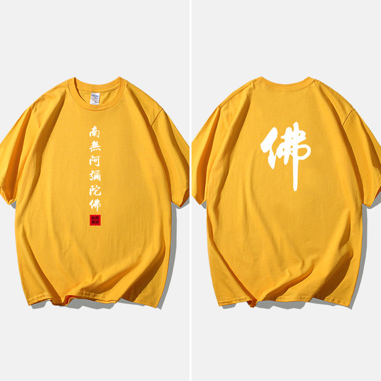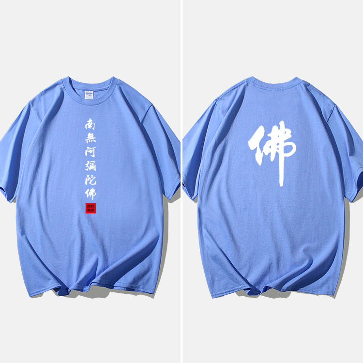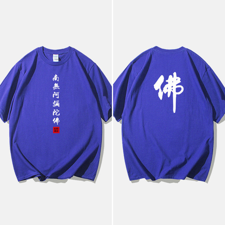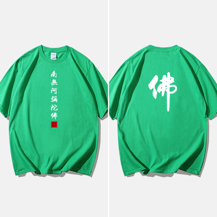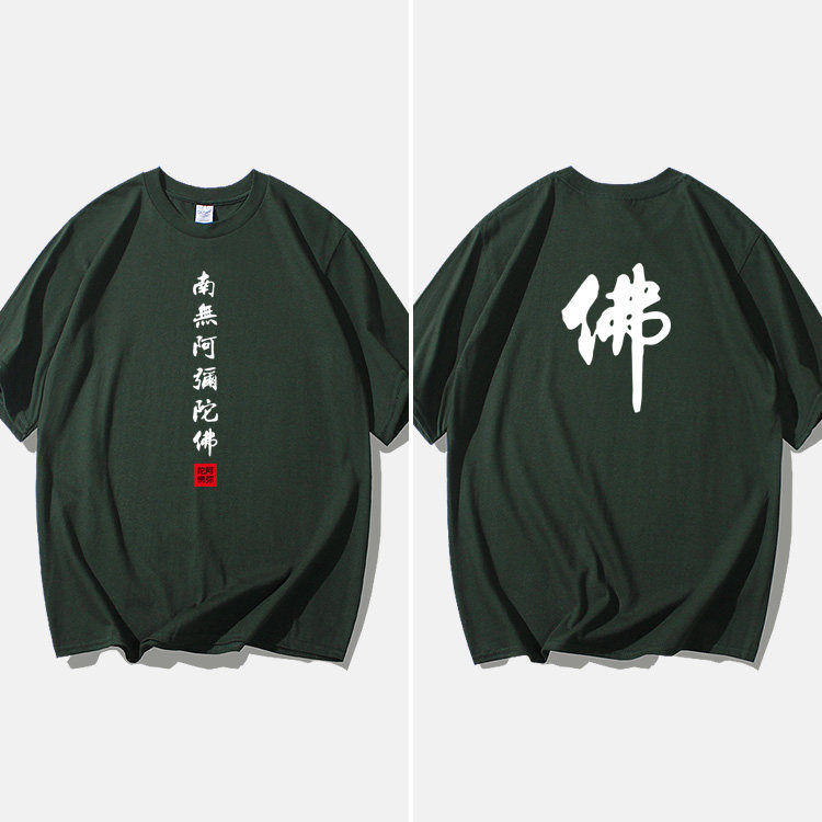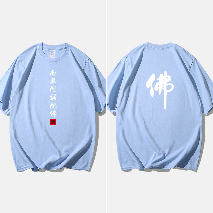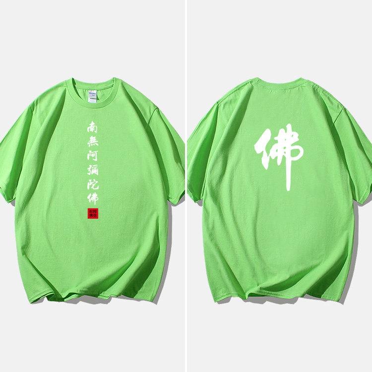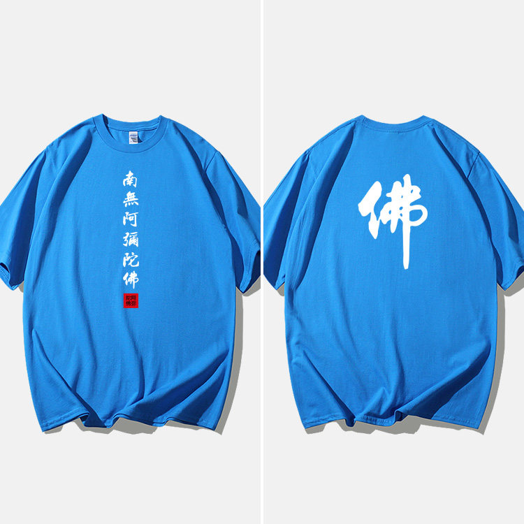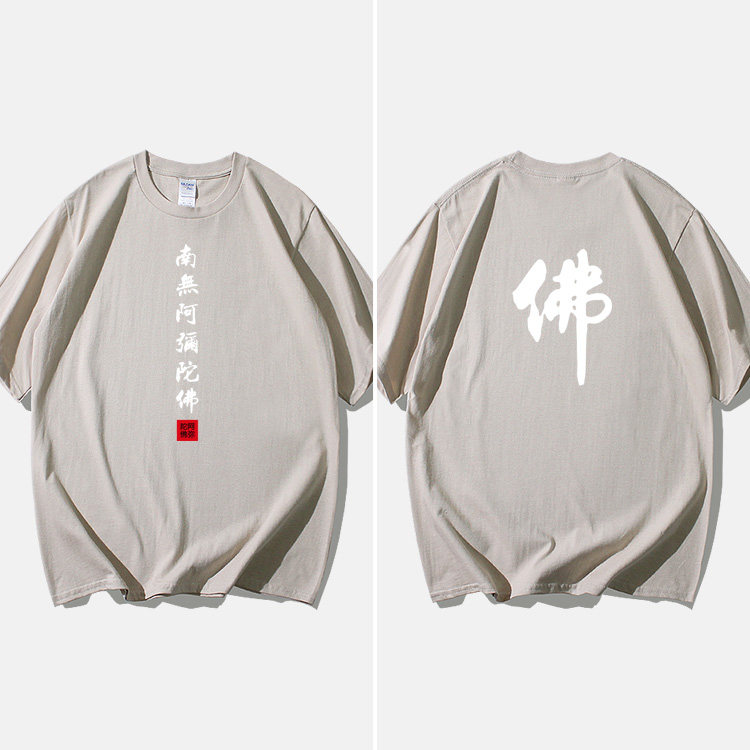 Национальный стиль китайской буддийской культуры Nanwu Amitabha футболка с короткими рукавами для молодых мужчин и женщин с круглым вырезом, большой размер, широкий