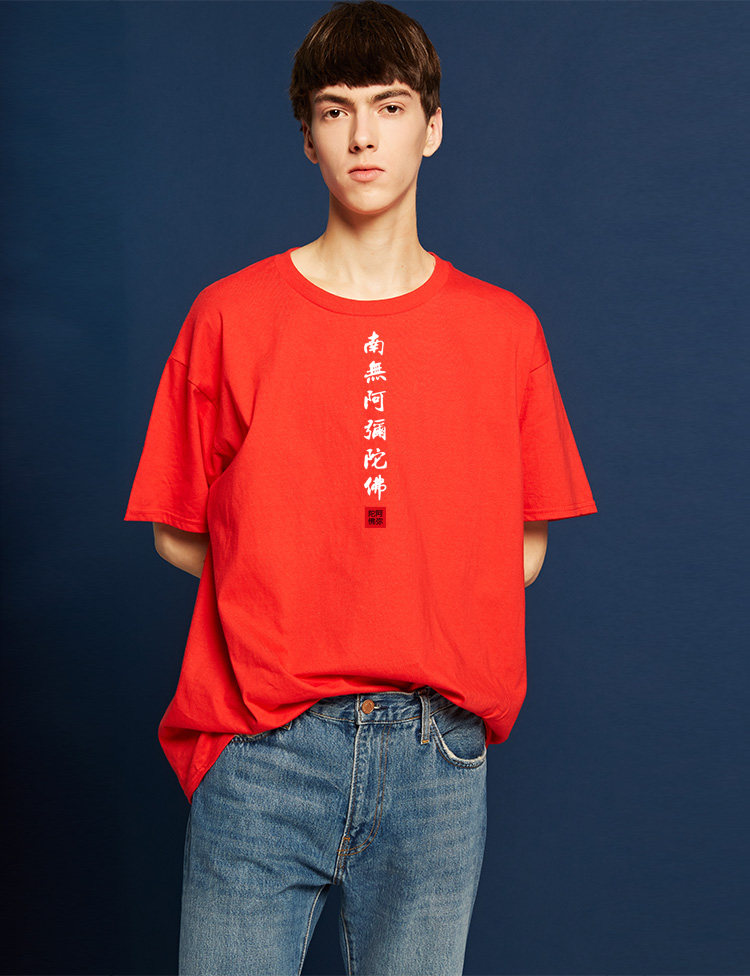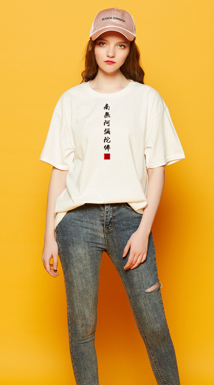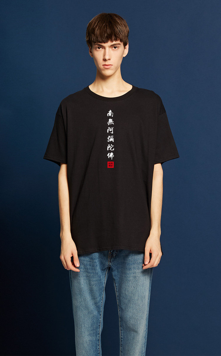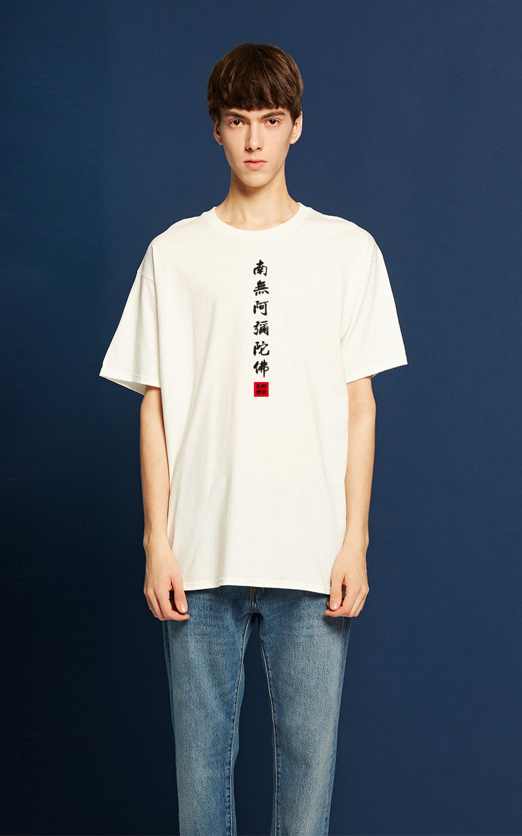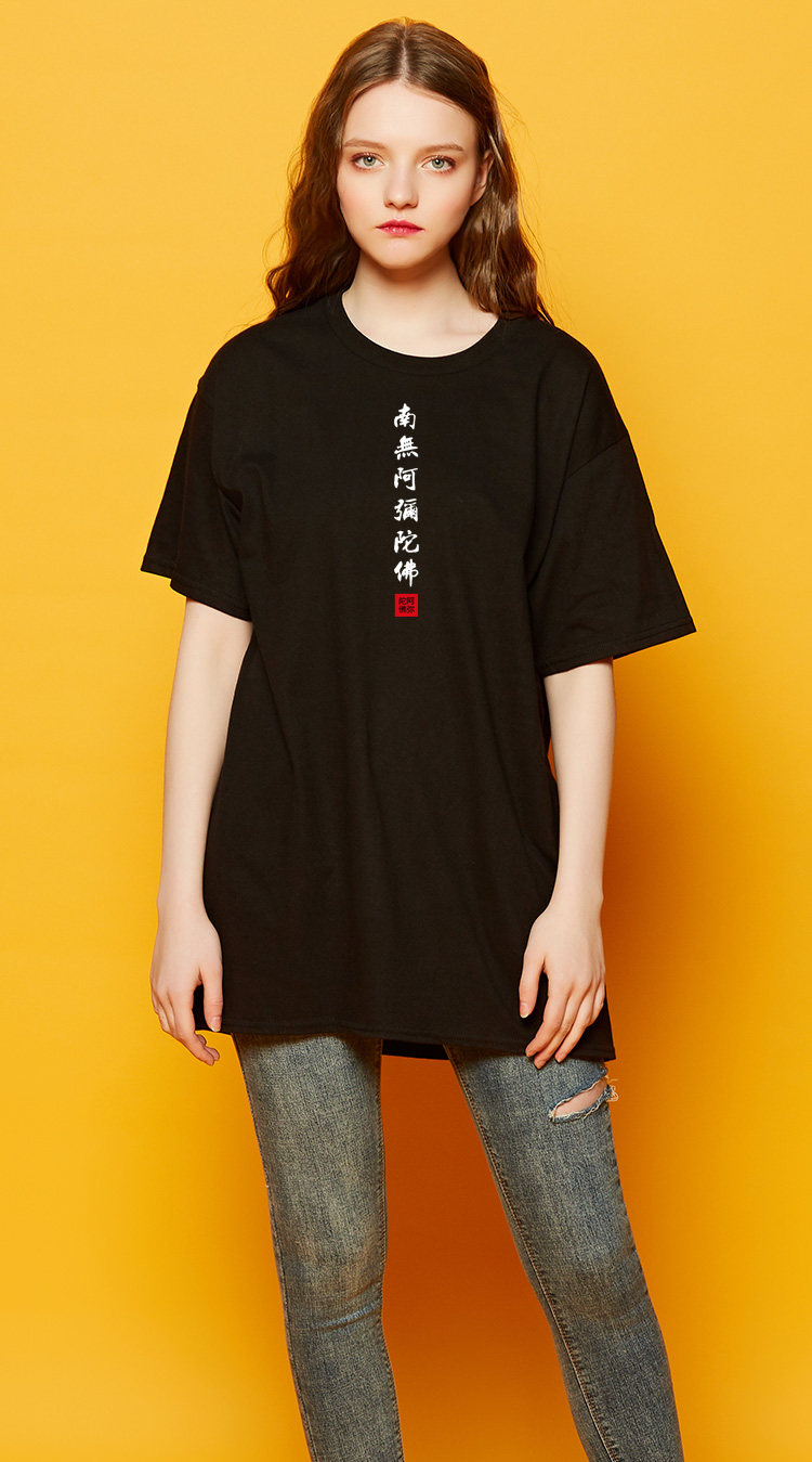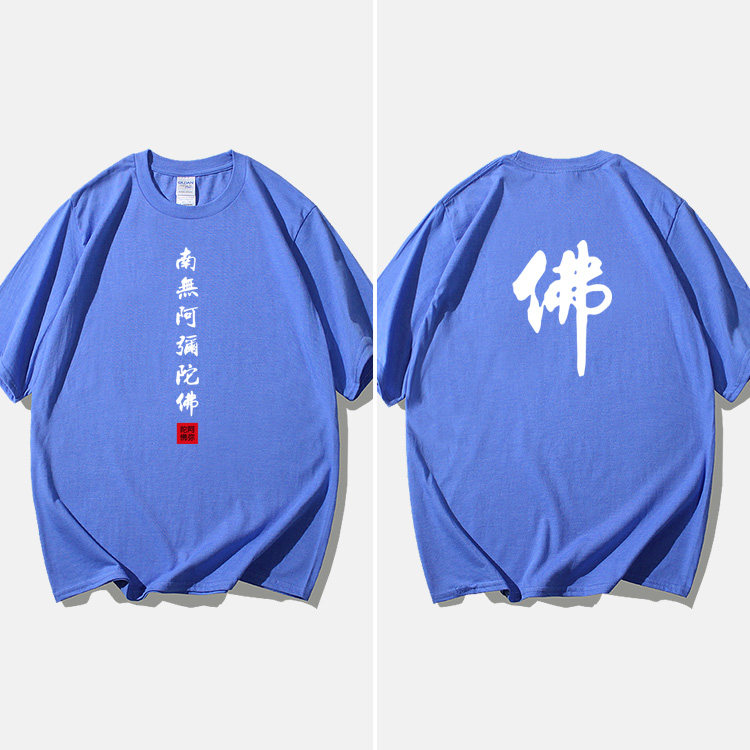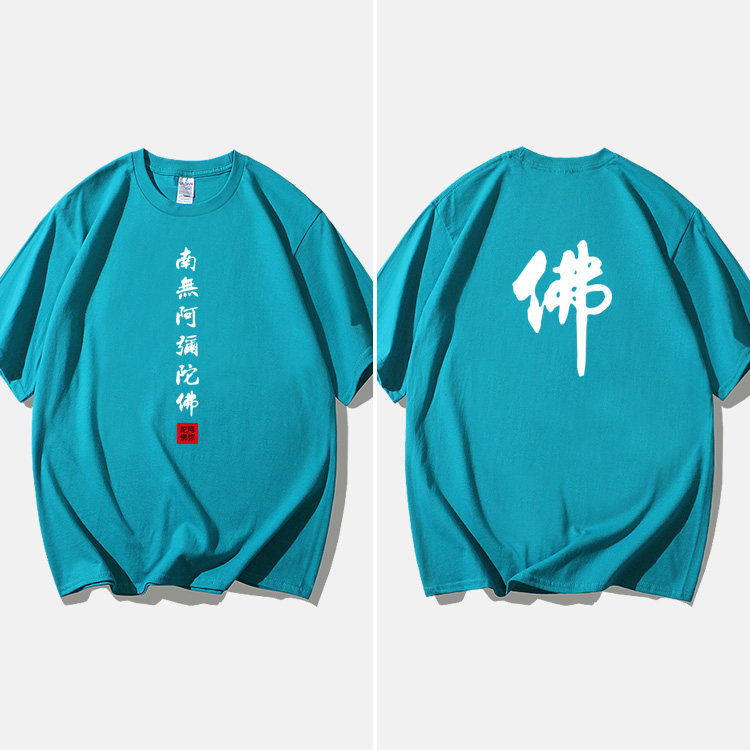 Национальный стиль китайской буддийской культуры Nanwu Amitabha футболка с короткими рукавами для молодых мужчин и женщин с круглым вырезом, большой размер, широкий