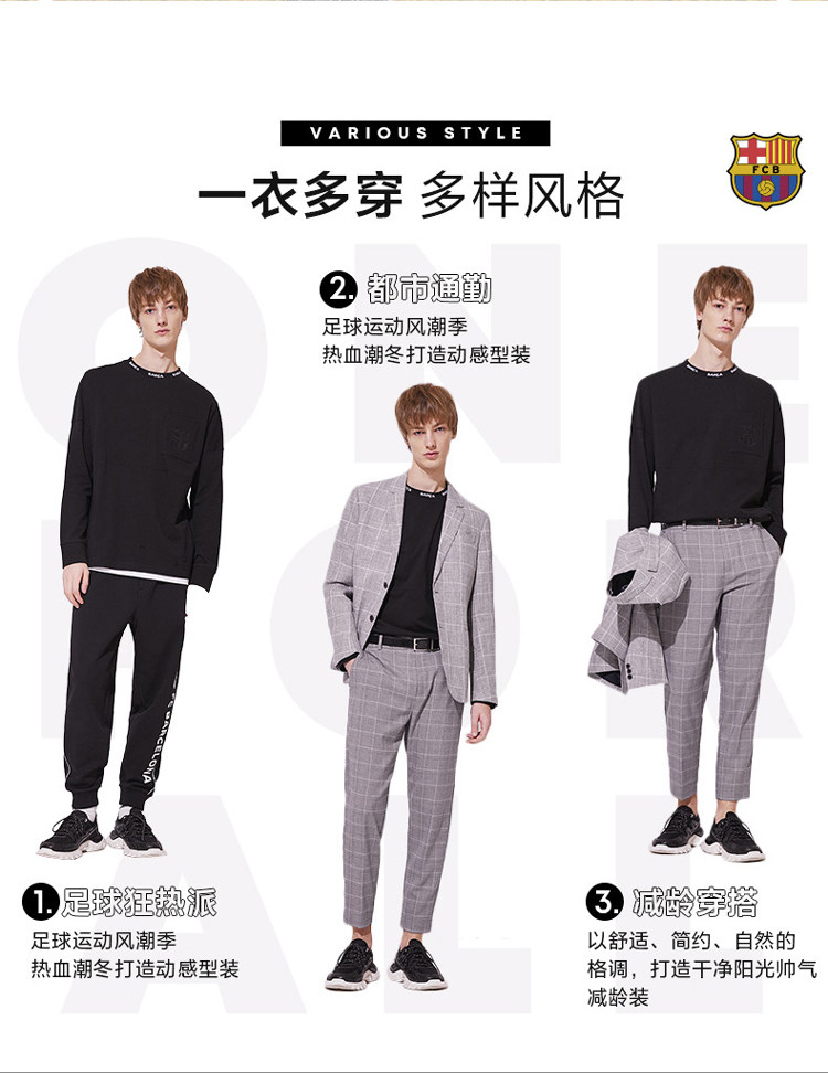 BZSJ Джек Джонс Джонс Барселонский футбольный клуб Объединенные мужчины осень и зимняя футболка новая продукция 220102504