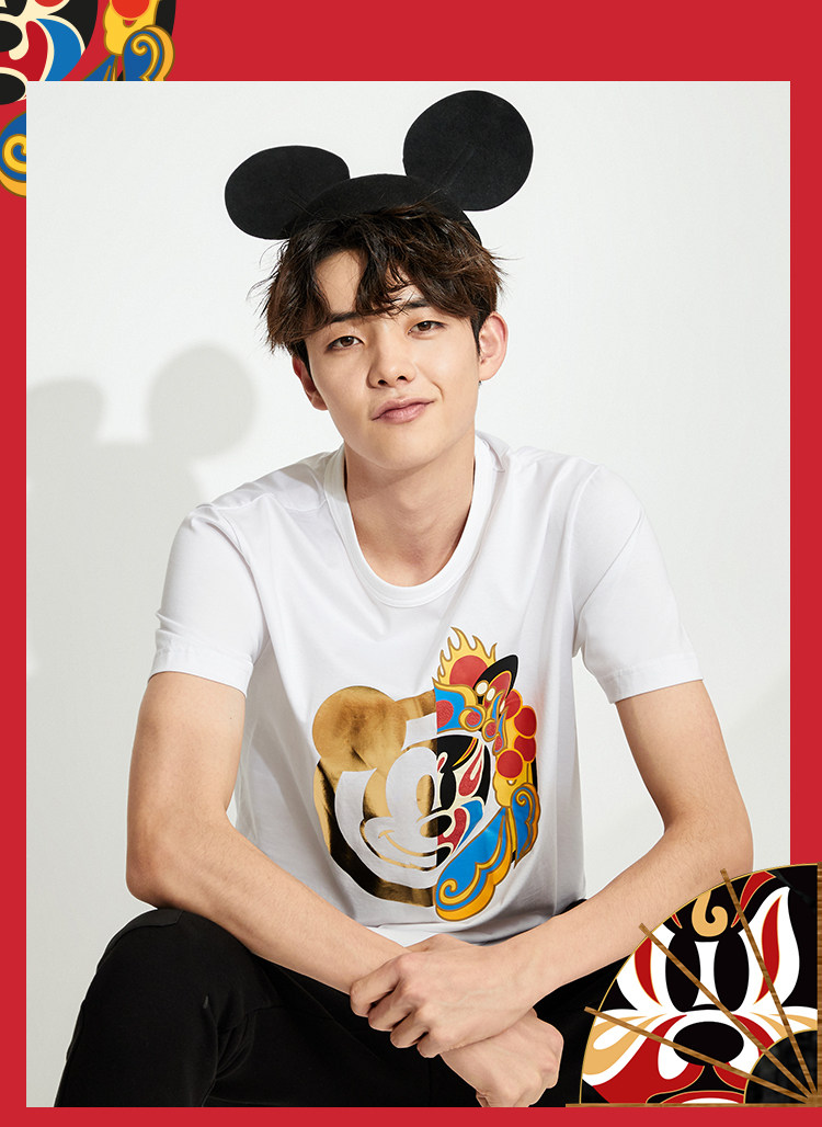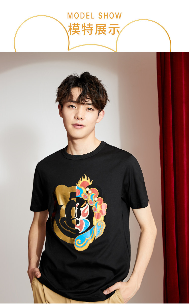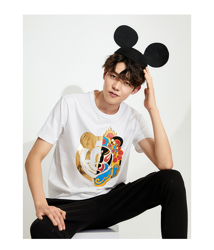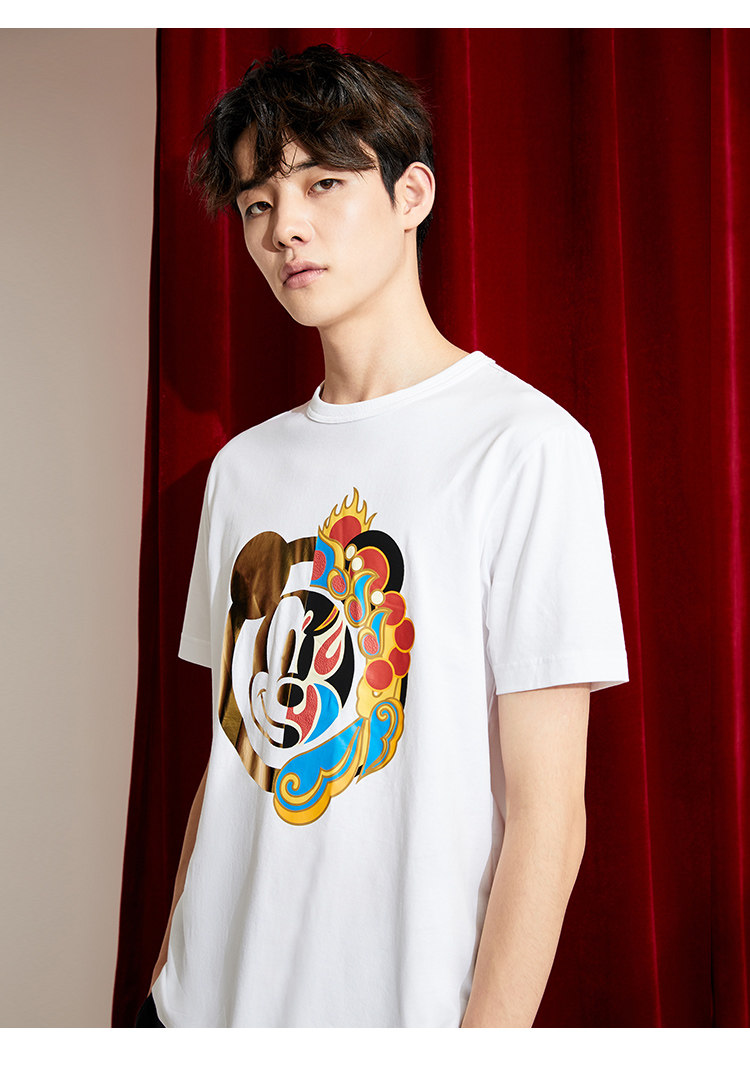 [Co -Brice Disney] Bzsj Mickey Series Short -Sleeved T -Fish Trend Print Par