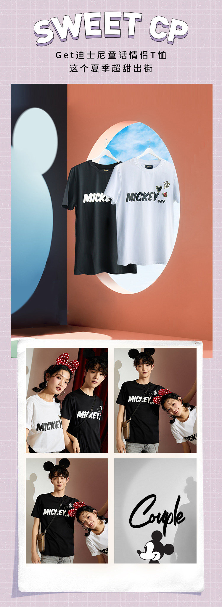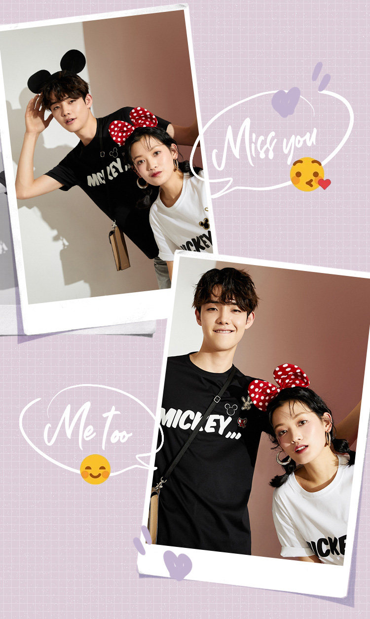 Дисней, хлопковая трендовая базовая футболка для влюбленных