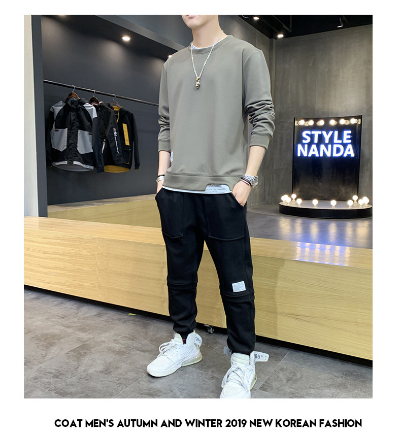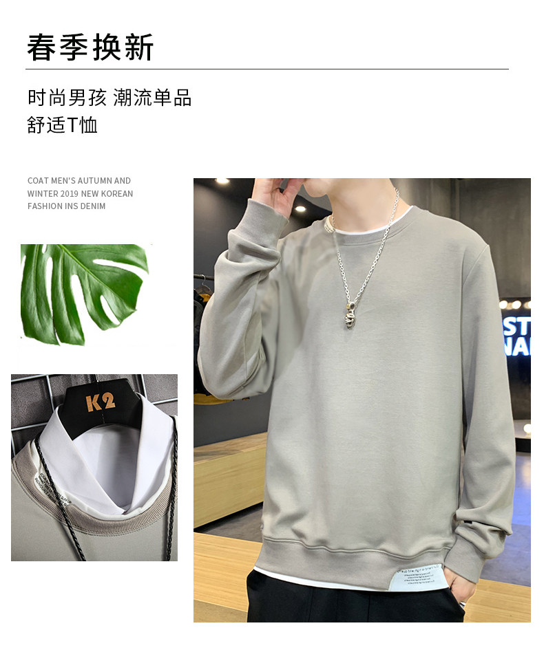 Мужской весенний лонгслив, трендовый комплект для отдыха, базовая приятная телу толстовка, 2020, в корейском стиле, оверсайз