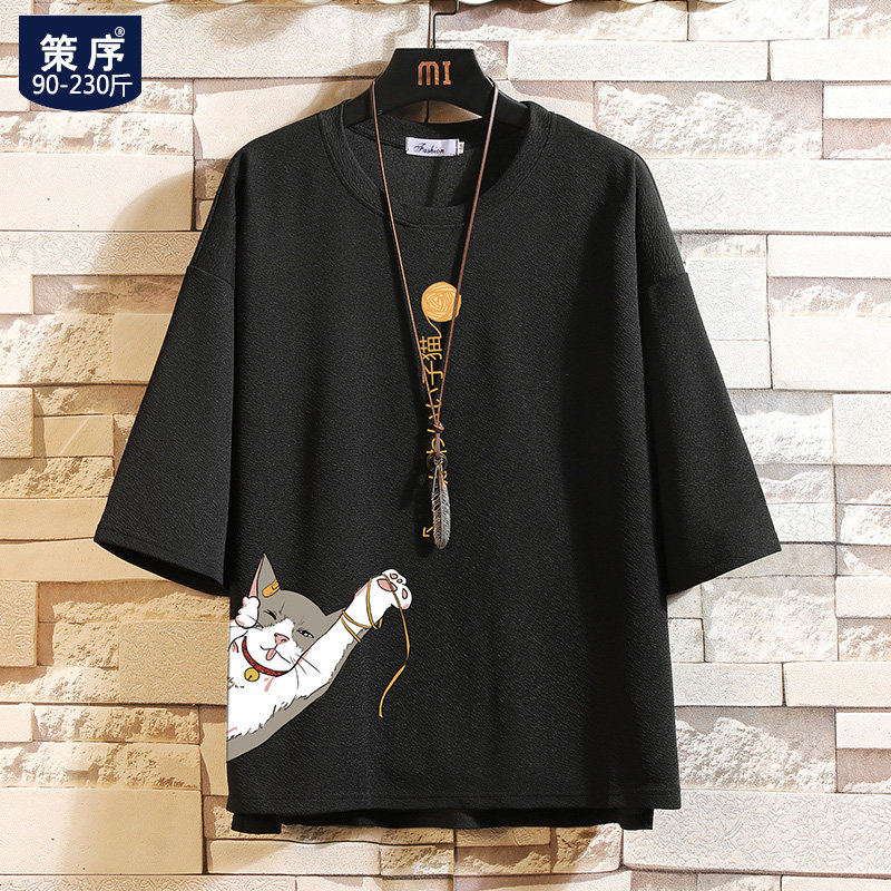 Мужская летняя трендовая футболка, короткий рукав, большой размер, свободный крой