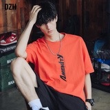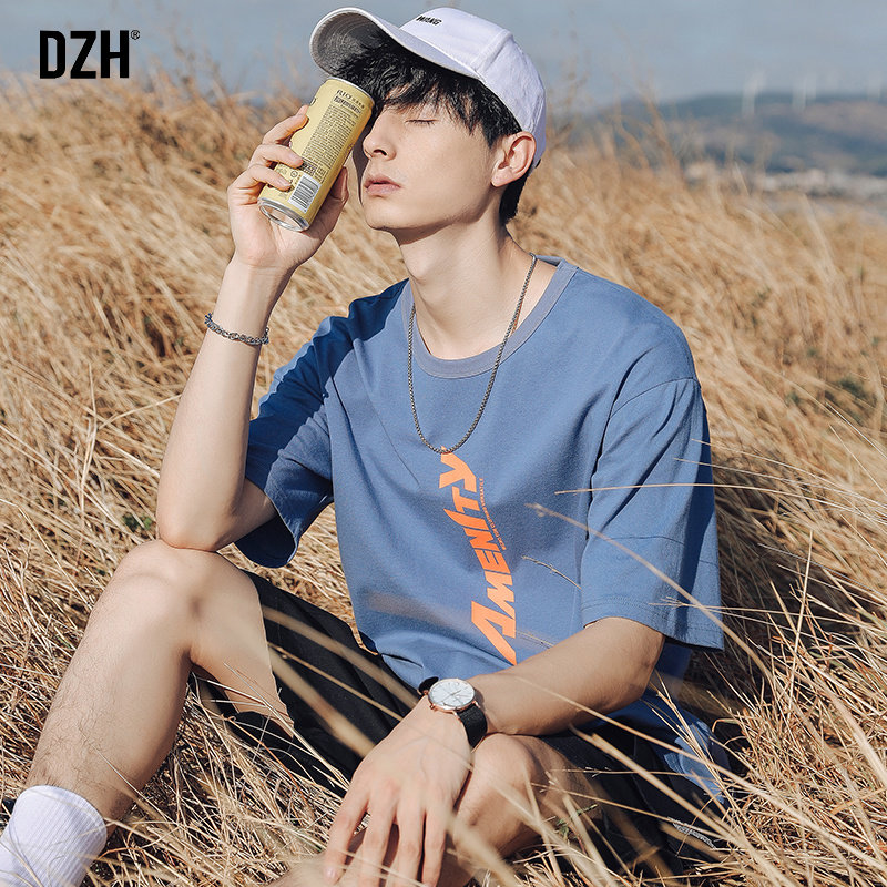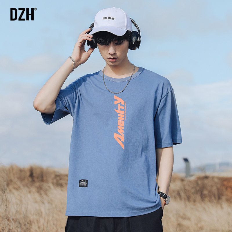 Синяя хлопковая футболка с коротким рукавом, трендовая летняя одежда, оверсайз, в корейском стиле