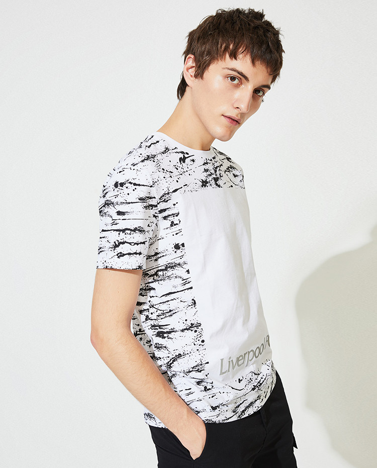 хлопковая футболка с короткими рукавами и короткими рукавами с абстрактным чернильным принтом, модная и повседневная мужская футболка из джерси