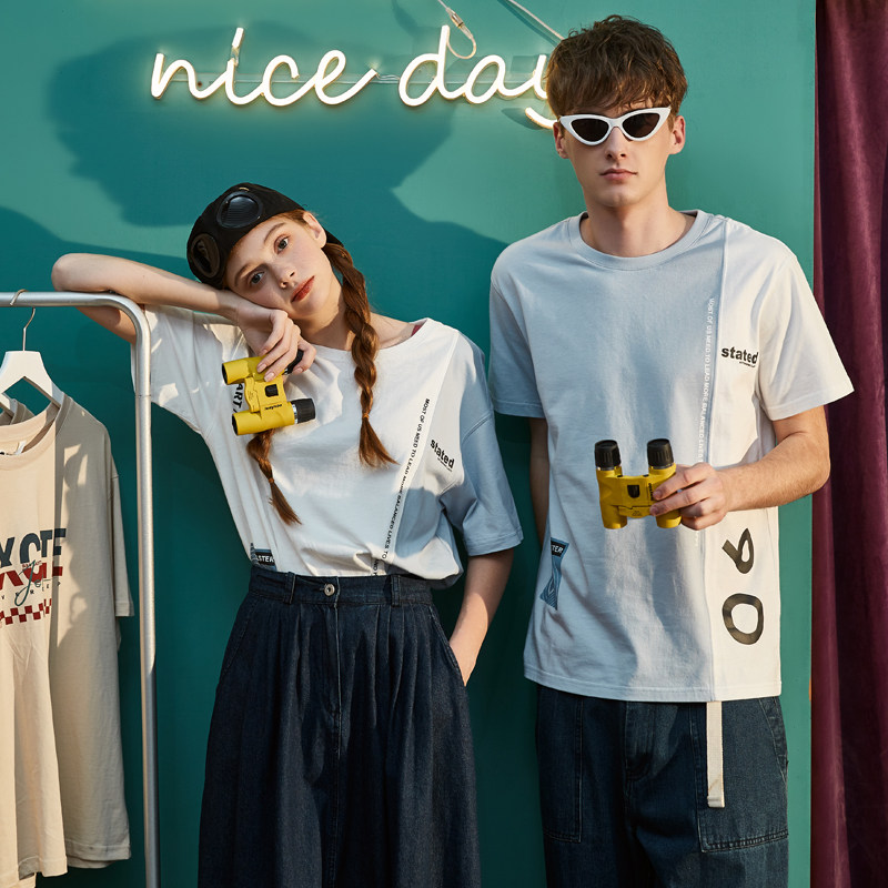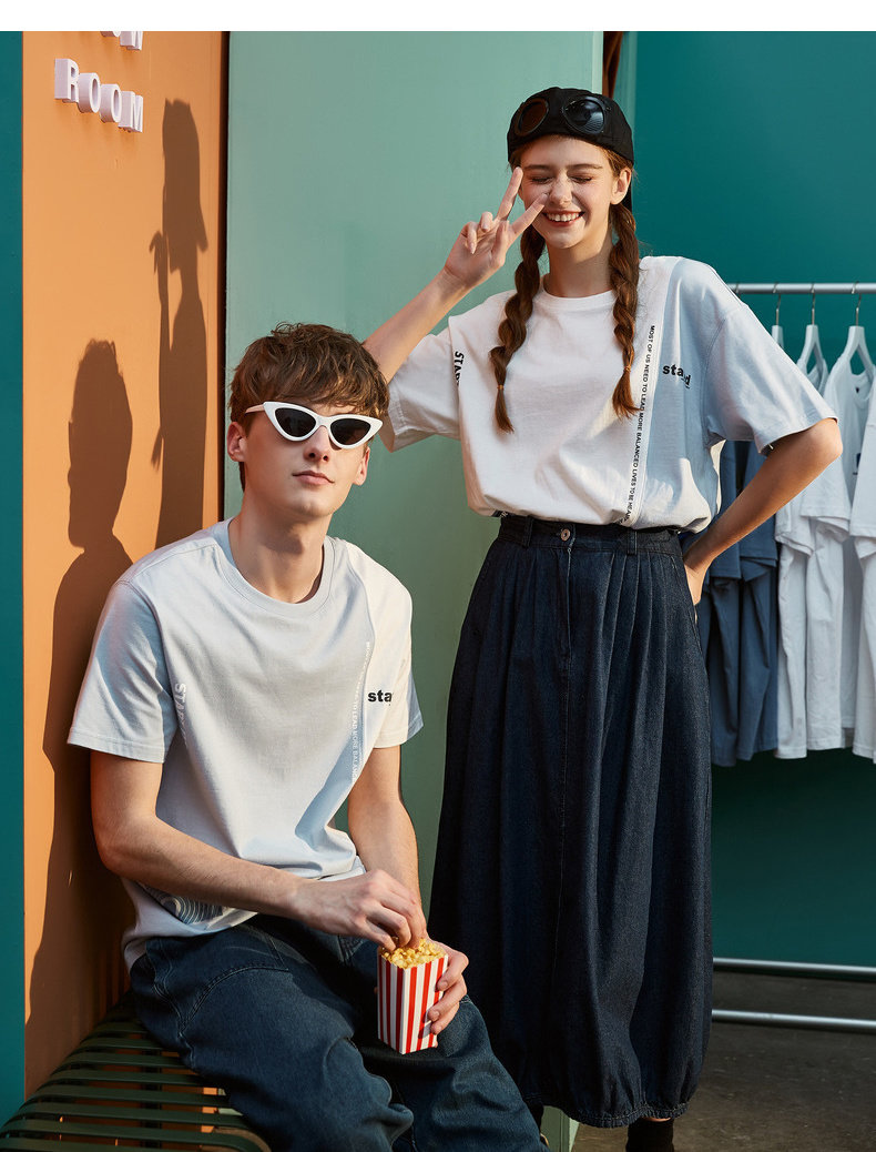 Парная одежда, трендовая летняя одежда для школьников и студентов, футболка с коротким рукавом, коллекция 2021, для влюбленных, свободный крой