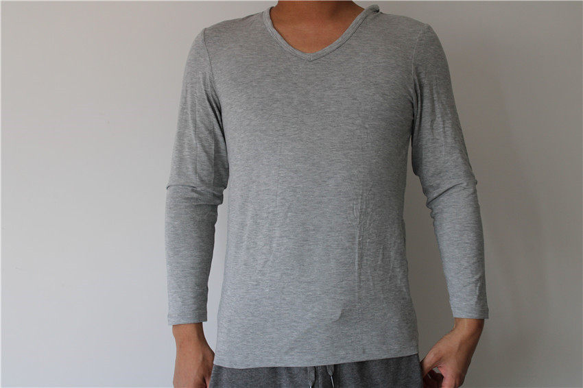 Мужской лонгслив, базовая комфортная эластичная футболка, мягкое нижнее белье, V-образный вырез
