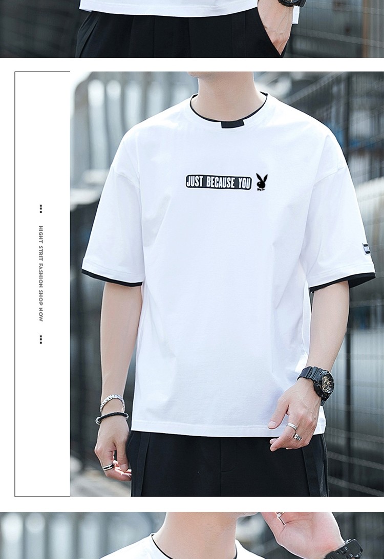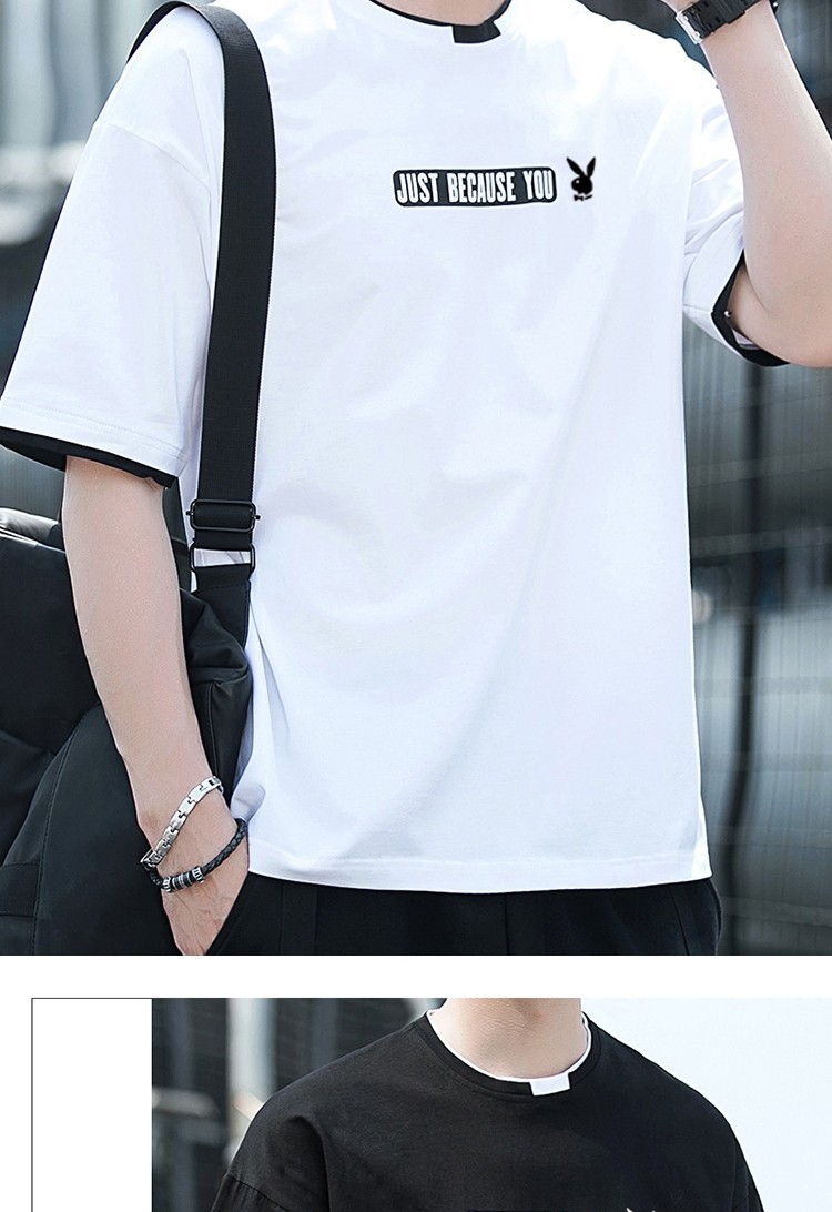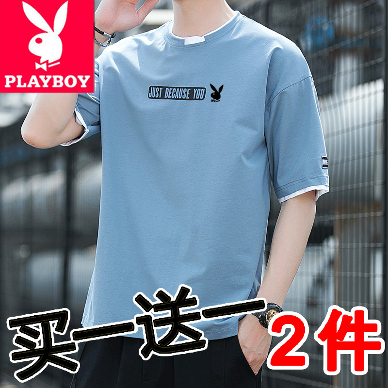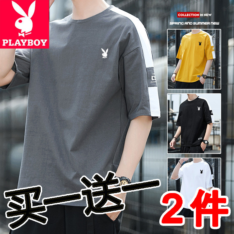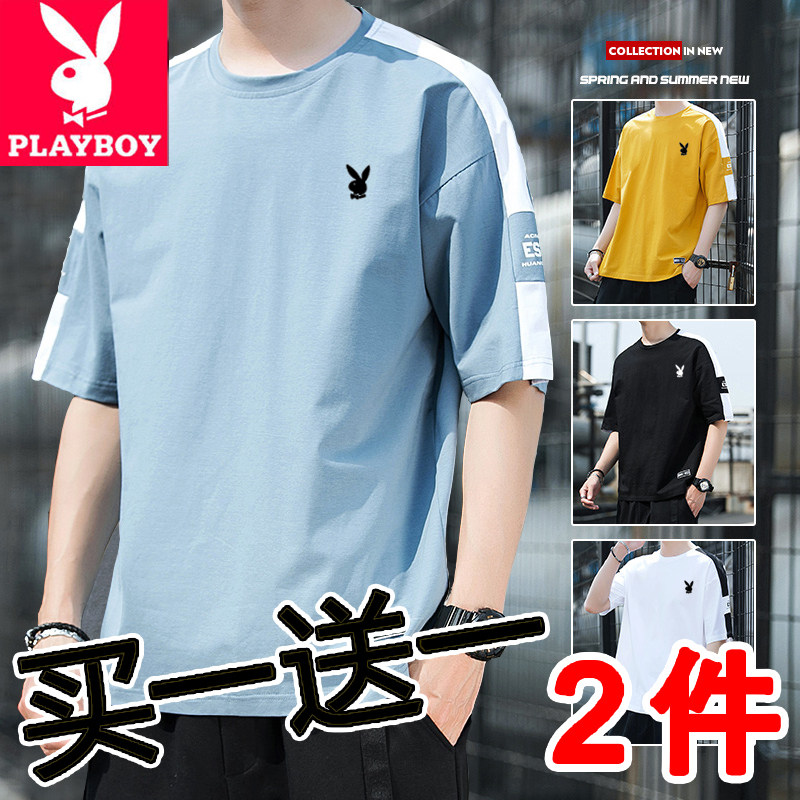 Playboy, хлопковая универсальная трендовая брендовая базовая приятная телу футболка с коротким рукавом, простой и элегантный дизайн