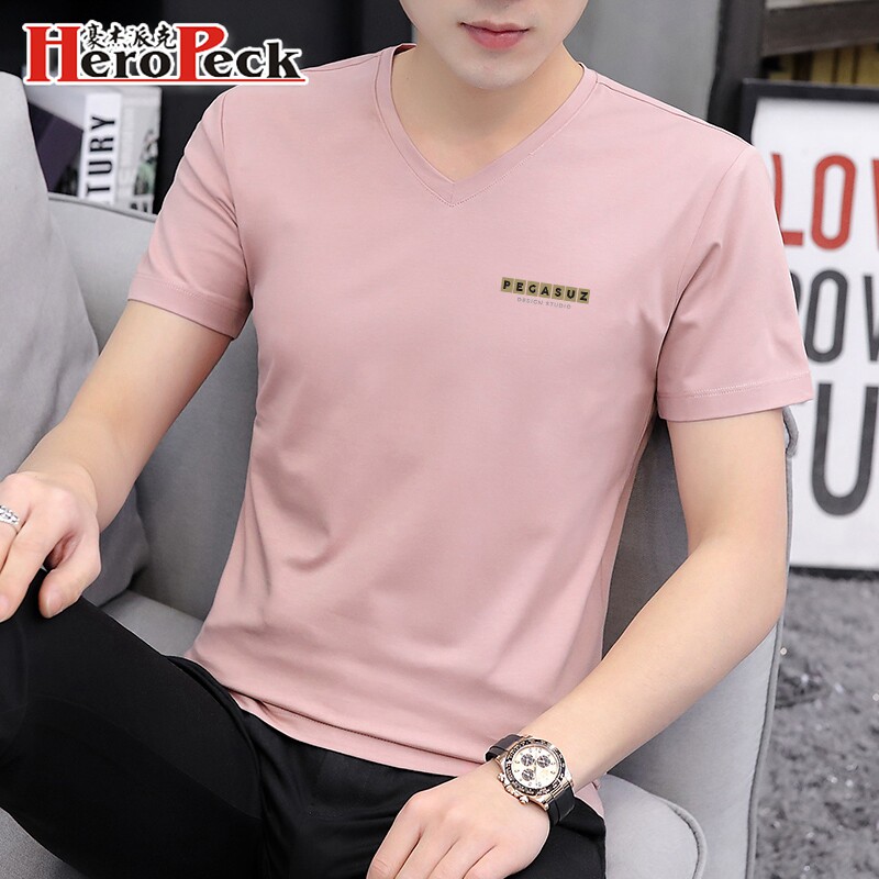 Хлопковая футболка с коротким рукавом, шелковая трендовая базовая приятная телу летняя одежда, V-образный вырез, высокий воротник