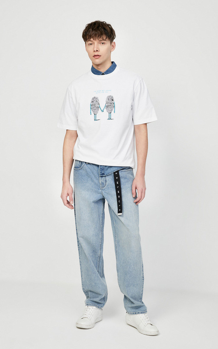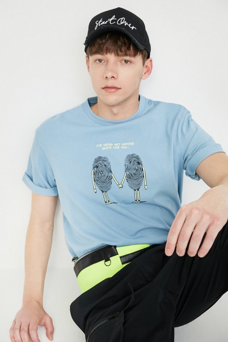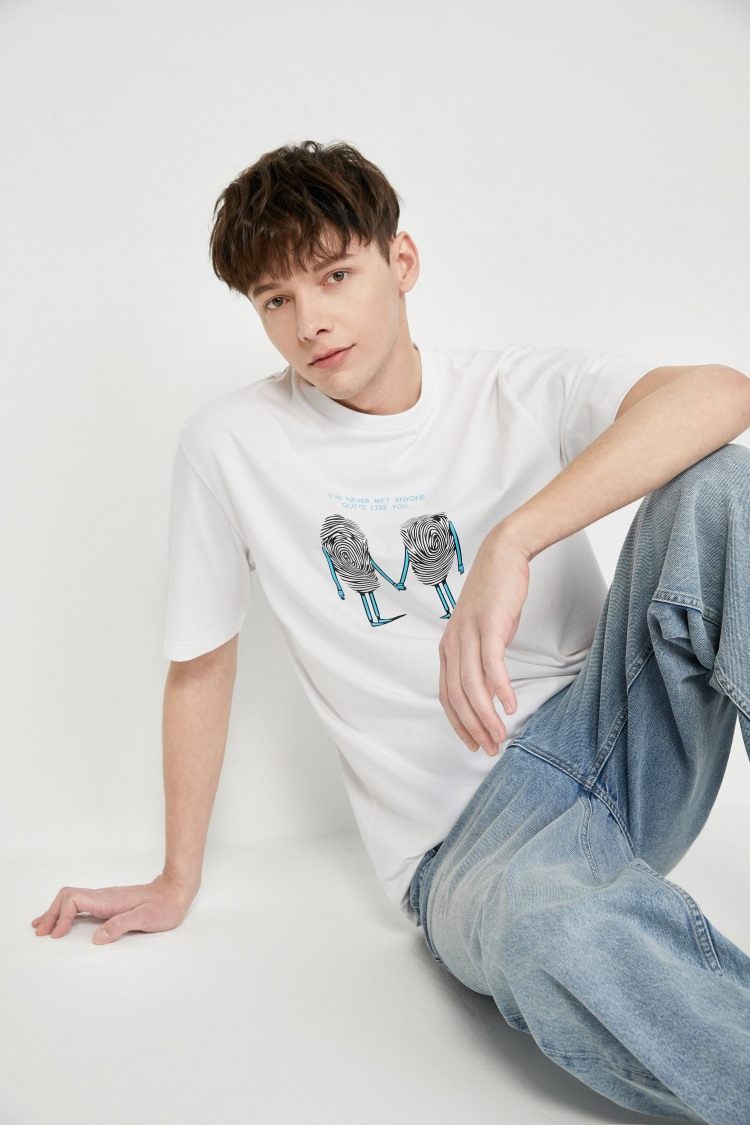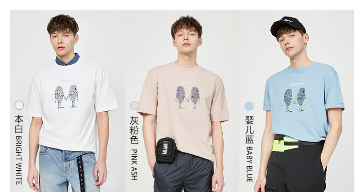 BZSJ Джек Джонс Летний мужской новый веселый принт Негабаритный хлопок Пара пара коротких рукава T -For