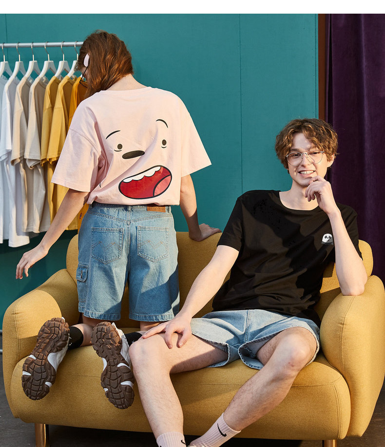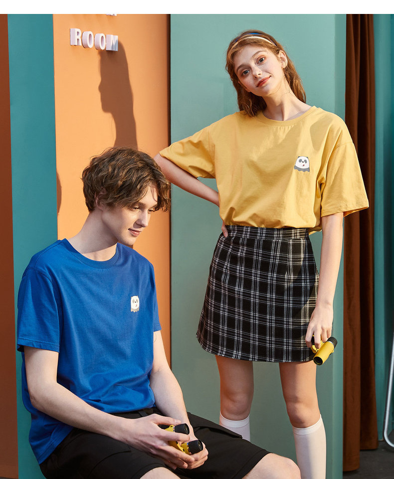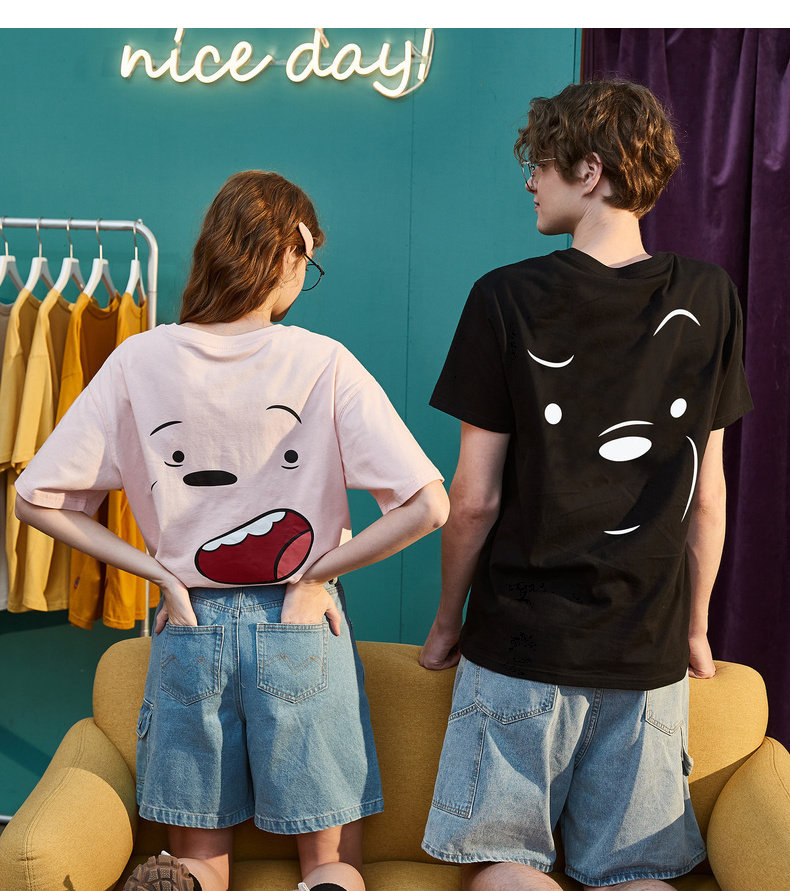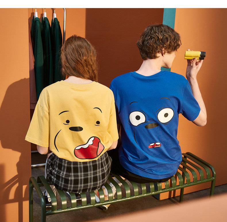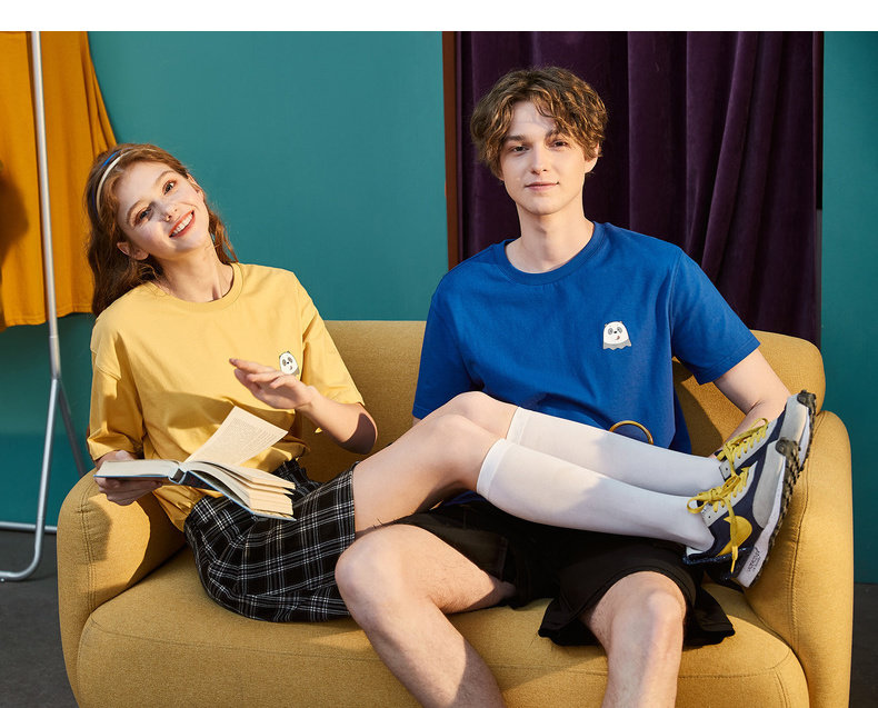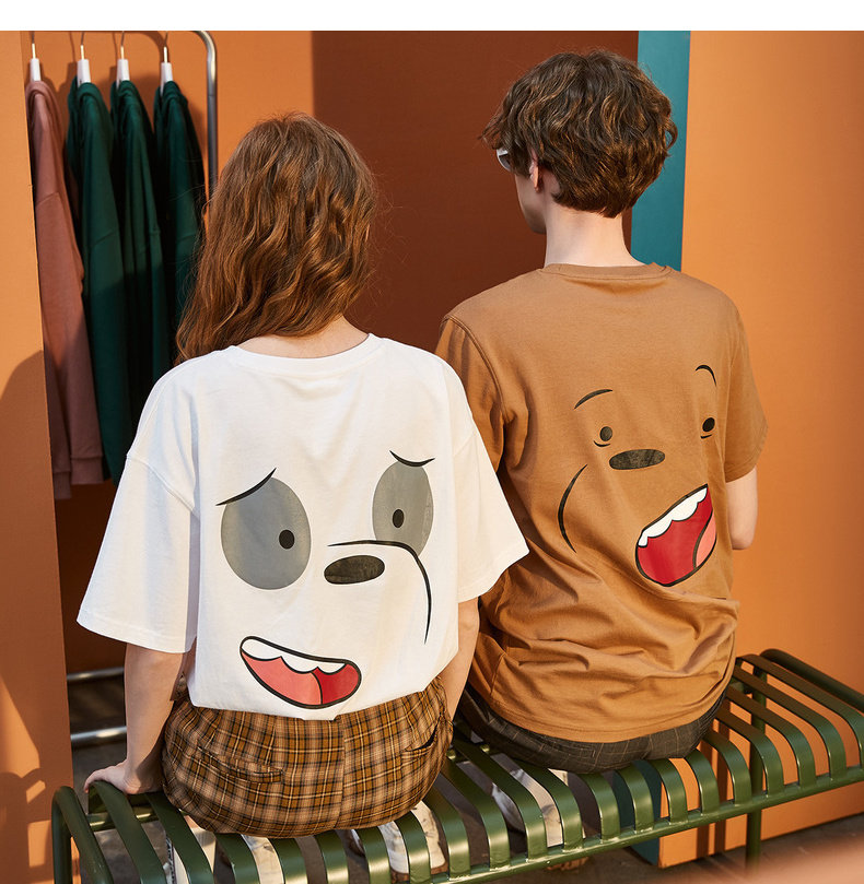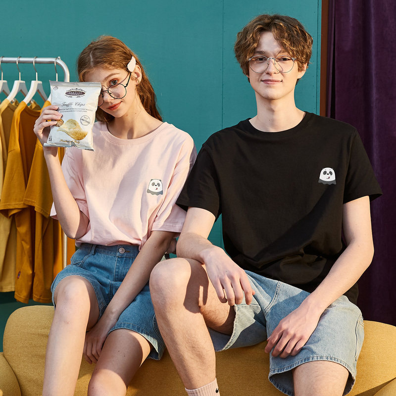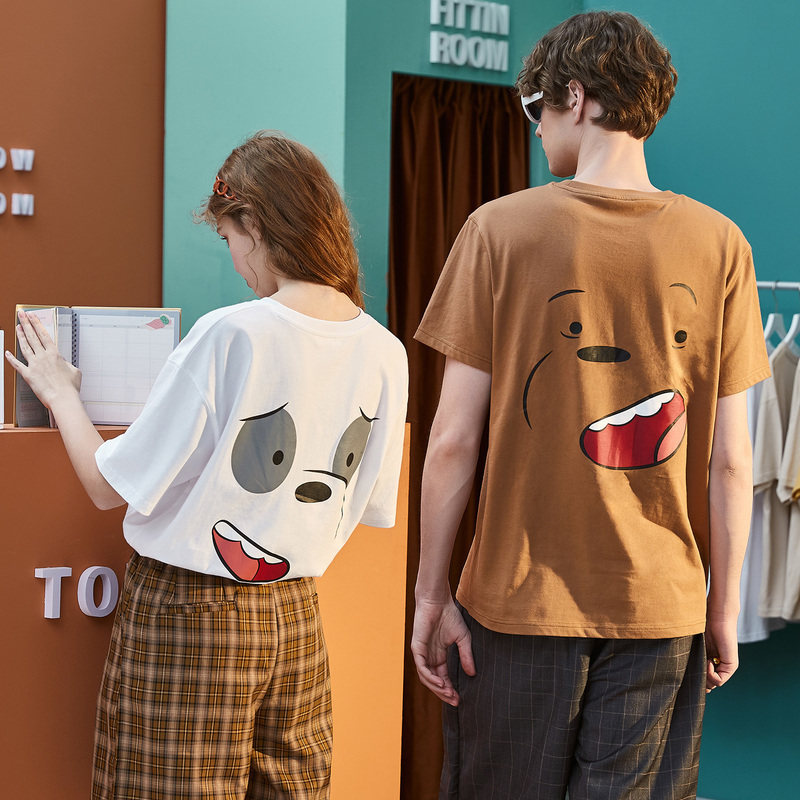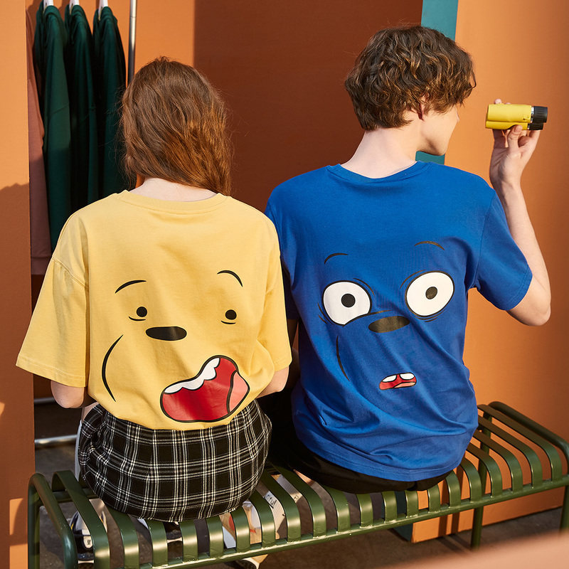 Парная одежда, летняя одежда, футболка с коротким рукавом, для влюбленных, сезон 2021, принт