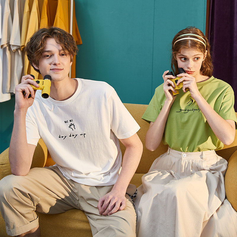 Tide, летняя белая базовая парная одежда, футболка с коротким рукавом, 2020, для влюбленных, свободный крой, в корейском стиле