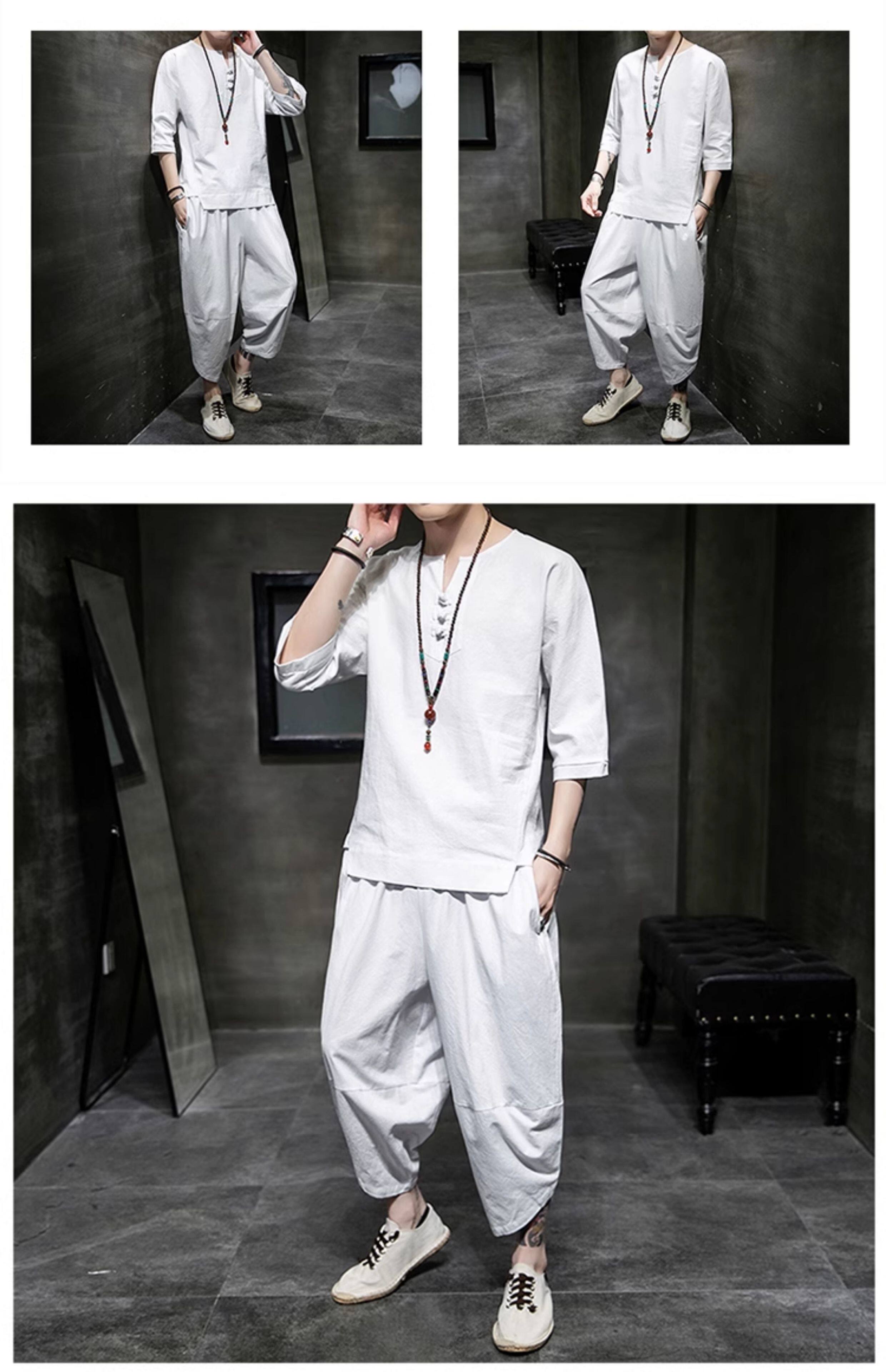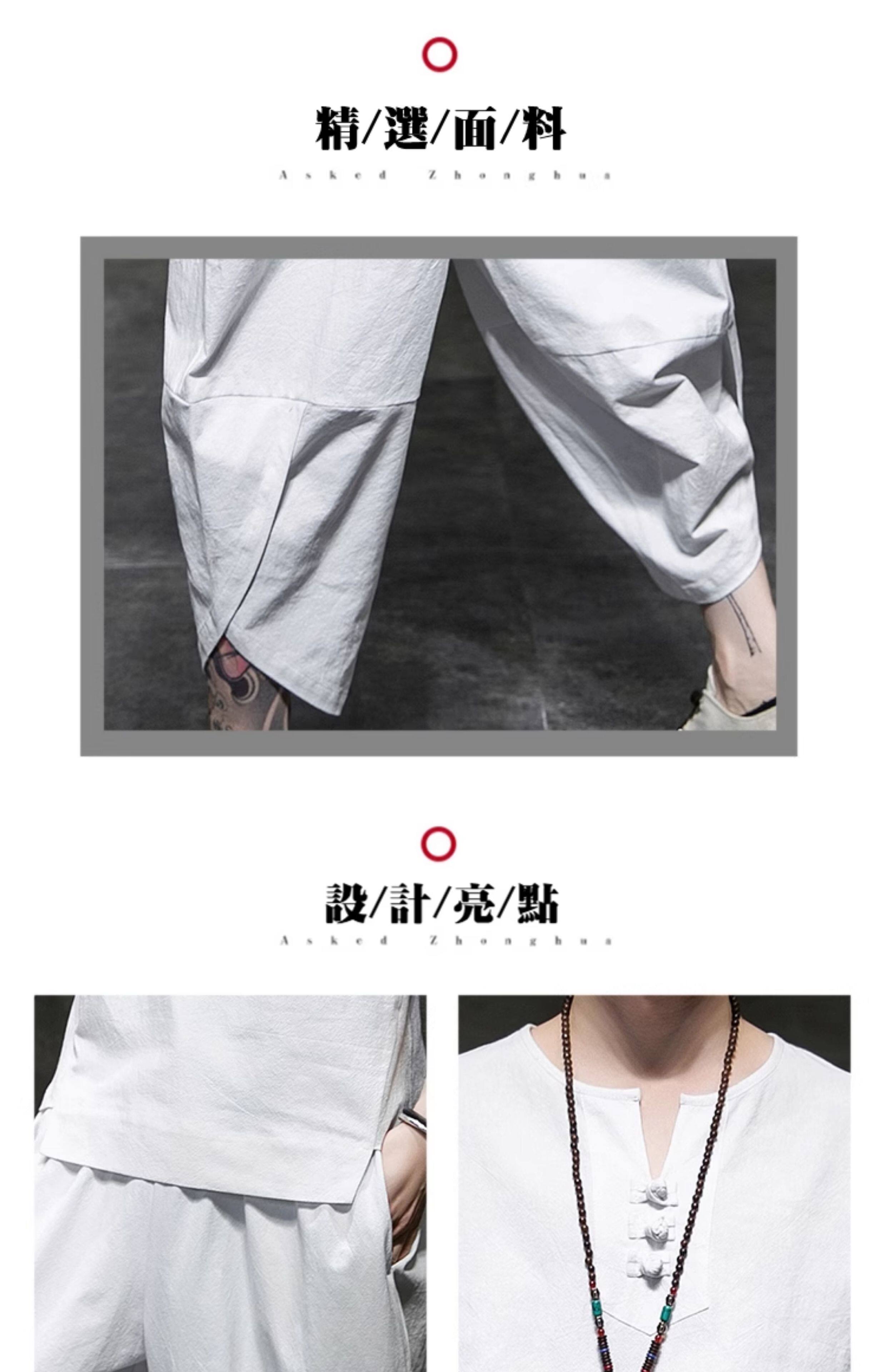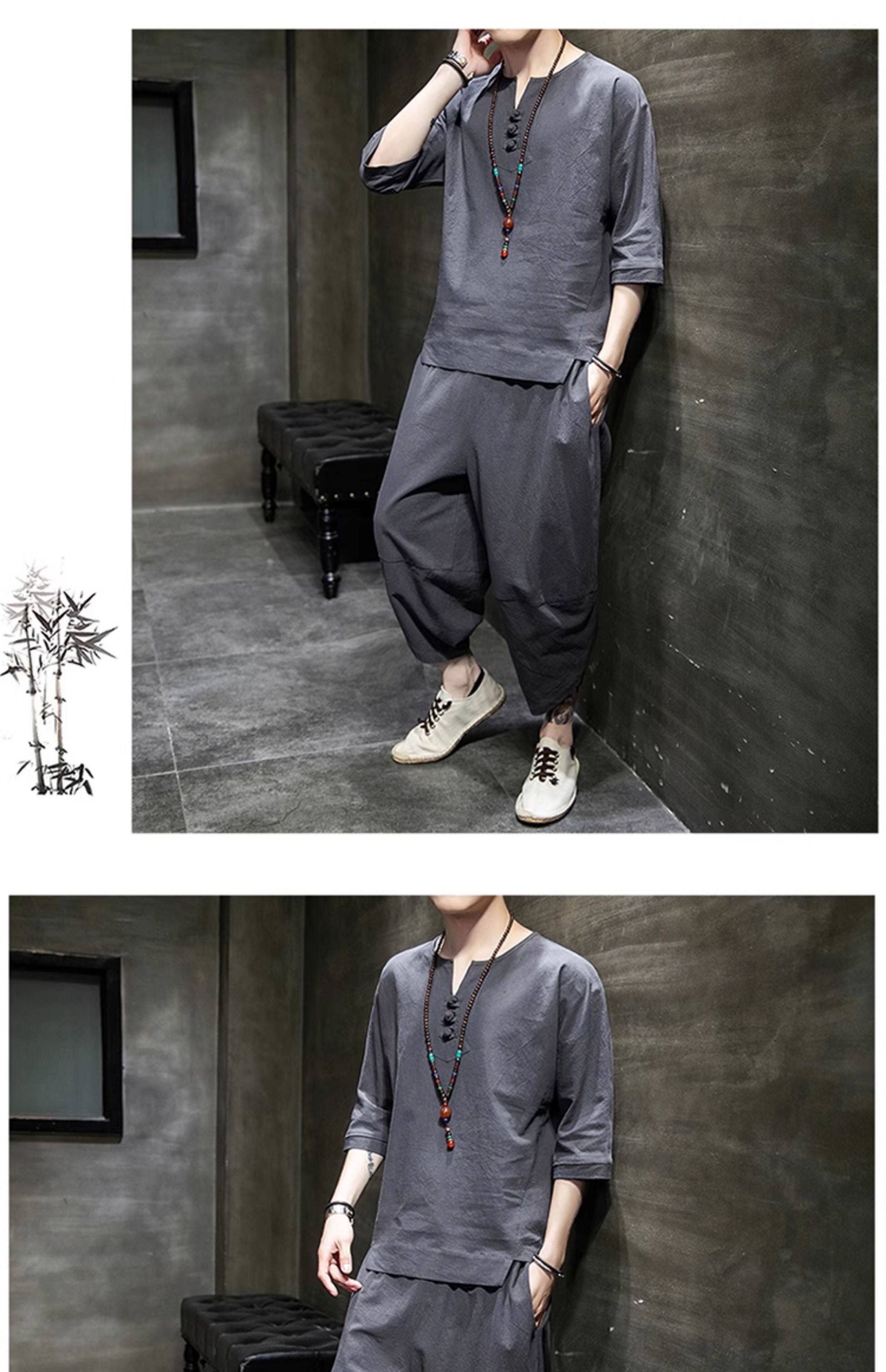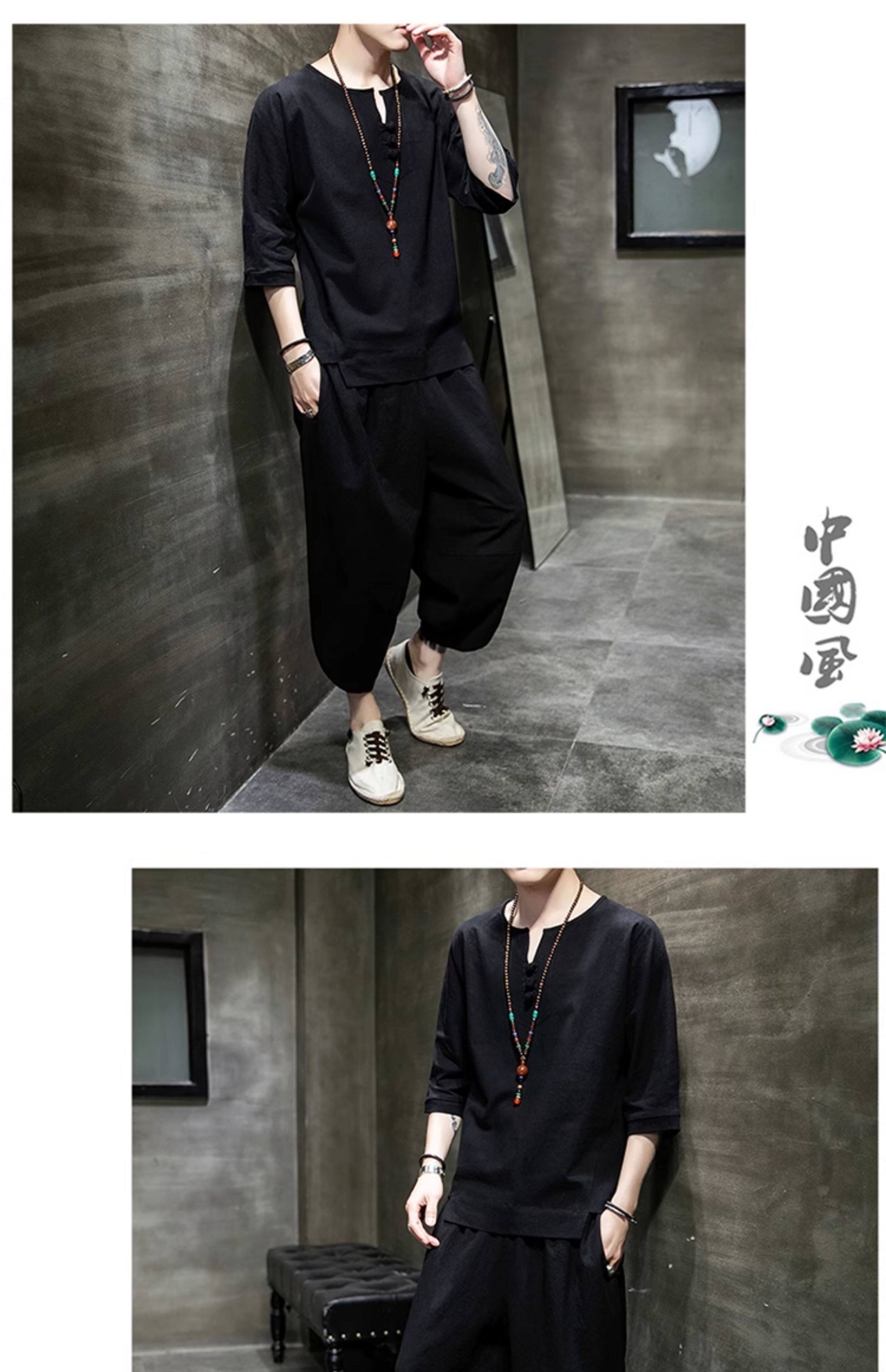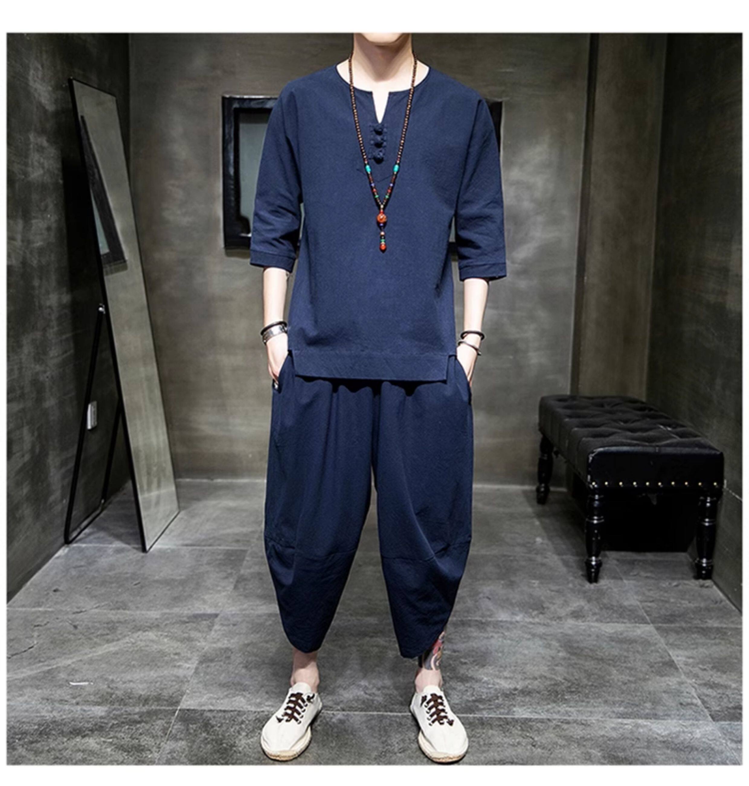 Футболка, летний комплект, китайский стиль, из хлопка и льна, короткий рукав