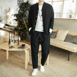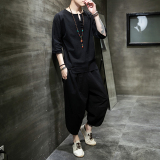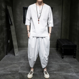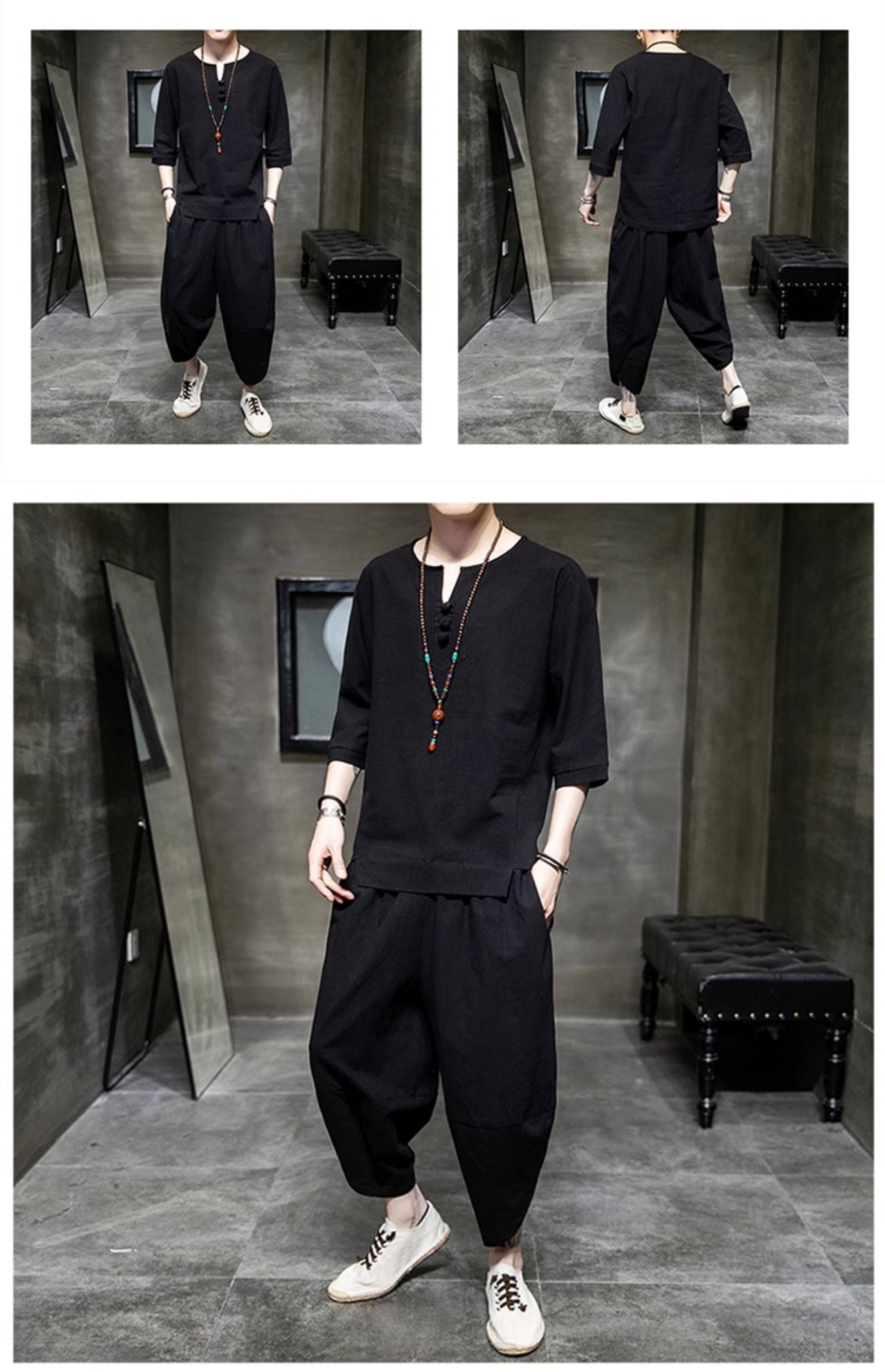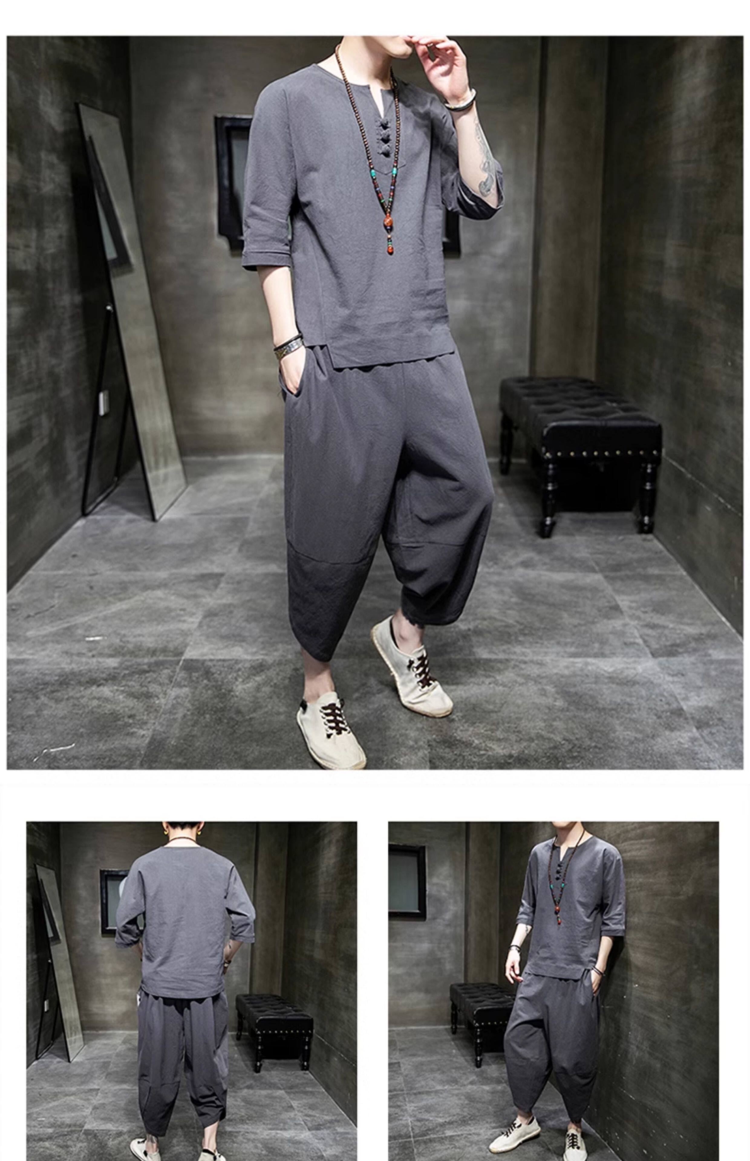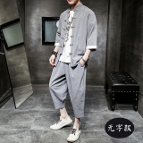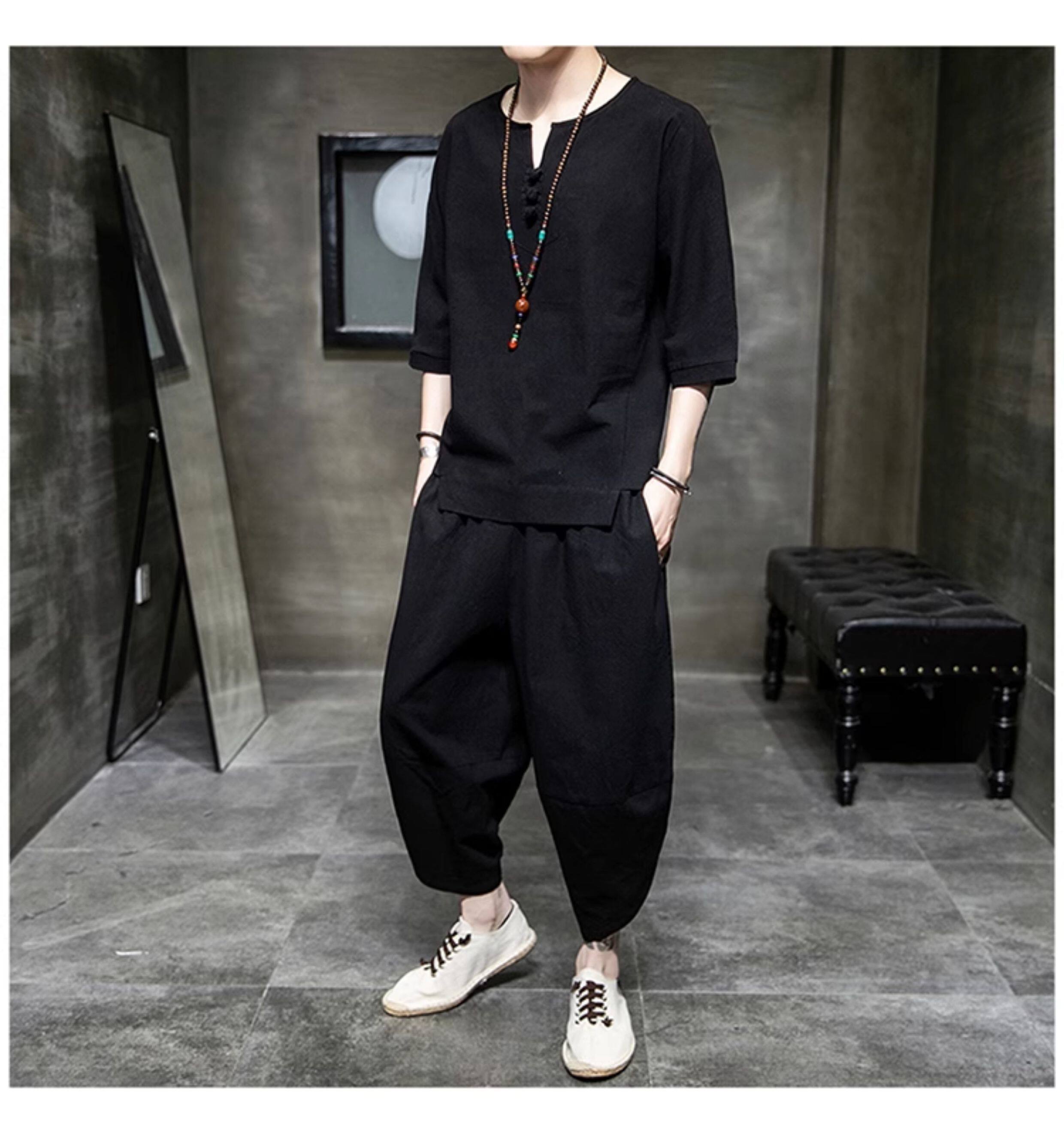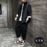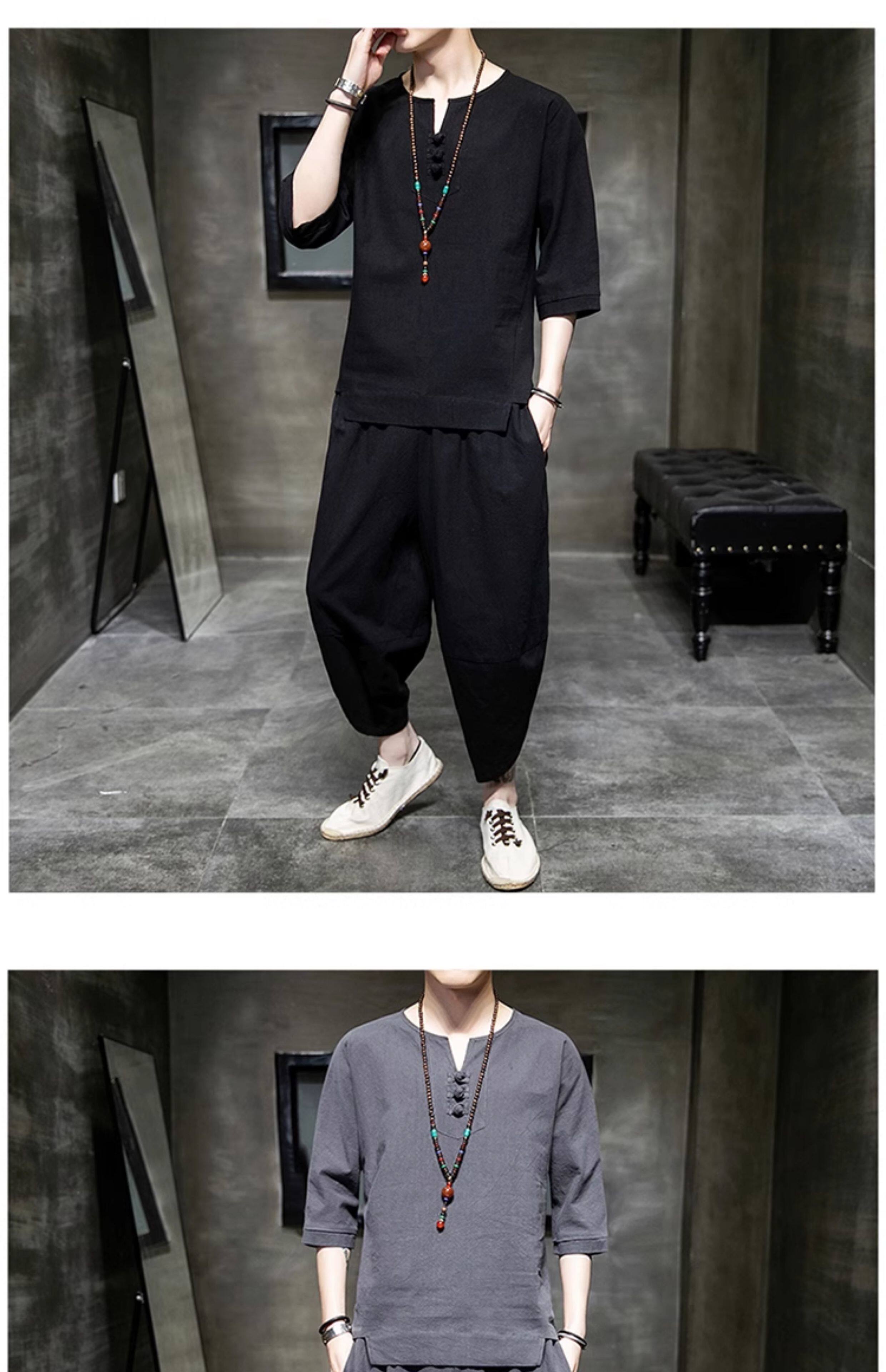Футболка, летний комплект, китайский стиль, из хлопка и льна, короткий рукав