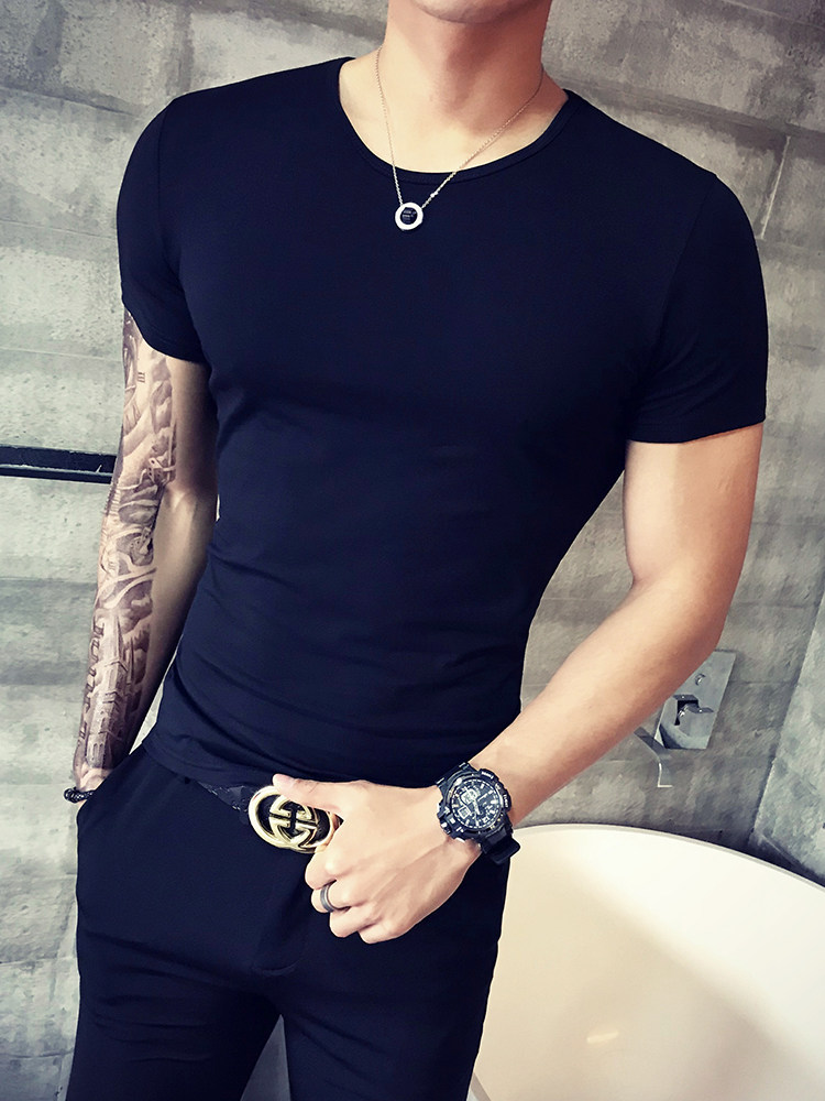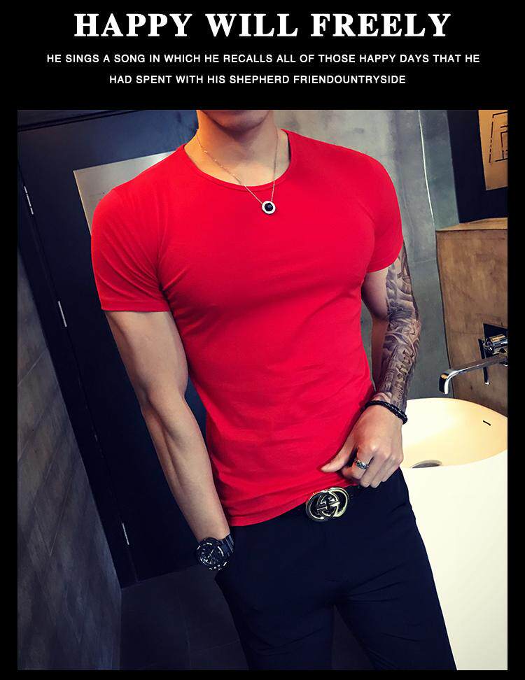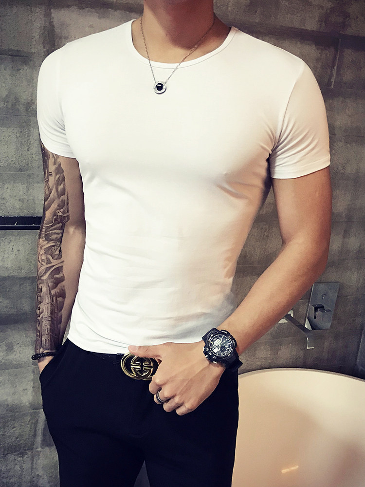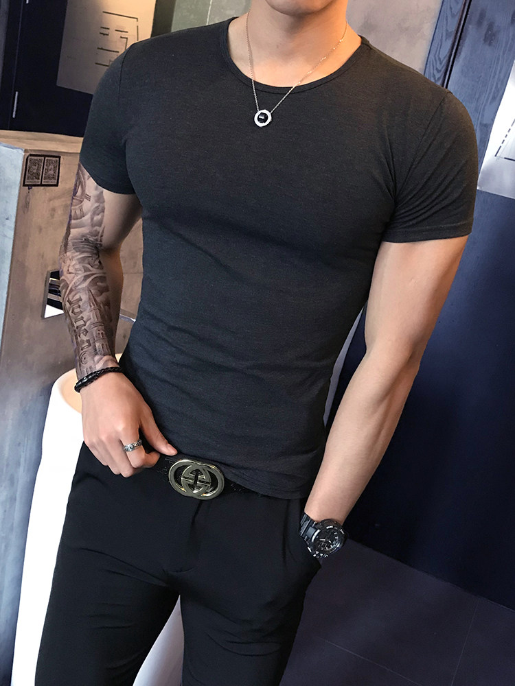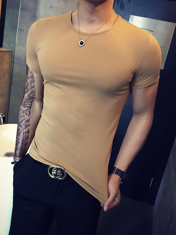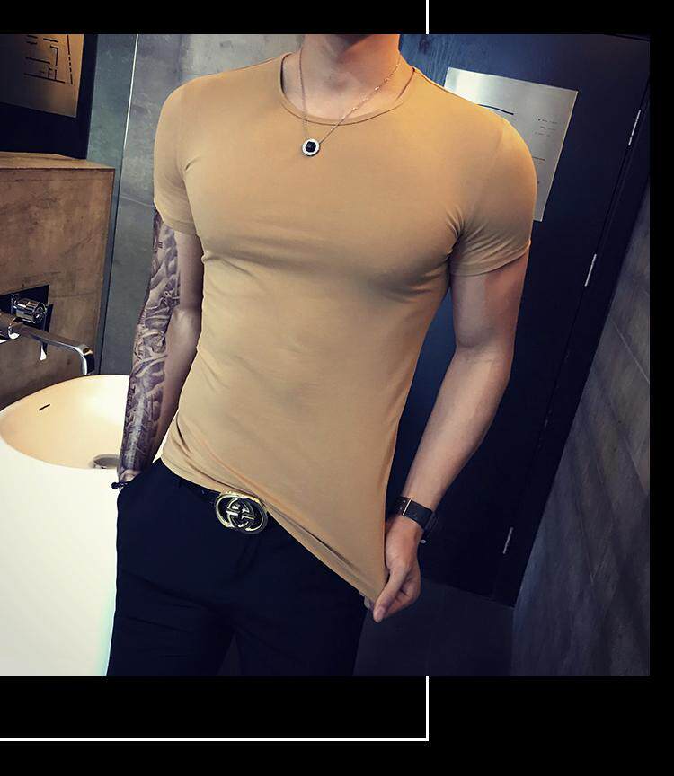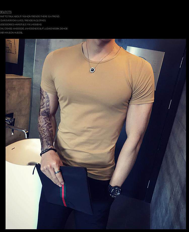 Летняя трендовая однотонная цветная базовая приятная телу футболка с коротким рукавом с круглым воротником, в корейском стиле, в обтяжку, короткий рукав