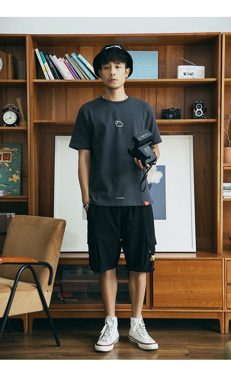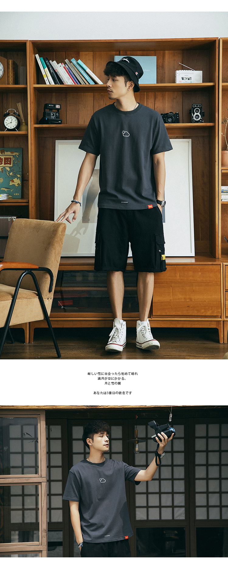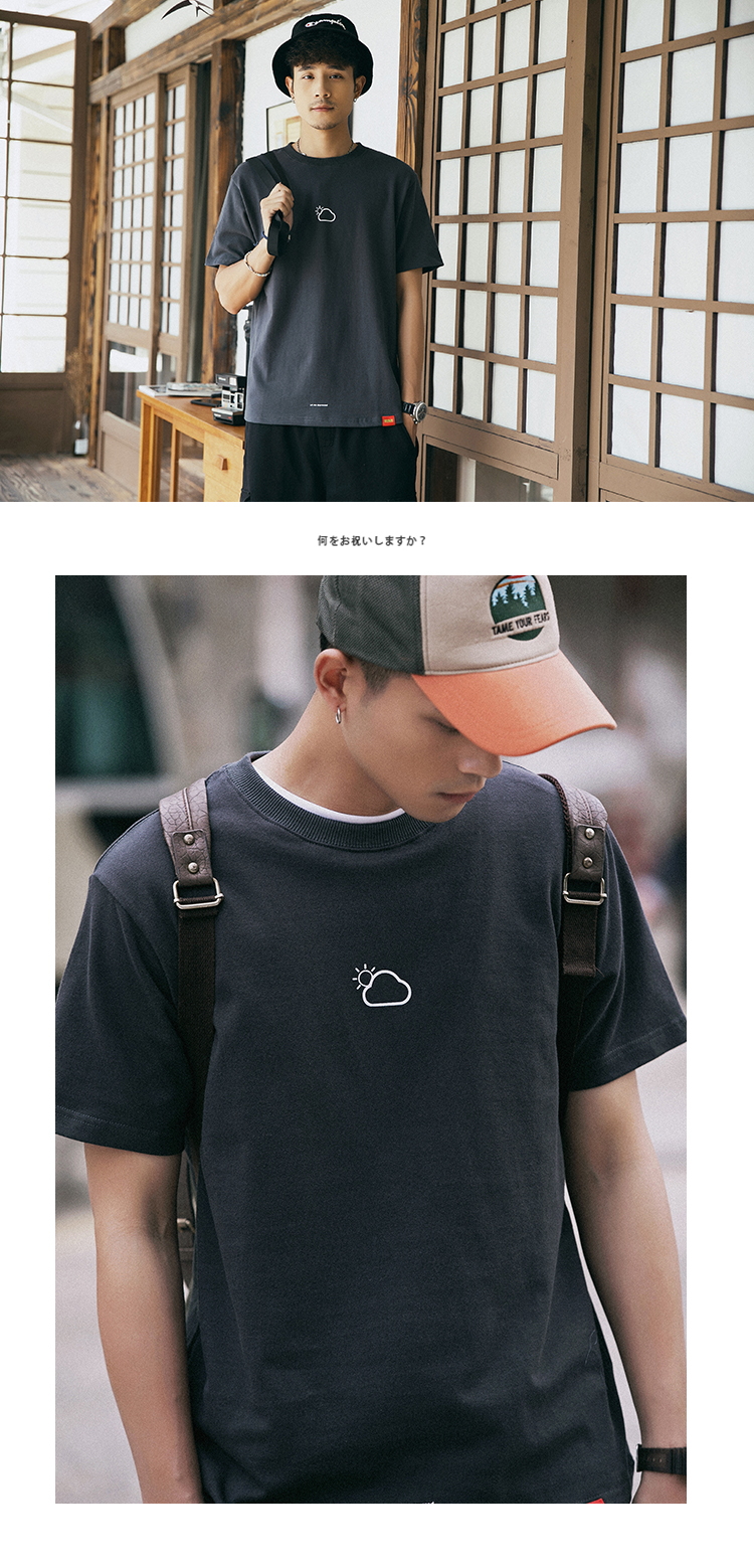 Трендовая японская ретро дышащая футболка, короткий рукав, круглый воротник