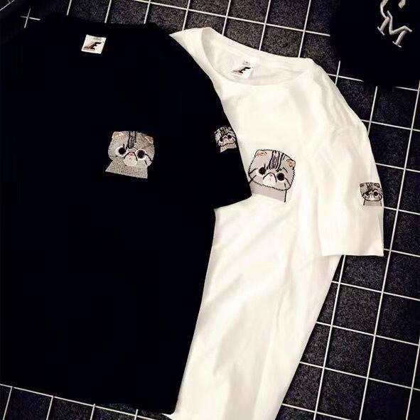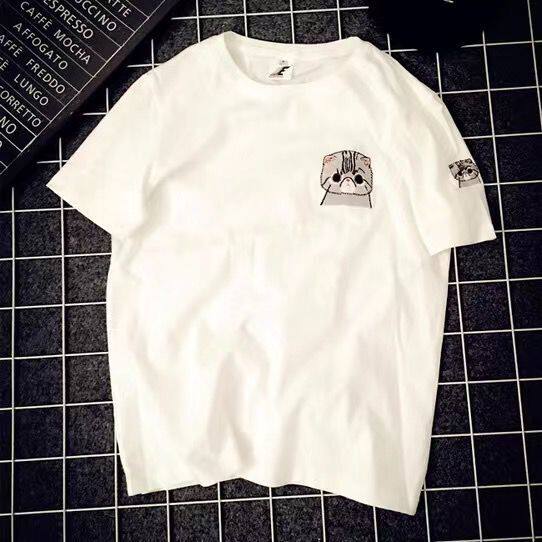Белая футболка с коротким рукавом для школьников и студентов, летняя одежда, цвет, в корейском стиле, с вышивкой, 2020