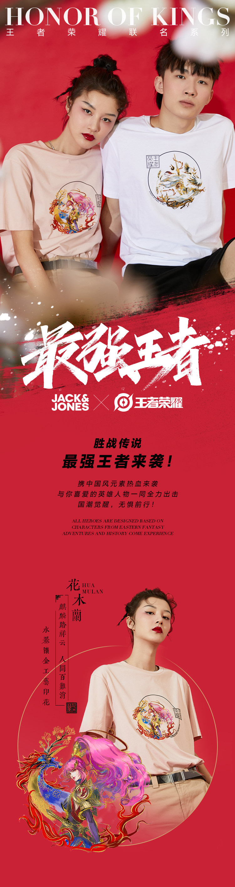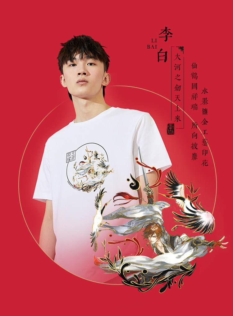 Jackjones Jack Jones King Glory Новая пара Mulan Li Bai с коротким рукавом T -Fish 220301089