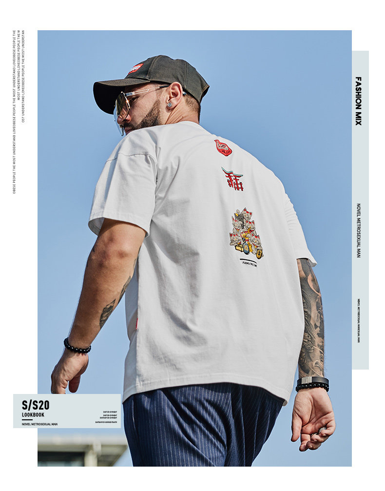 Трендовая футболка с коротким рукавом для отдыха, большой размер, оверсайз, с вышивкой