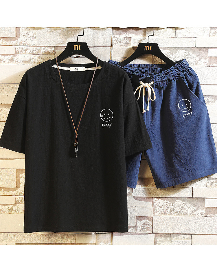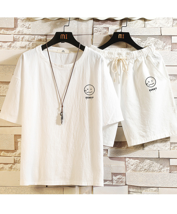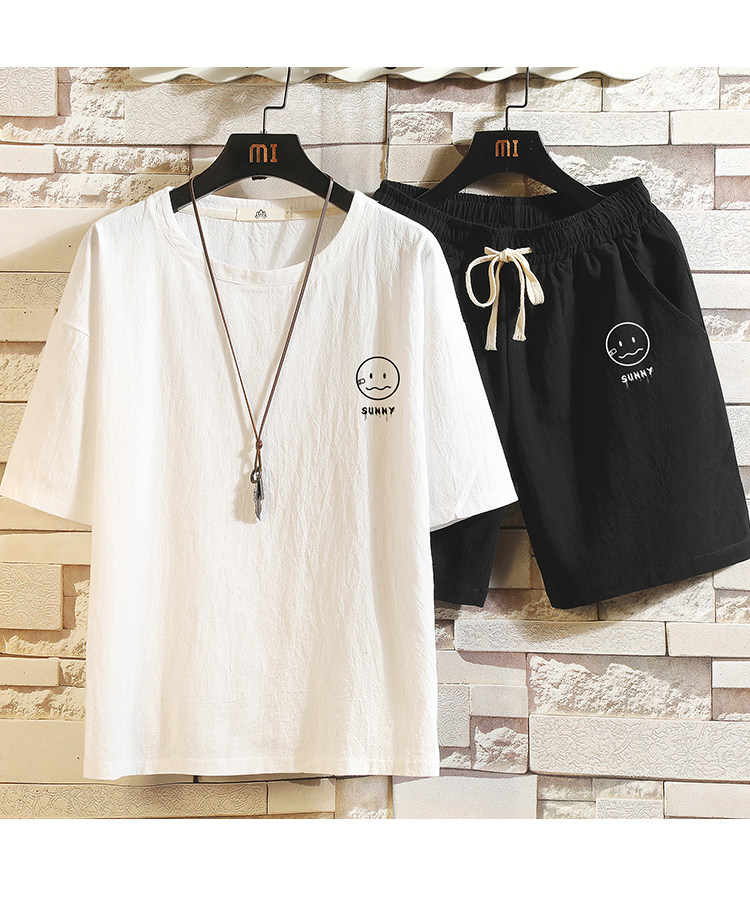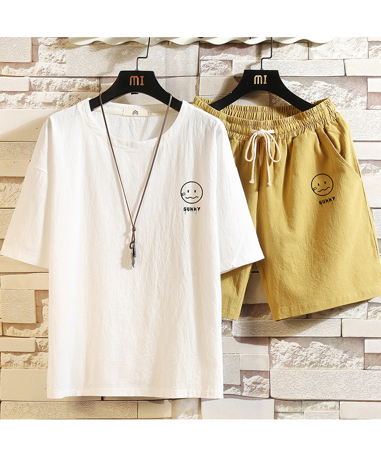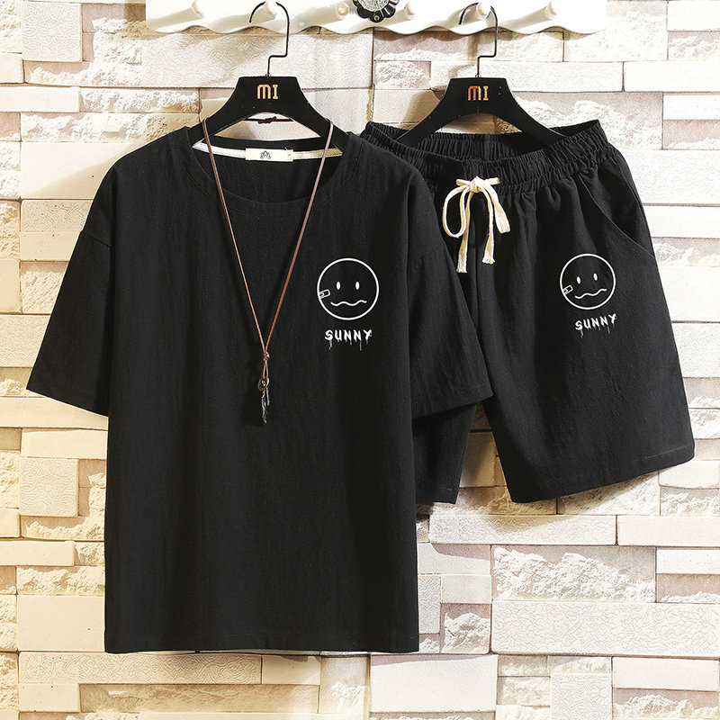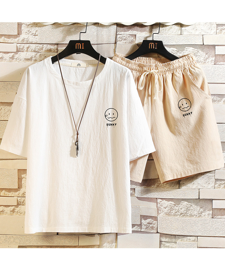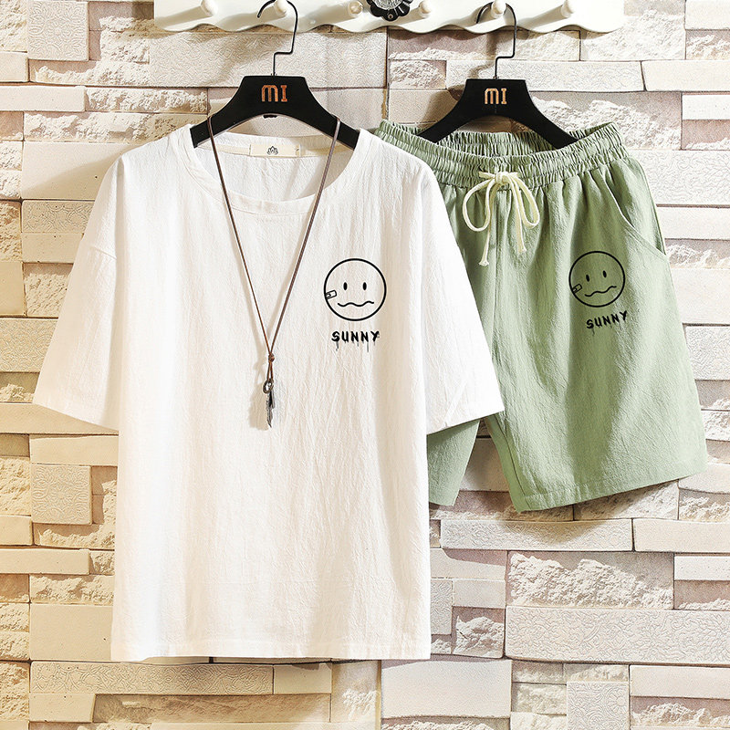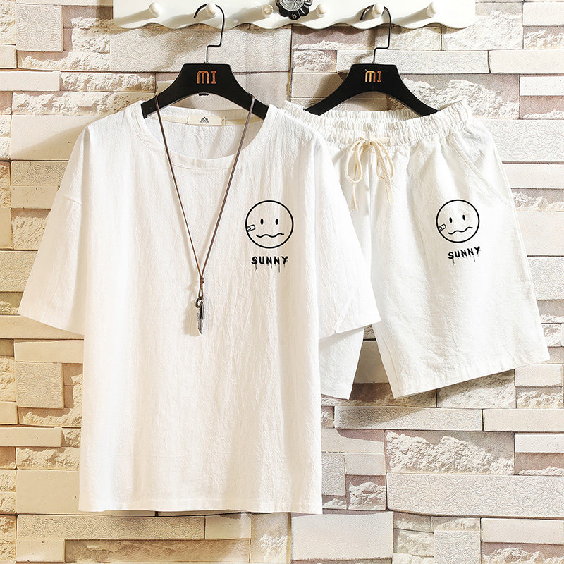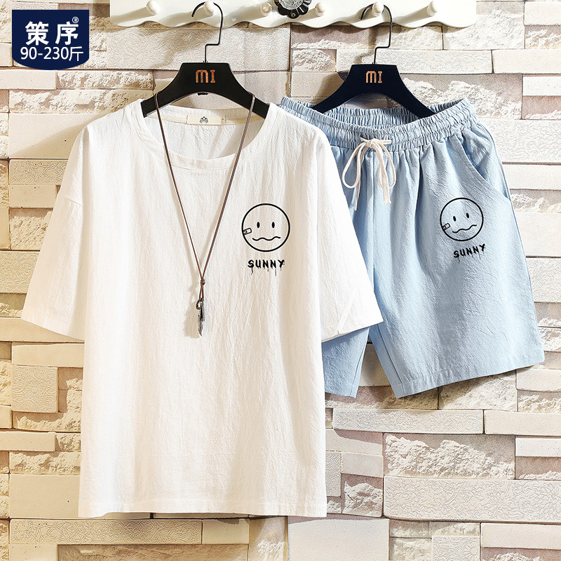 Мужская футболка с коротким рукавом, спортивный костюм, шорты для отдыха, штаны, свободный крой, оверсайз, из хлопка и льна