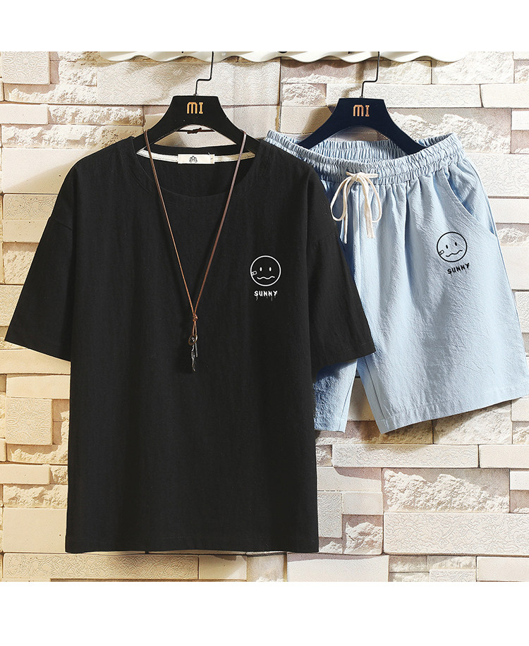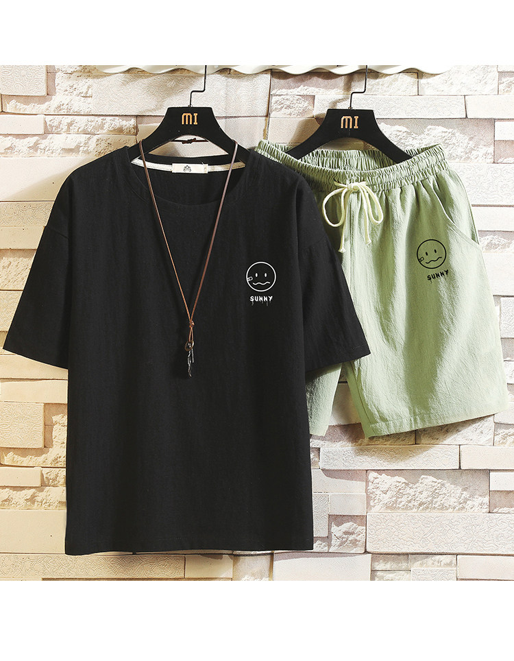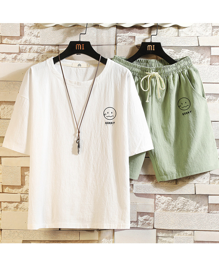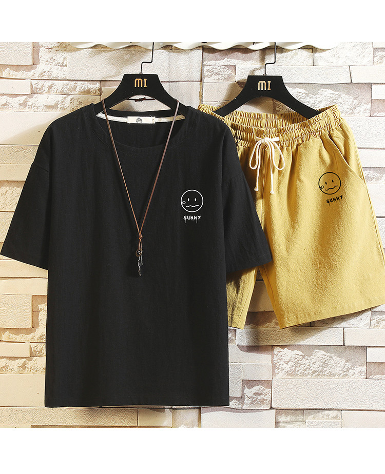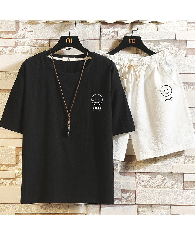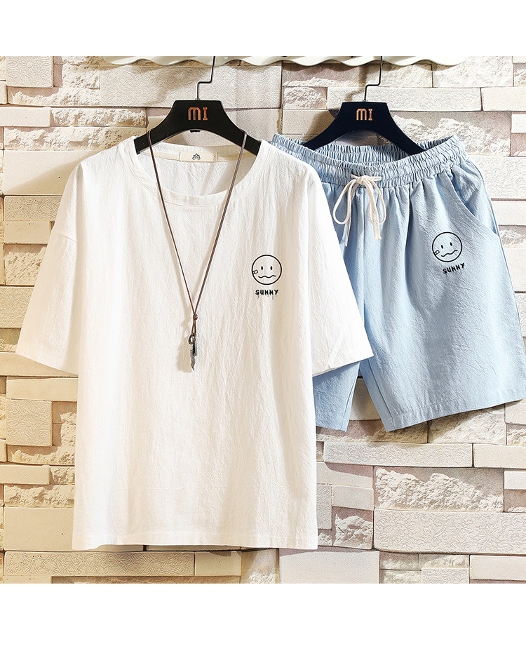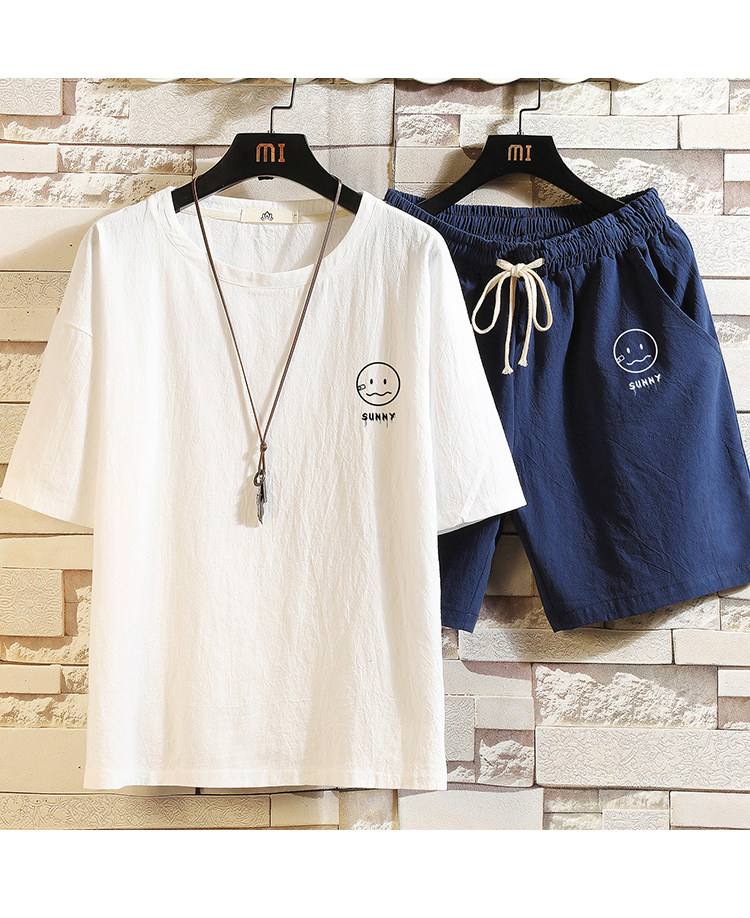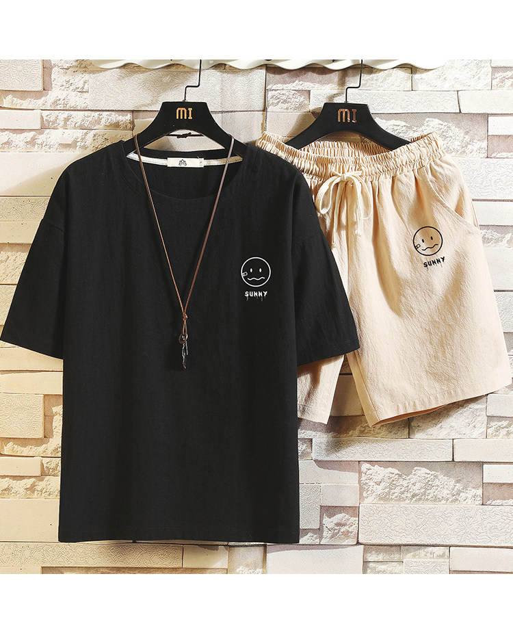 Мужская футболка с коротким рукавом, спортивный костюм, шорты для отдыха, штаны, свободный крой, оверсайз, из хлопка и льна