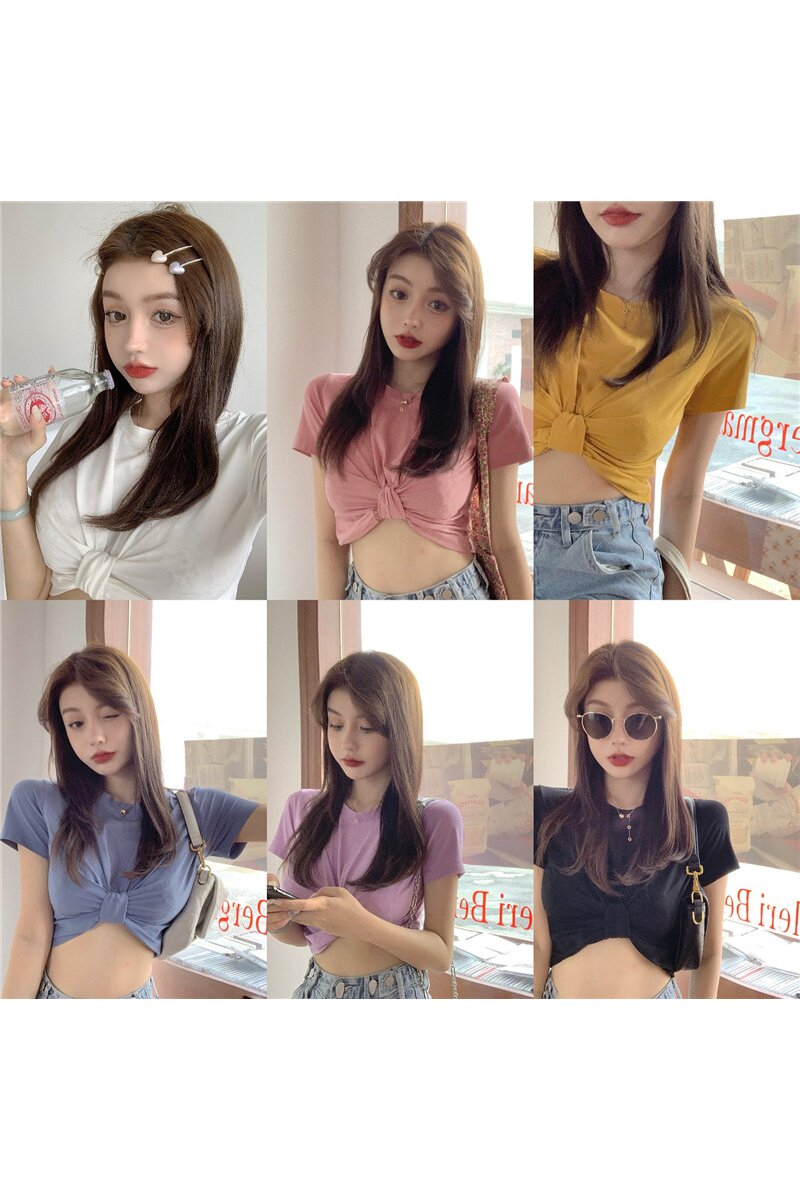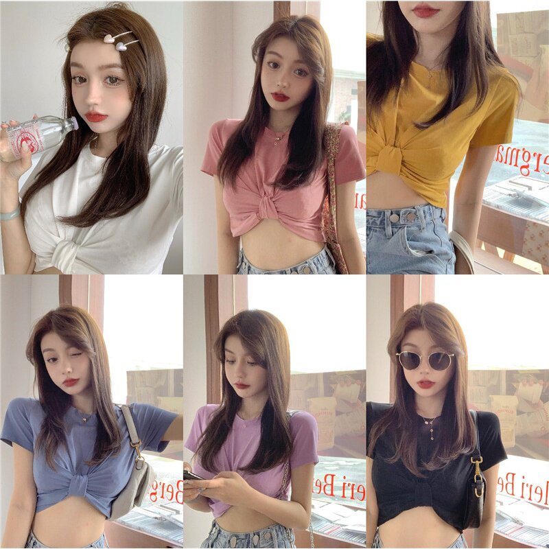 Летняя однотонная короткая дизайнерская базовая приятная телу футболка, 2020, в корейском стиле, тренд сезона