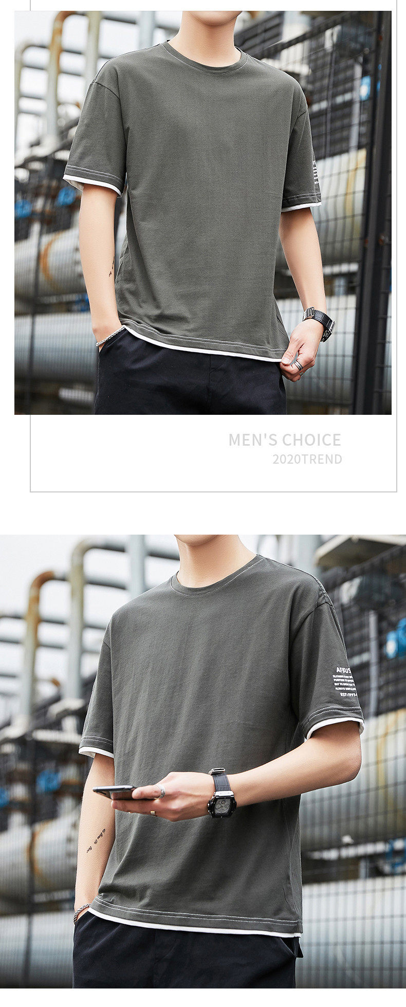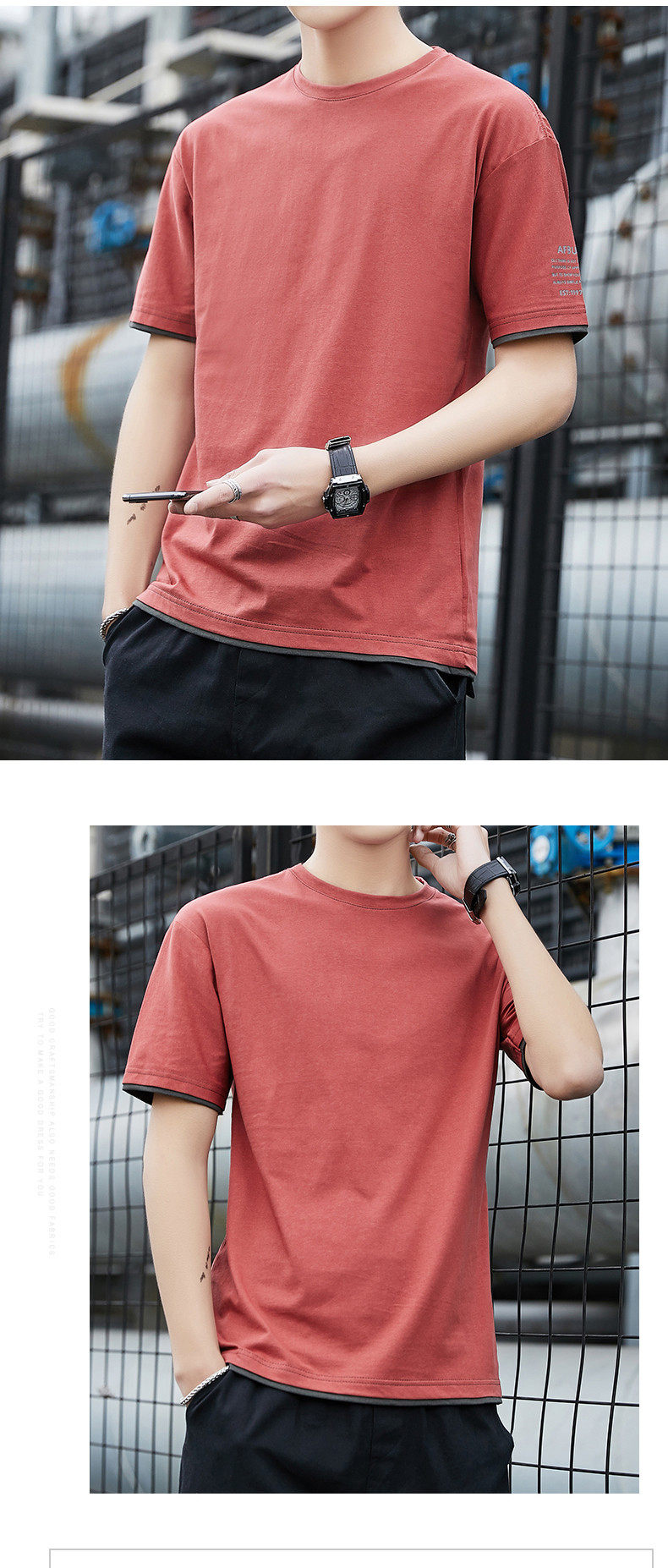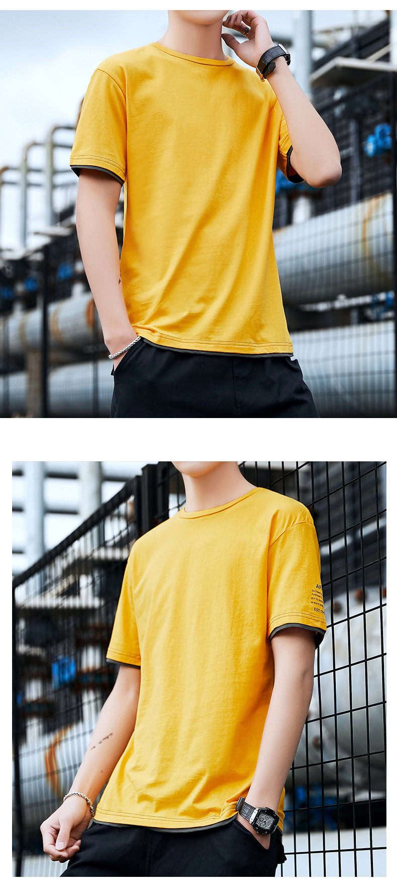 Летняя трендовая хлопковая брендовая шелковая футболка с коротким рукавом с круглым воротником