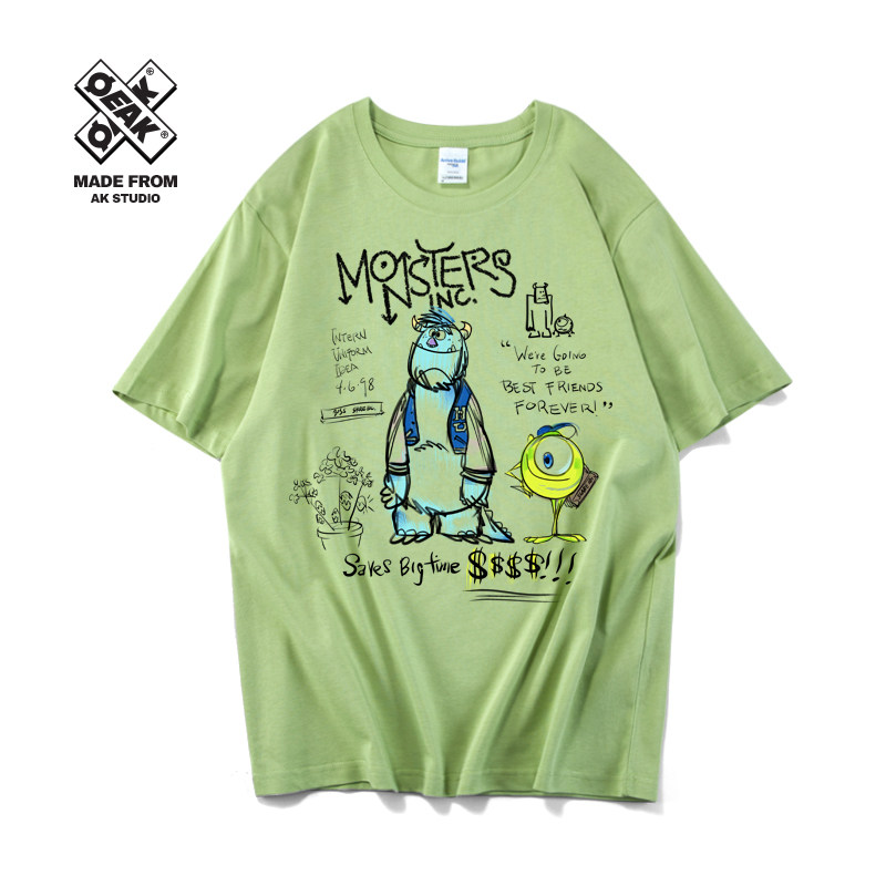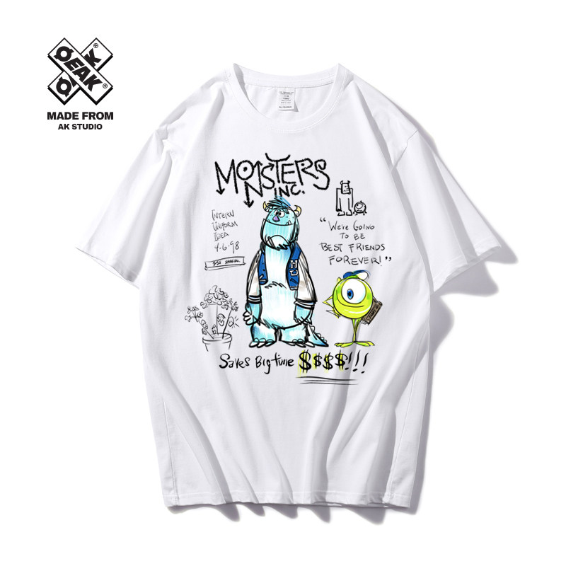 Монстр, футболка, мультяшная хлопковая брендовая парная одежда подходит для мужчин и женщин, 2020, для влюбленных, короткий рукав