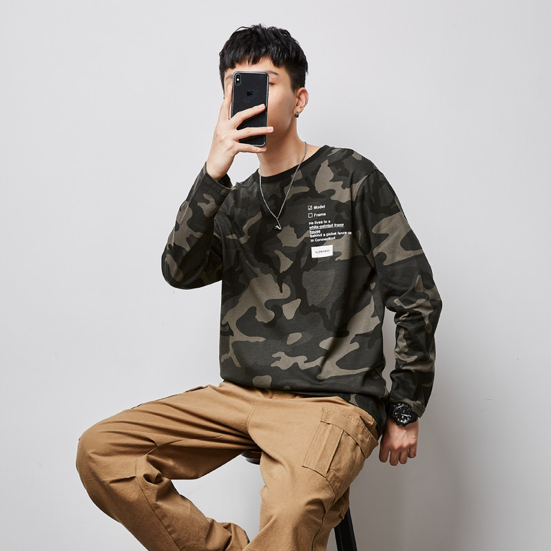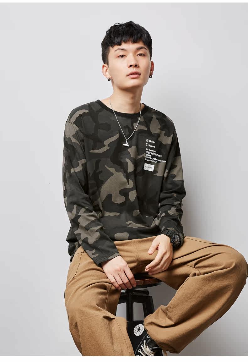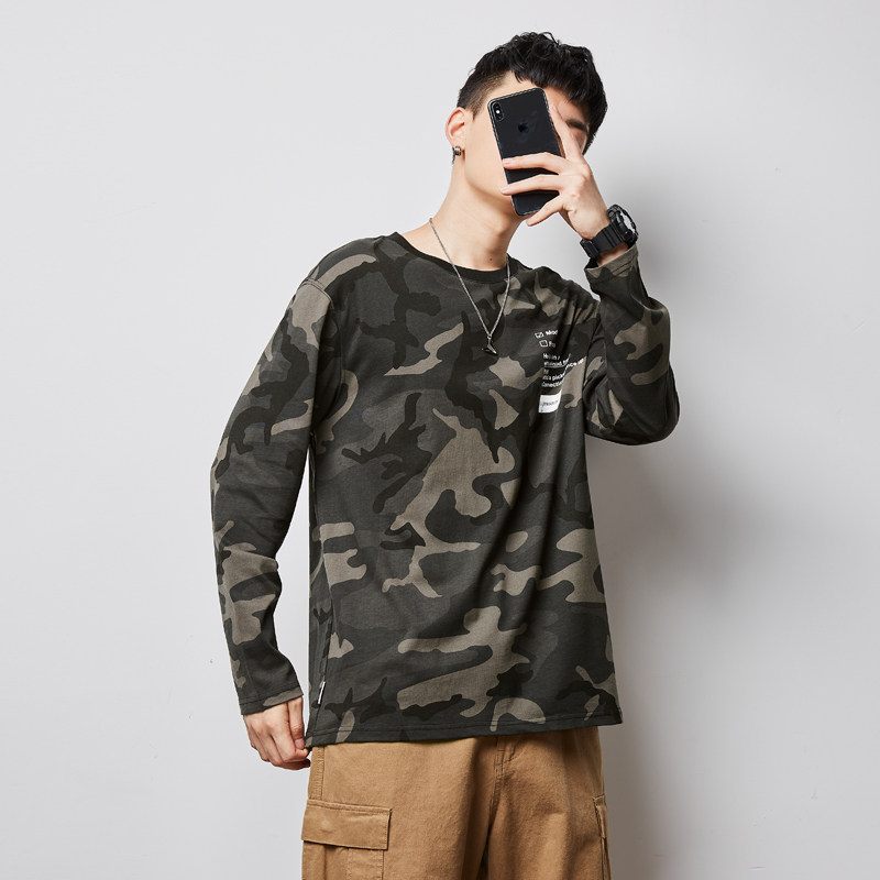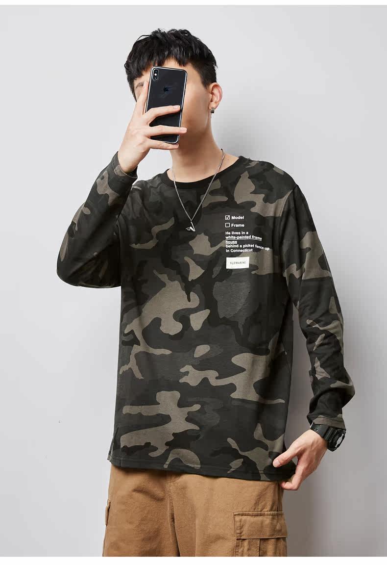Весенний камуфляжный трендовый лонгслив для школьников и студентов, коллекция 2021, тренд сезона, в корейском стиле, оверсайз