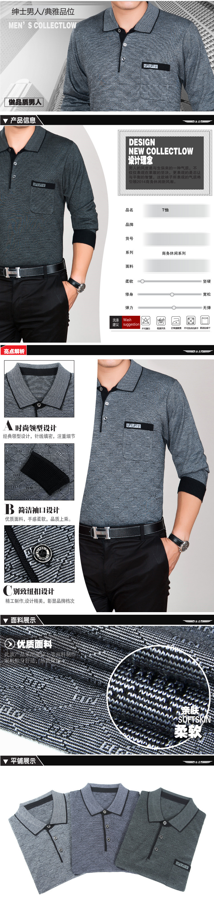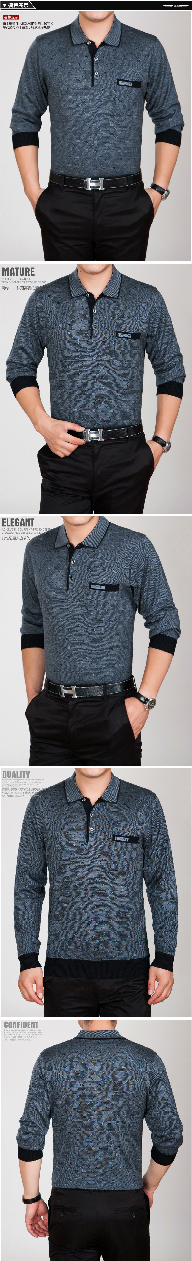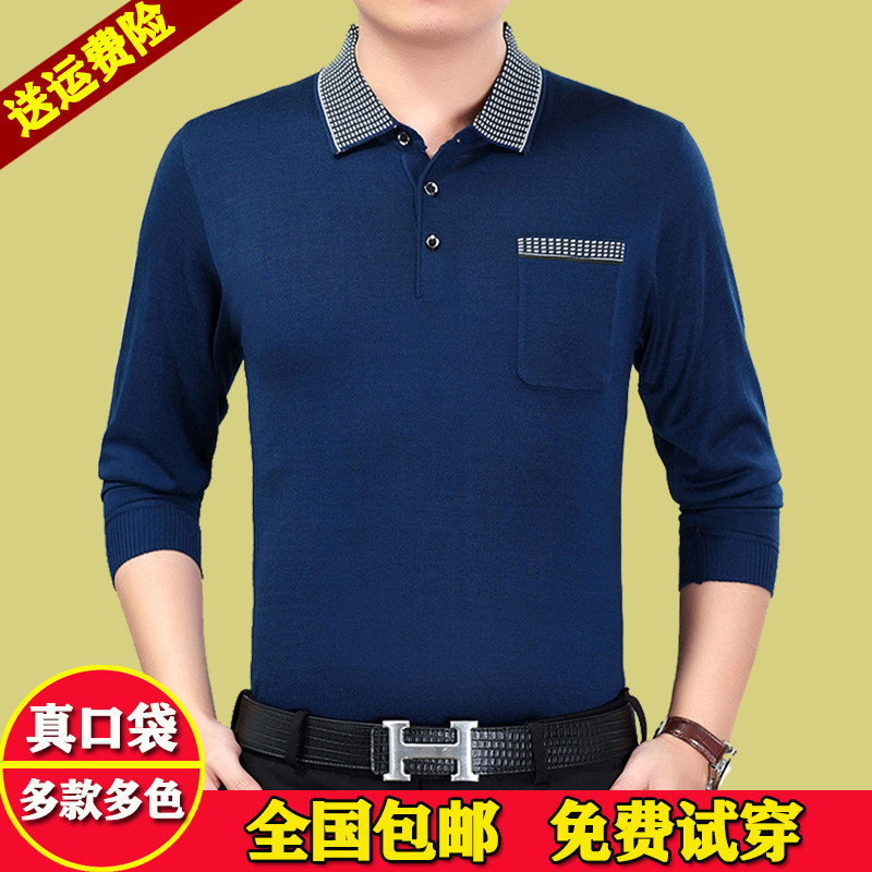 Летняя одежда, тонкий шелковый весенний лонгслив, для мужчины среднего возраста
