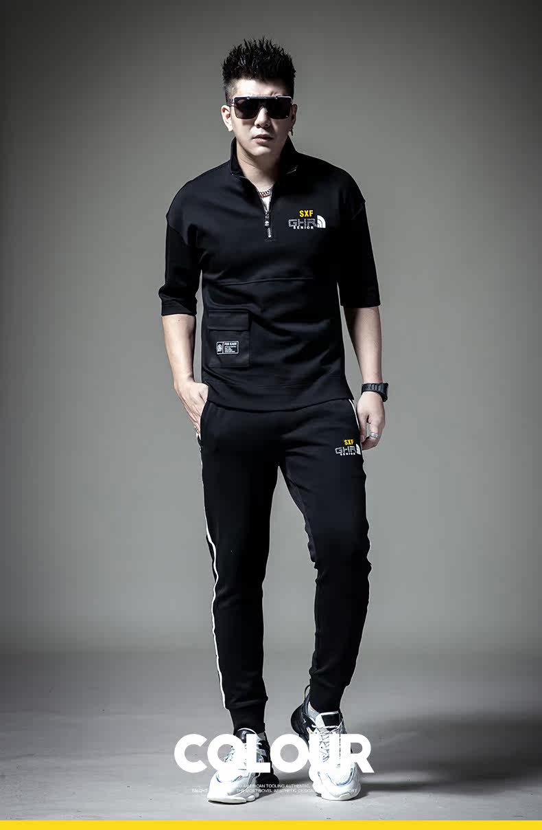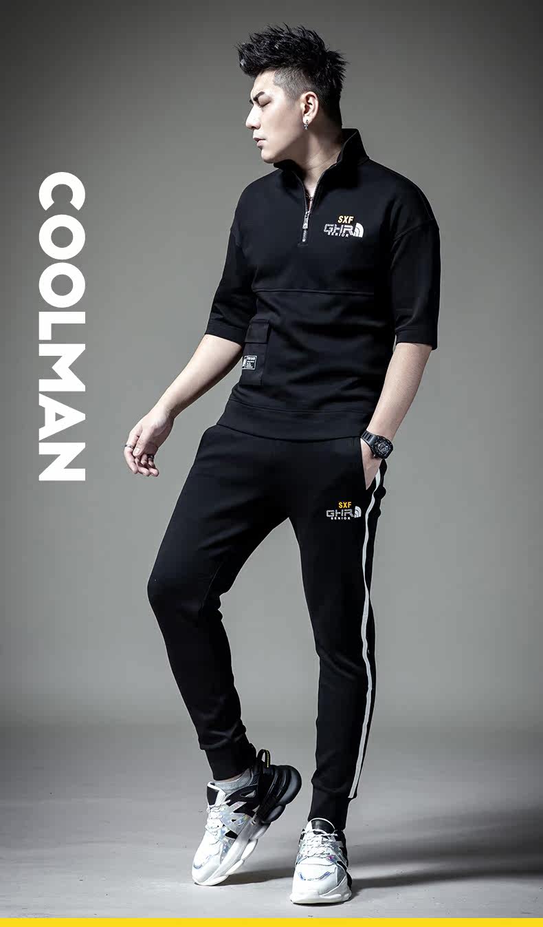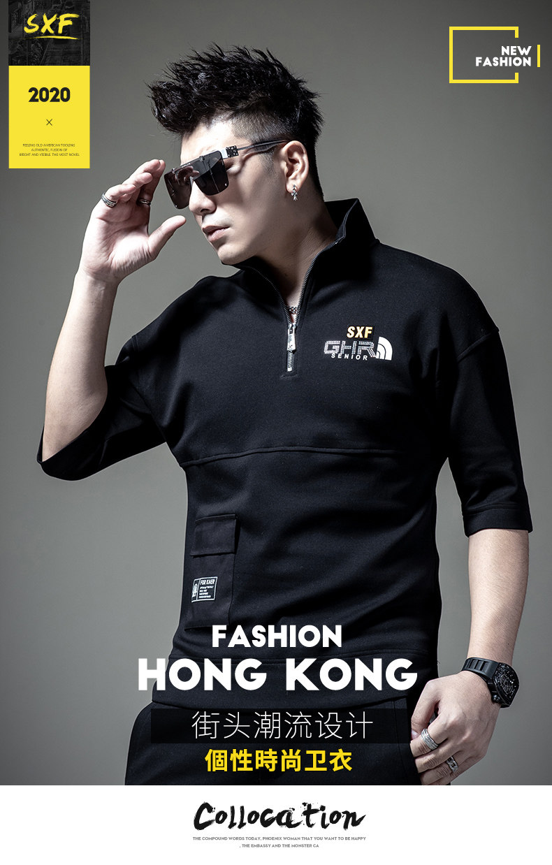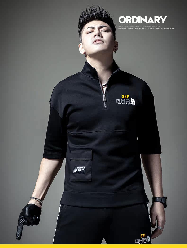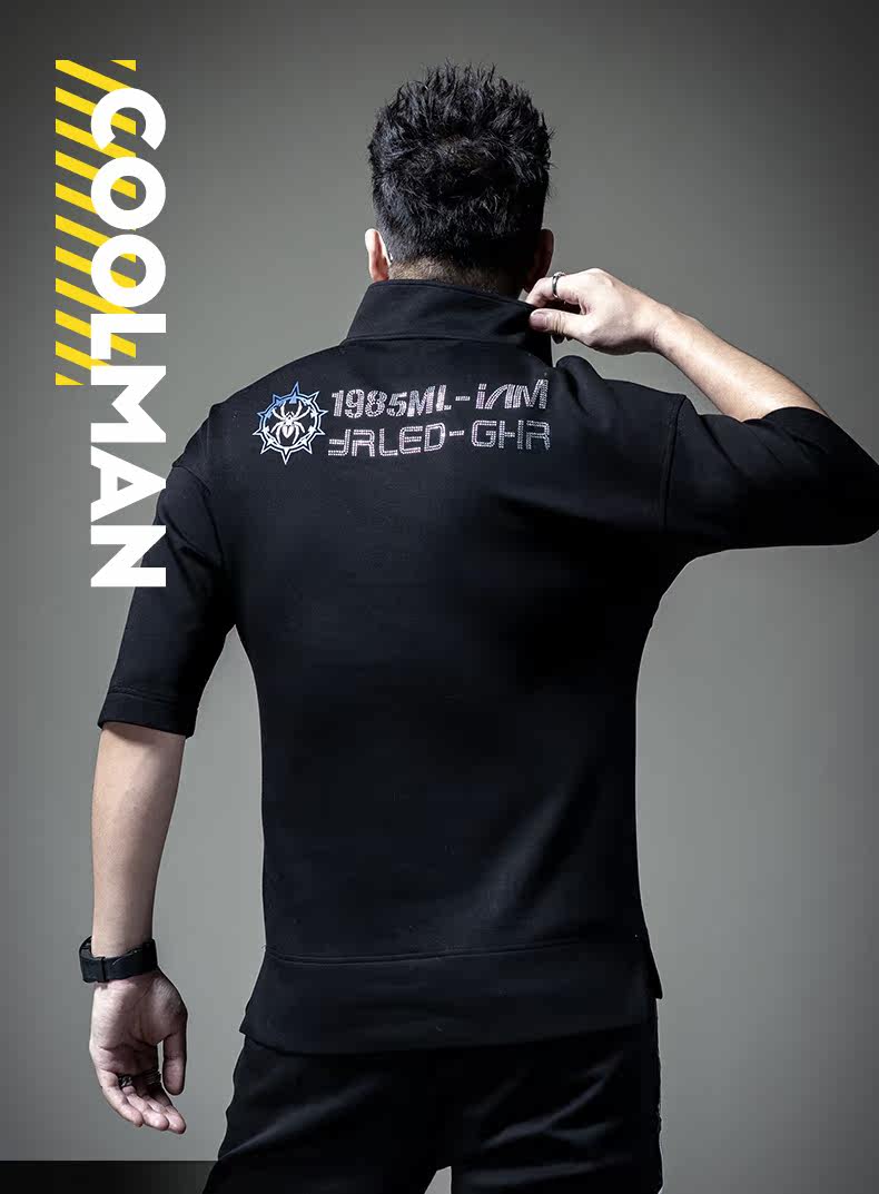 Мужская осенняя базовая приятная телу футболка с коротким рукавом с молнией