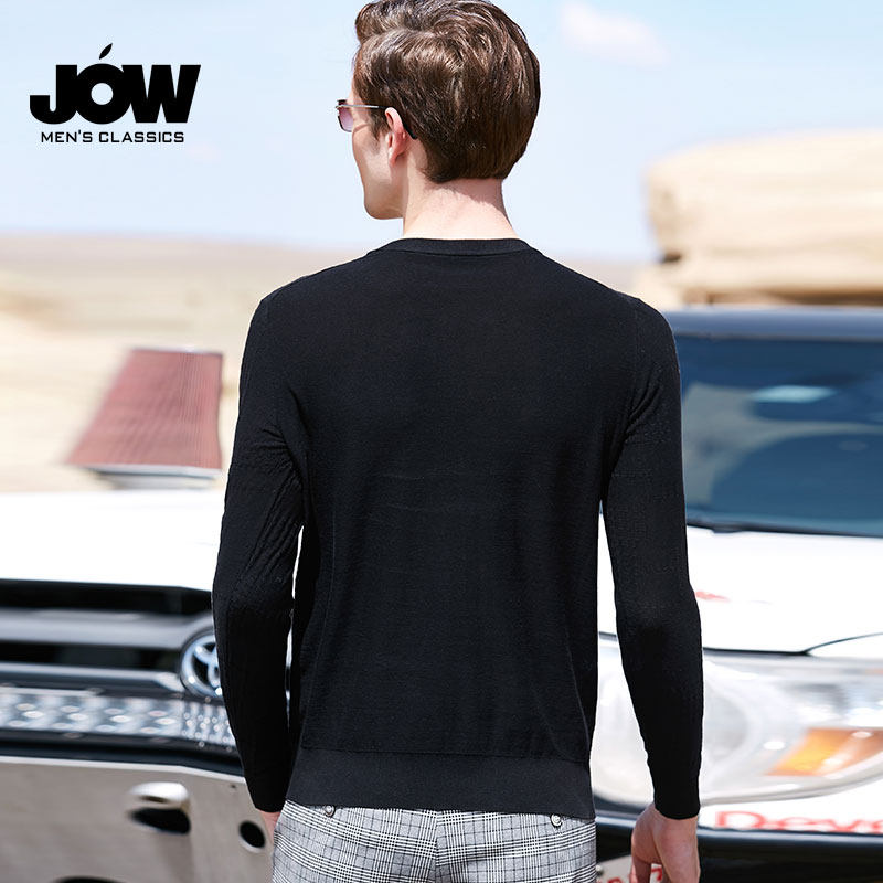 JOW/乔沃 Осенний шелковый однотонный трикотажный базовый приятный телу лонгслив с круглым воротником