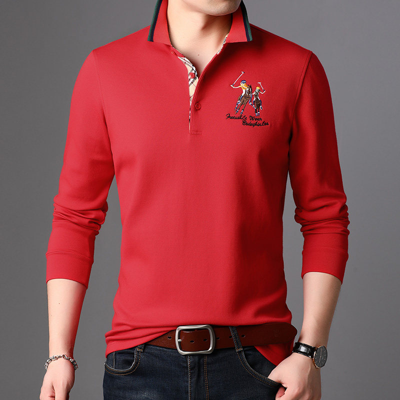 Футболка polo, осенний приталенный мужской хлопковый трендовый демисезонный лонгслив для отдыха, с вышивкой