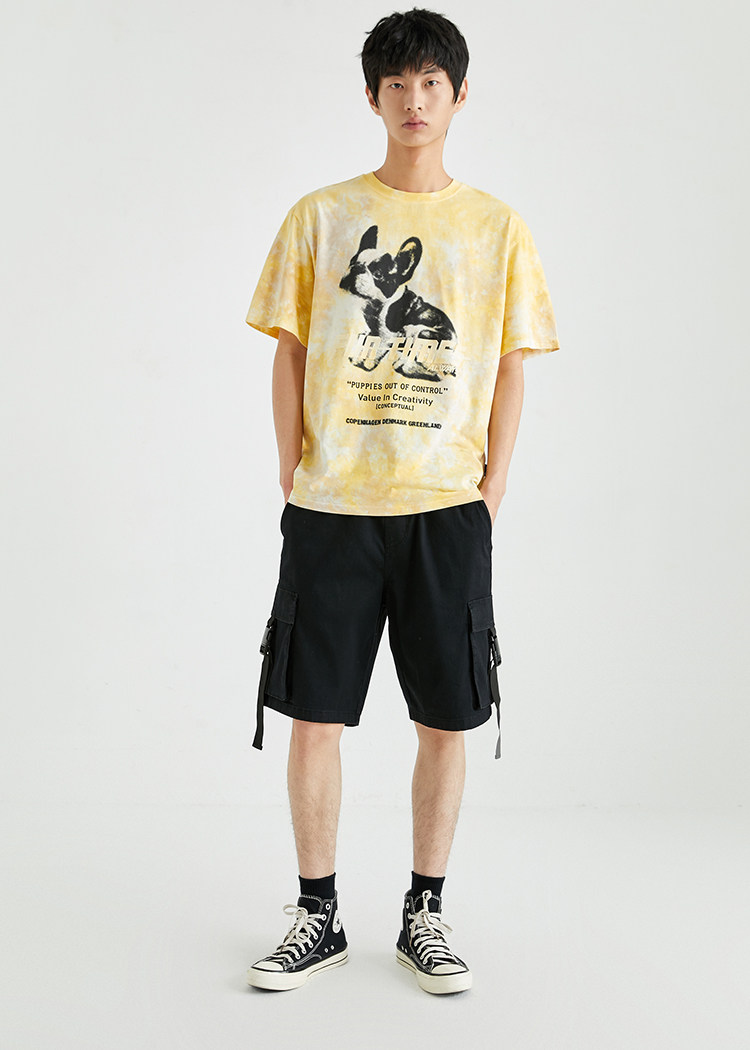 BZSJ Джек Джонс Осенний мужской прилив Контрастный цвет хлопок рыхлый резиновый принцип короткий -костюма T -Fork 220301167