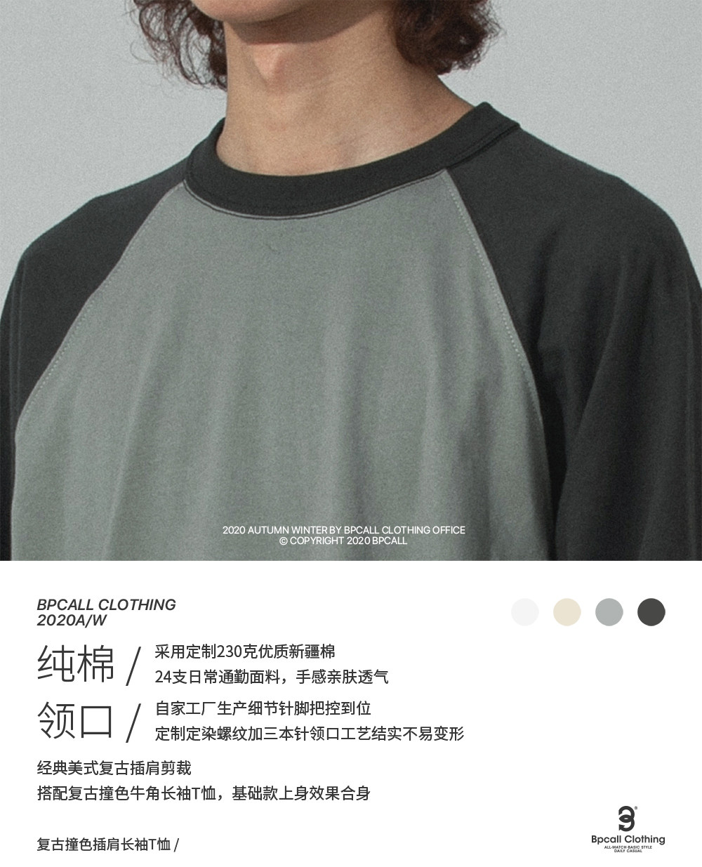 BPCALL Ретро японский лонгслив, хлопковая футболка, в американском стиле