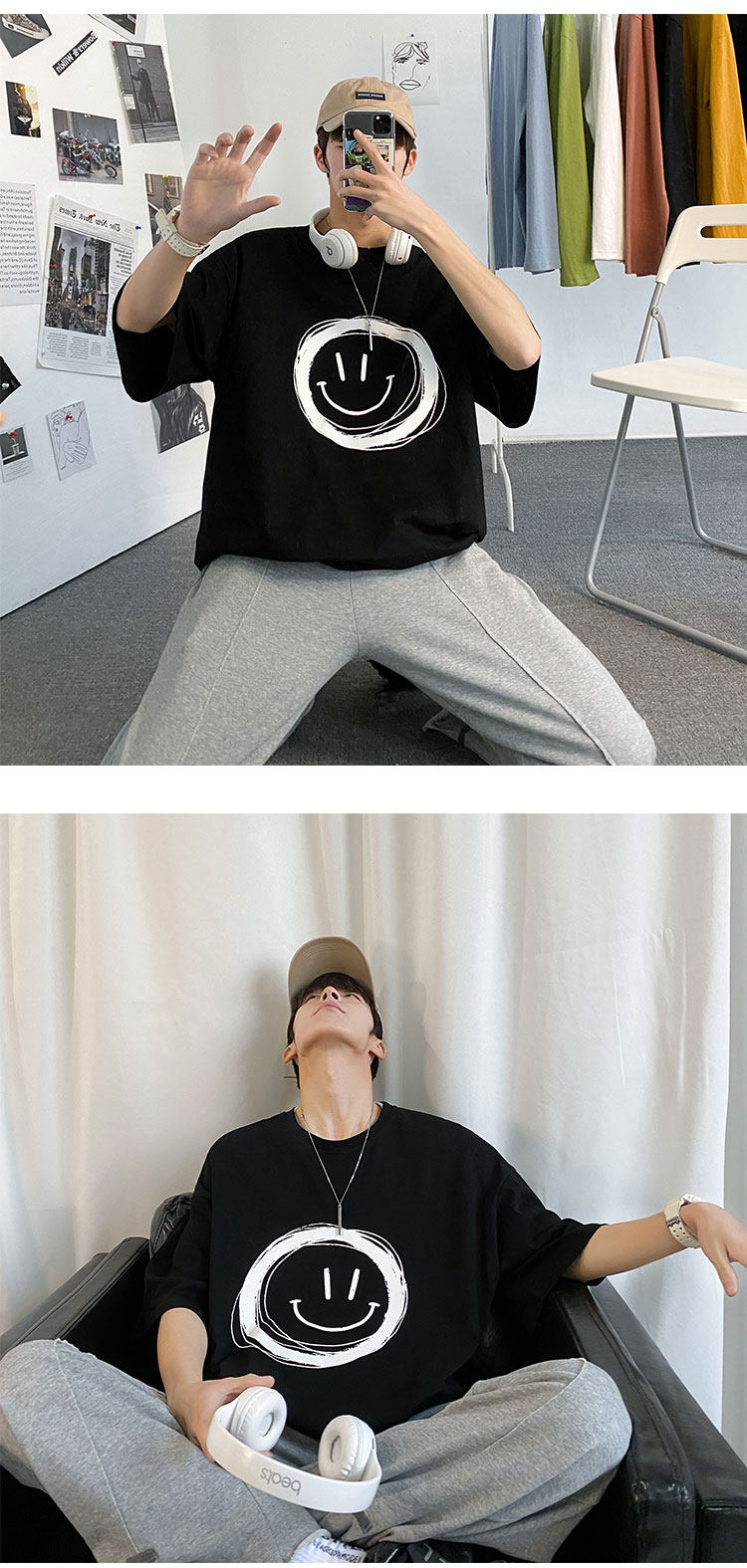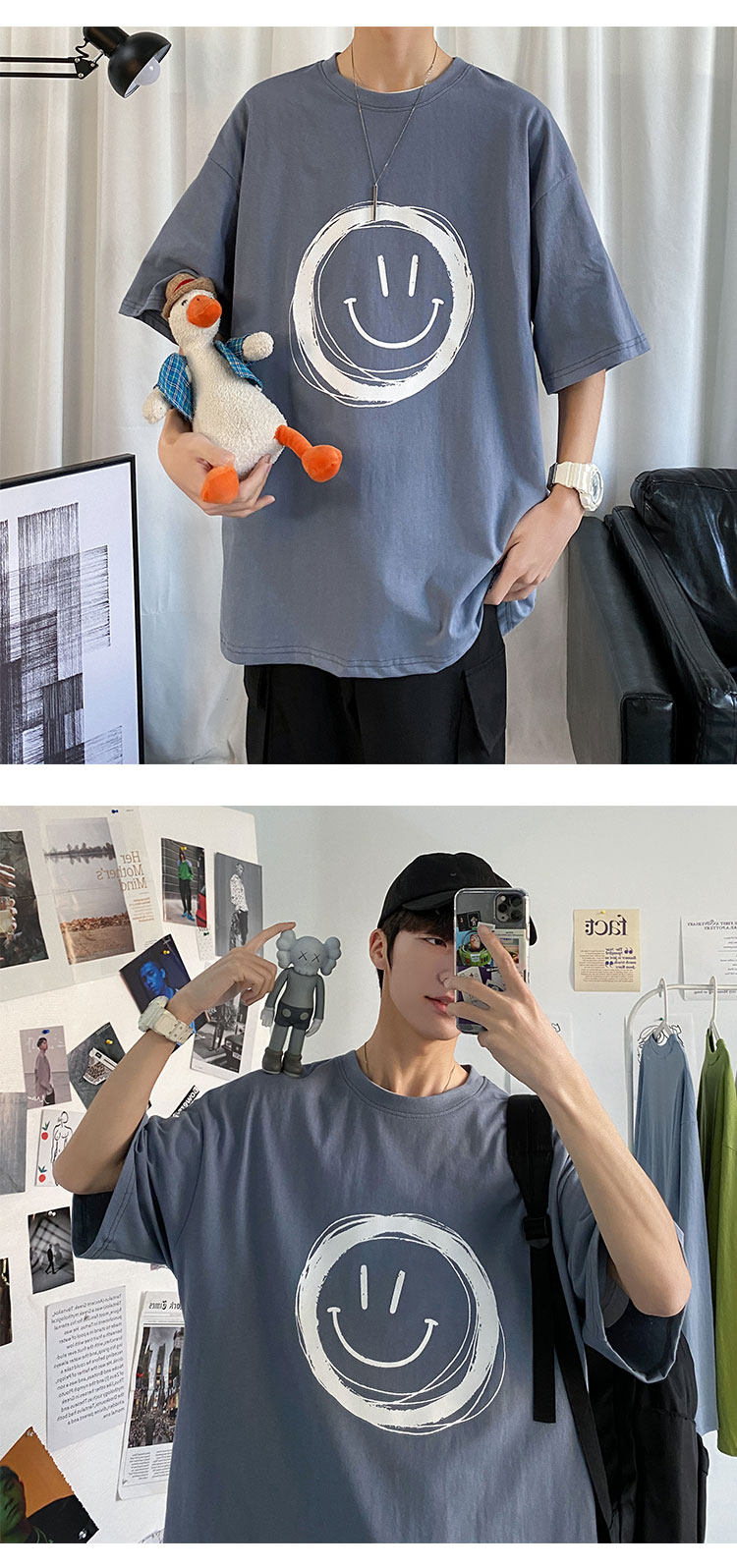 Tide, летняя трендовая хлопковая футболка с коротким рукавом, в корейском стиле, свободный крой