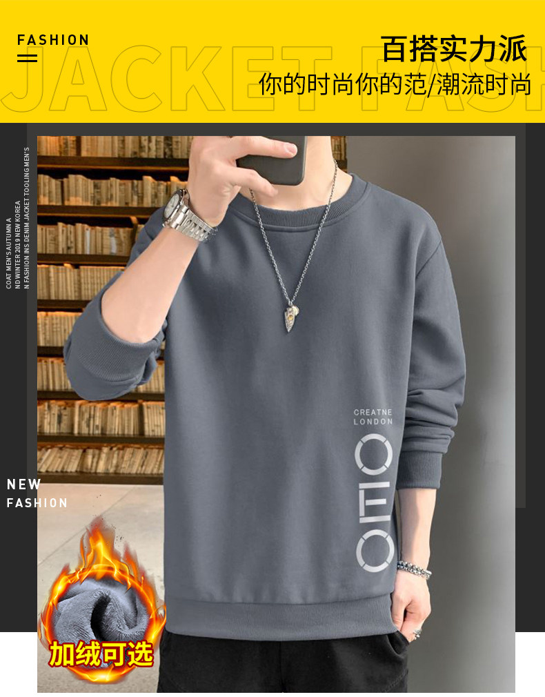 Tide, демисезонная осенняя толстовка, трендовая универсальная утепленный лонгслив, оверсайз