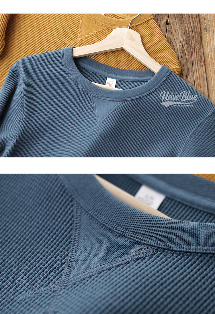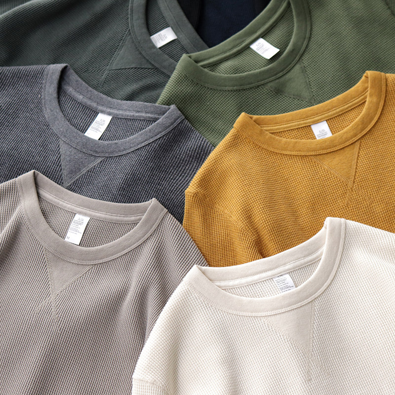Мужской базовый приятный телу хлопковый ретро лонгслив с круглым воротником, в американском стиле, облегающий крой