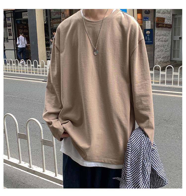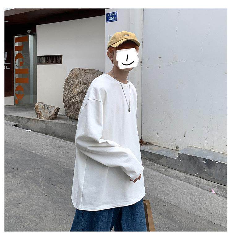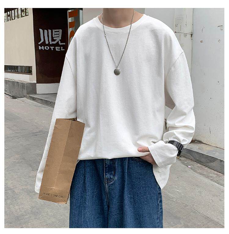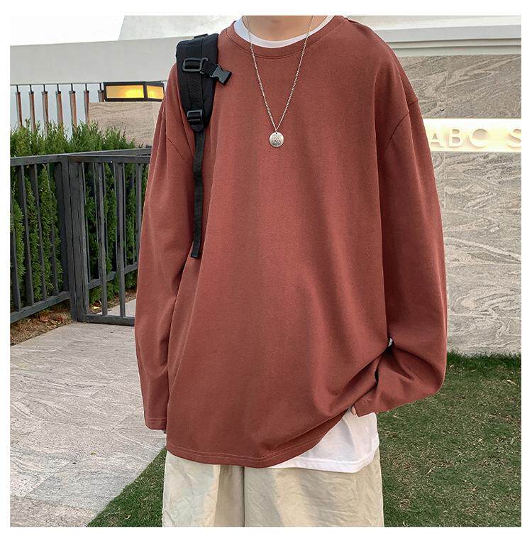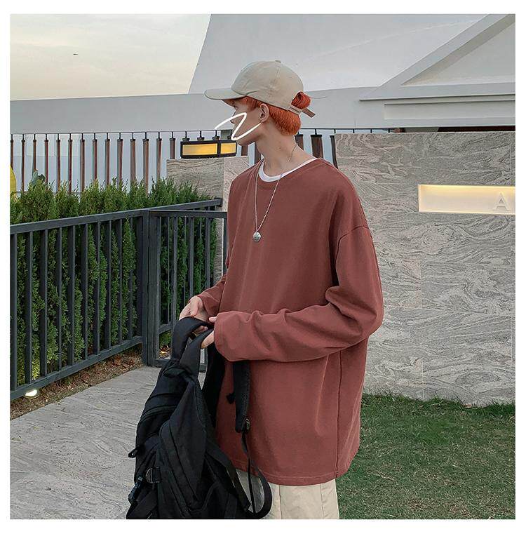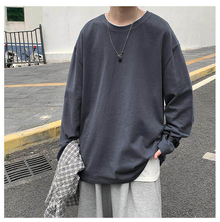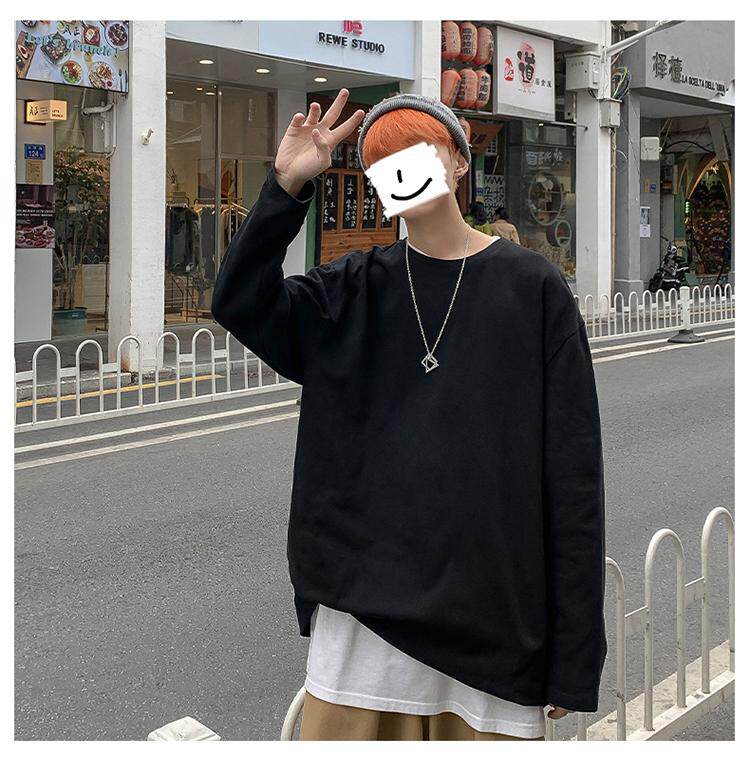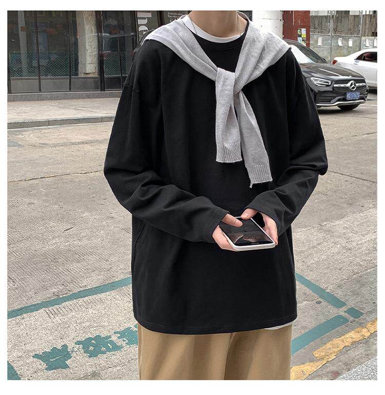 Мужской трендовый базовый приятный телу лонгслив, в корейском стиле, оверсайз, большой размер