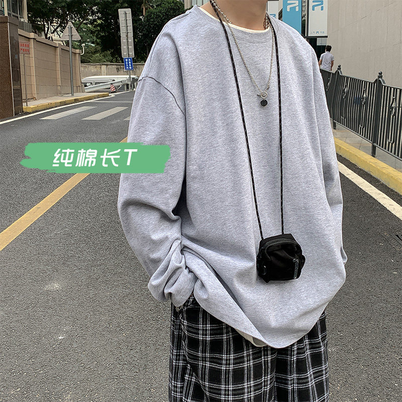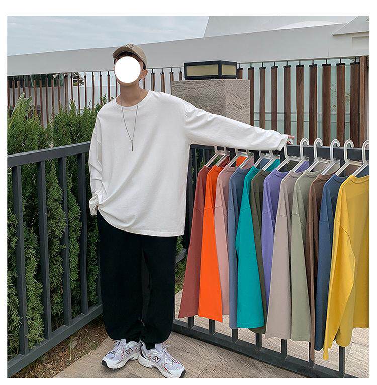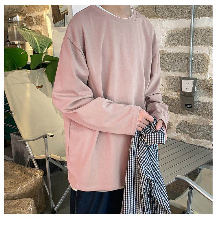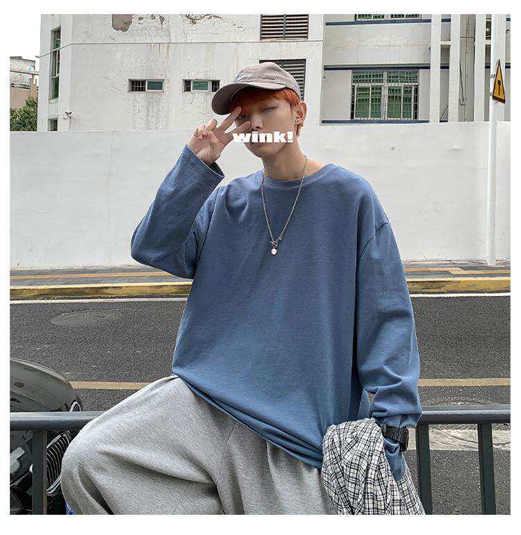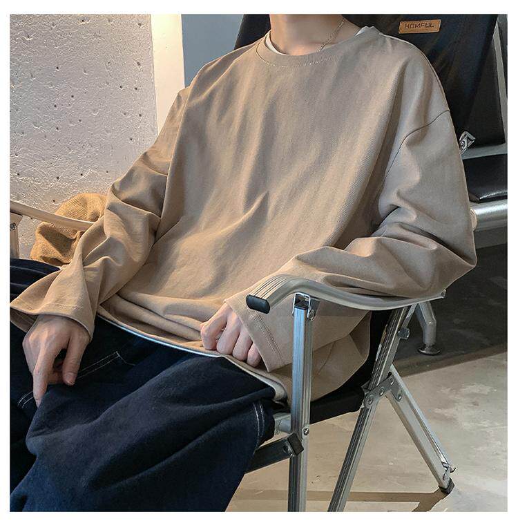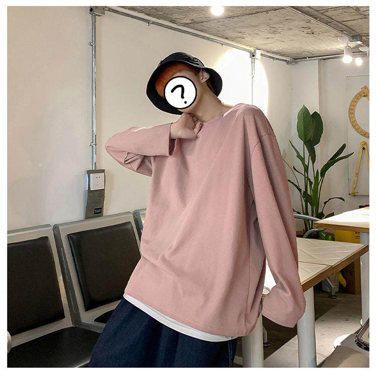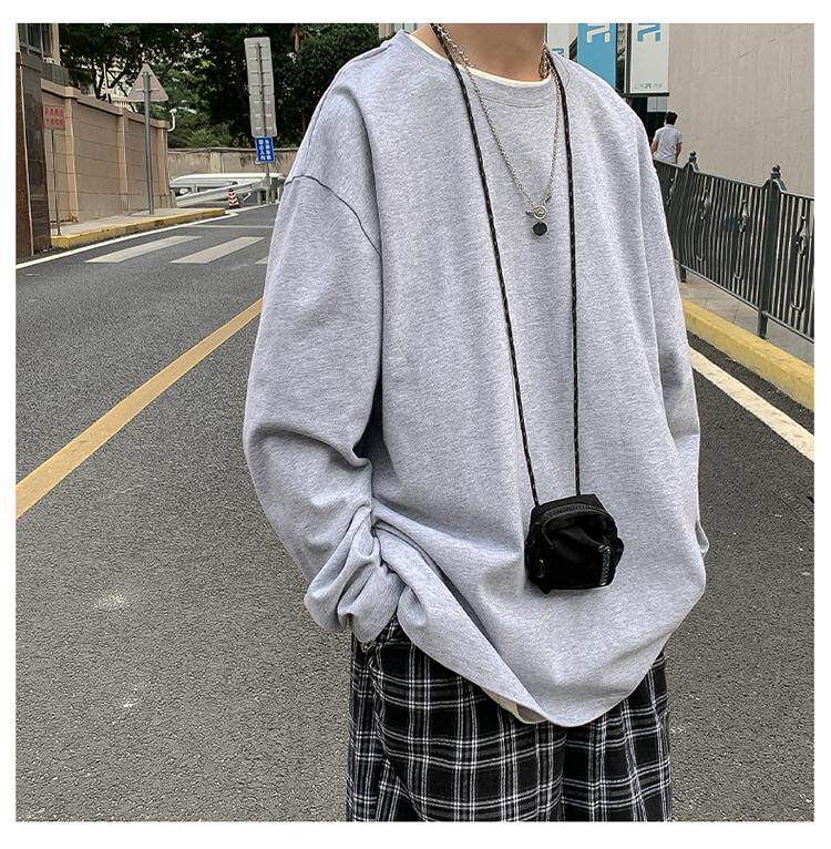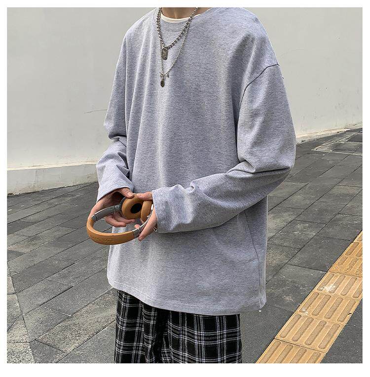 Мужской трендовый базовый приятный телу лонгслив, в корейском стиле, оверсайз, большой размер
