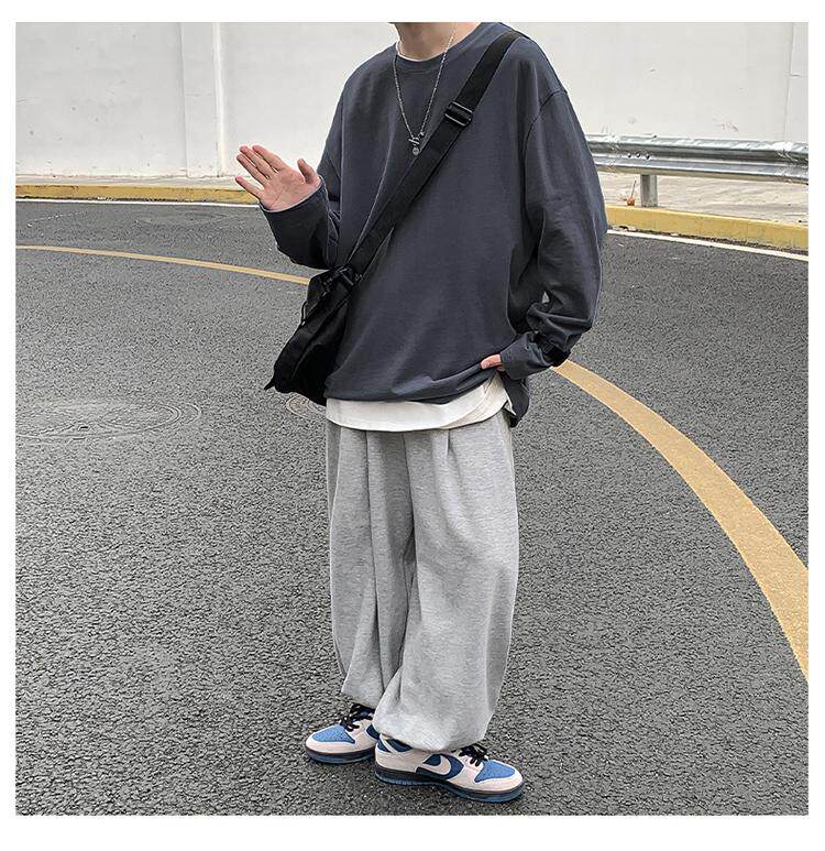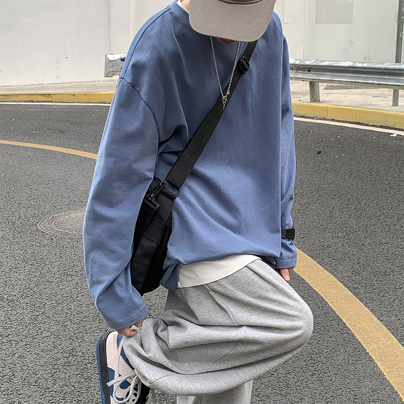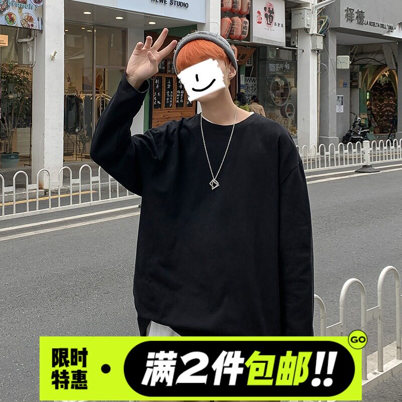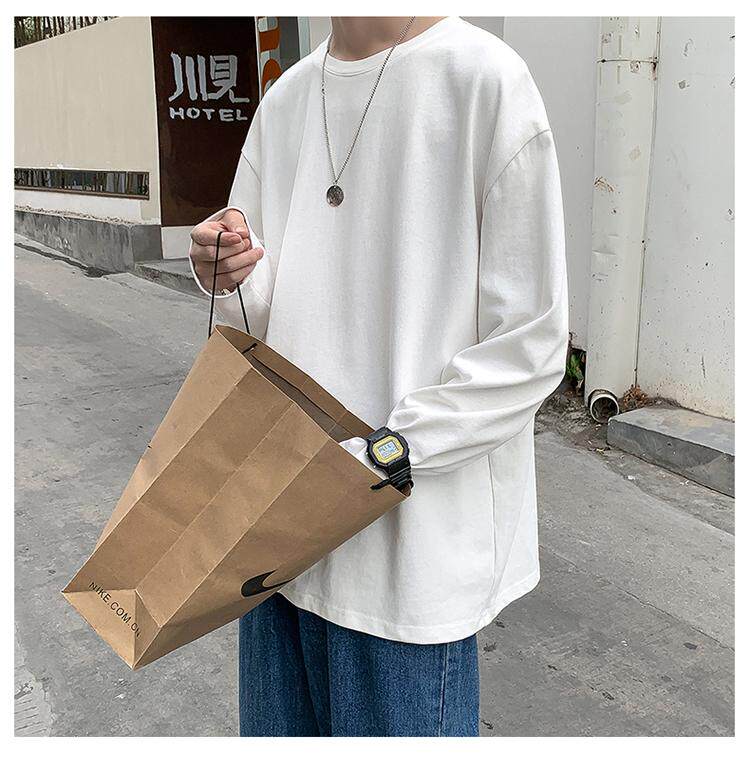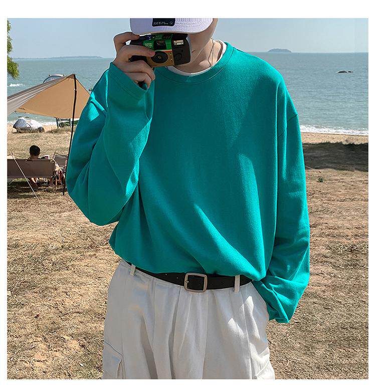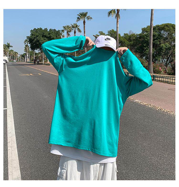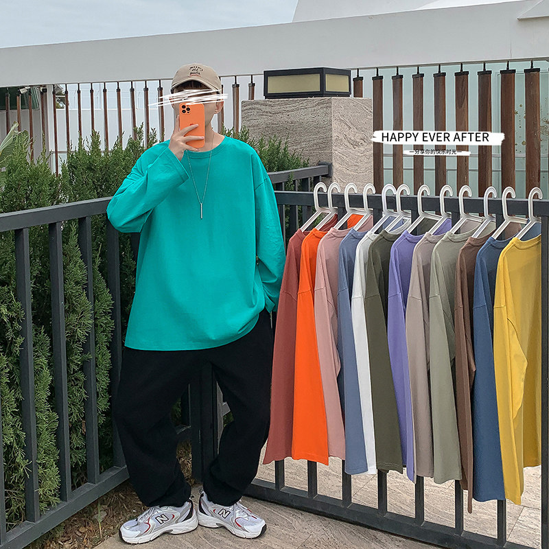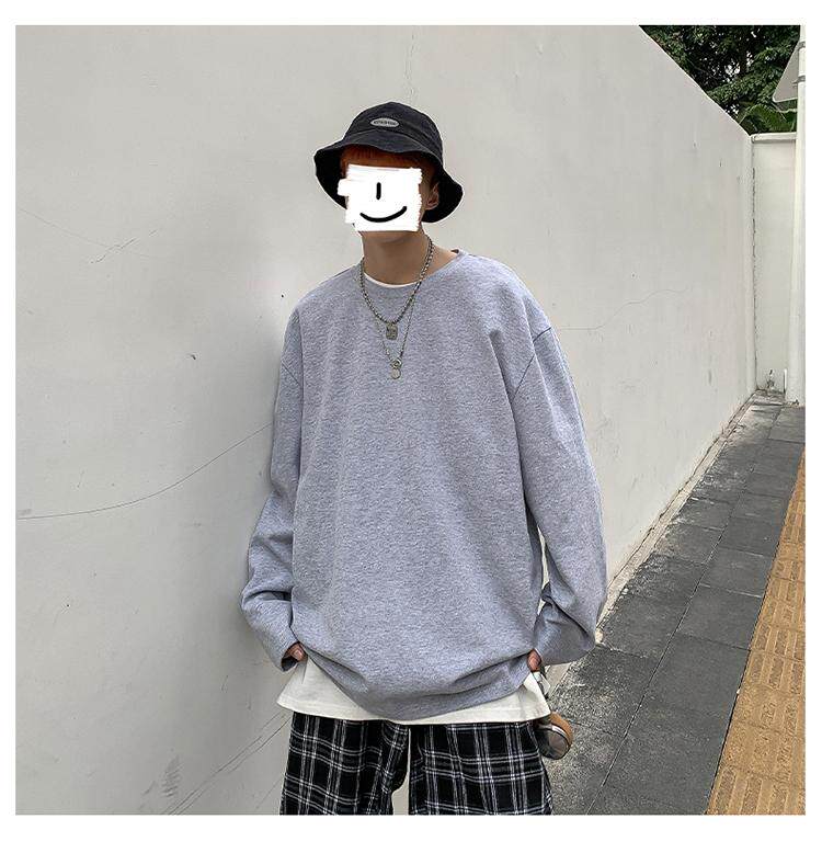 Мужской трендовый базовый приятный телу лонгслив, в корейском стиле, оверсайз, большой размер