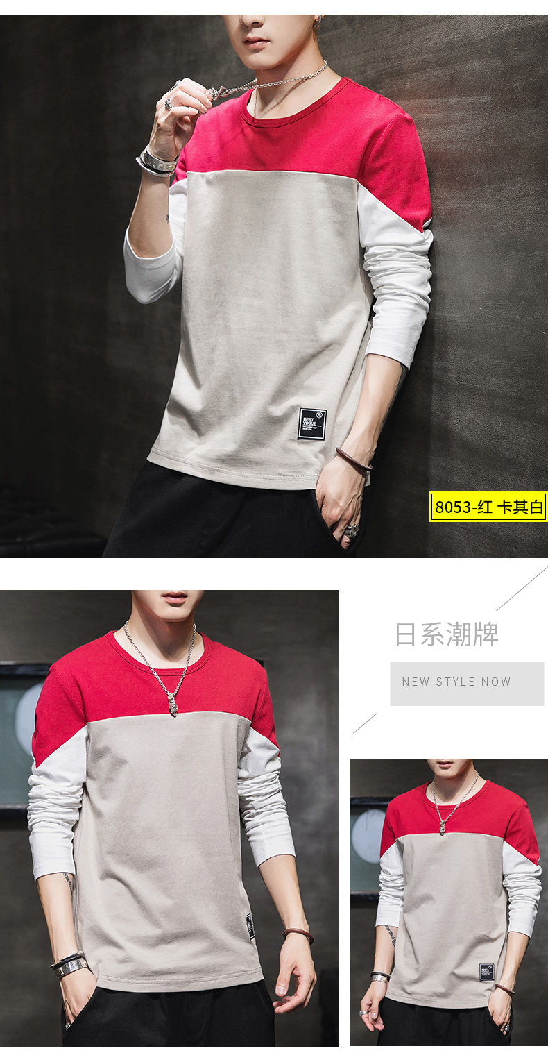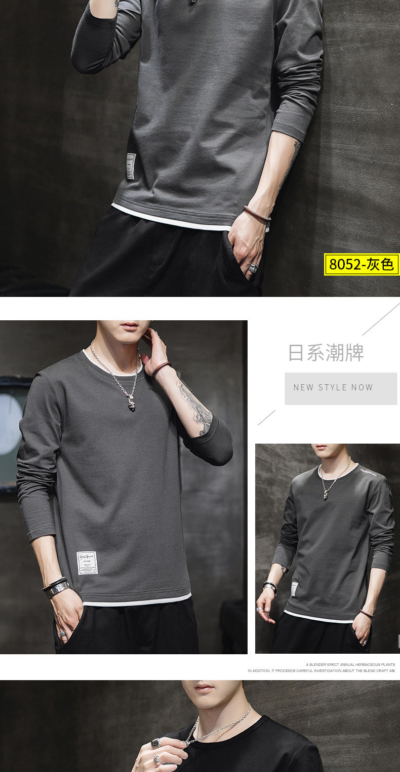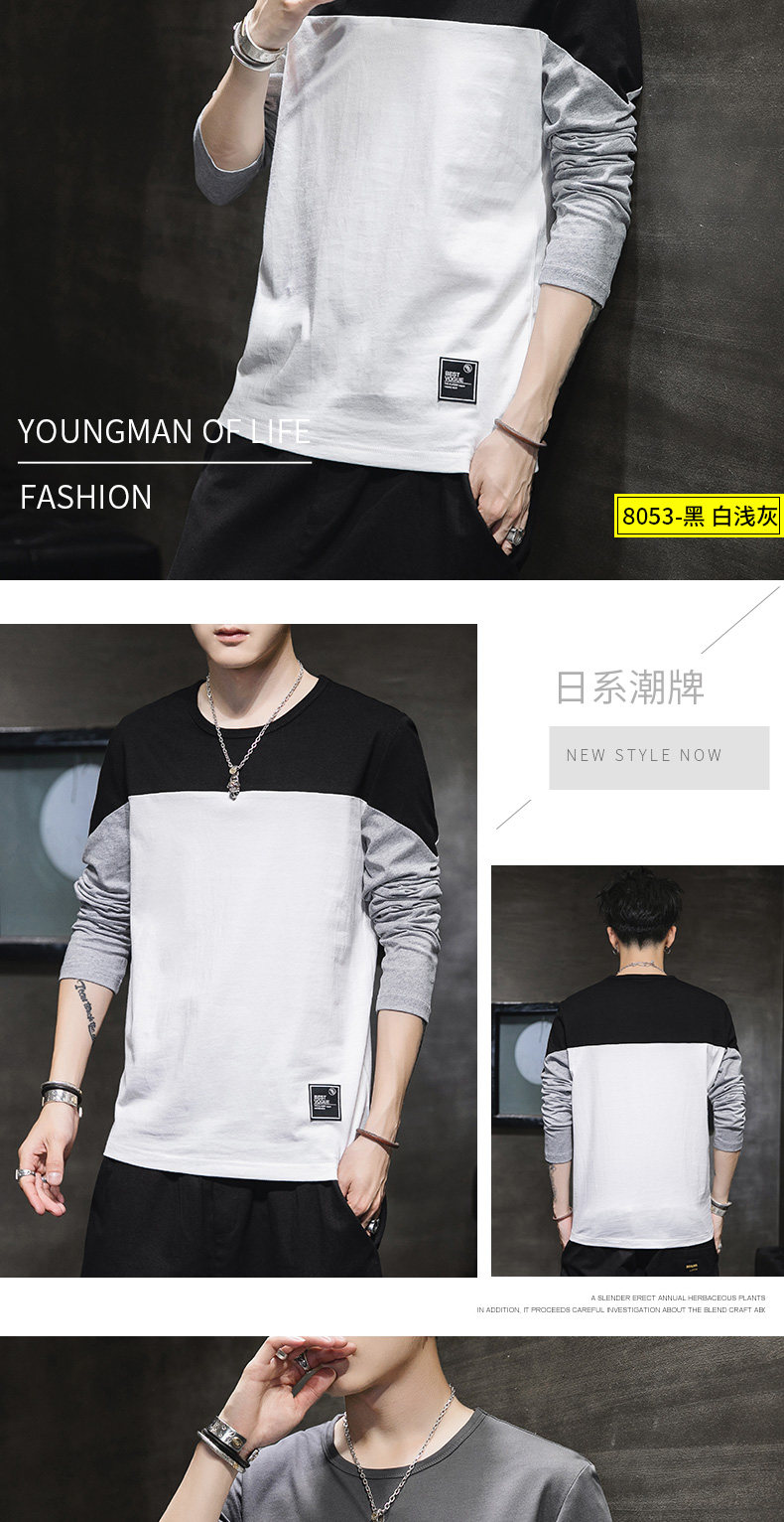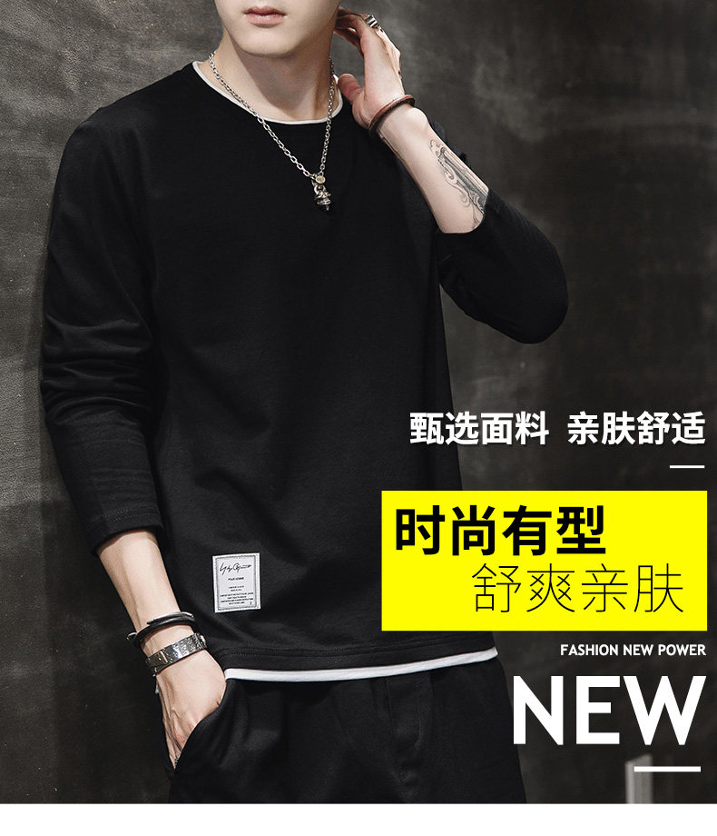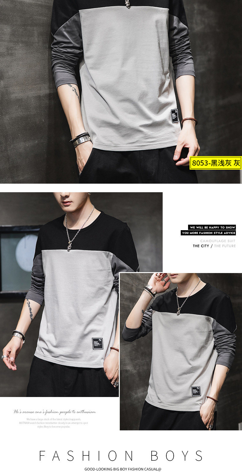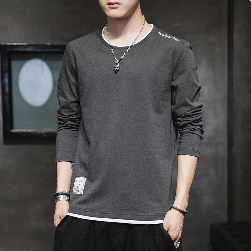 Мужской осенний демисезонный трендовый хлопковый универсальный лонгслив, осенняя толстовка, в корейском стиле