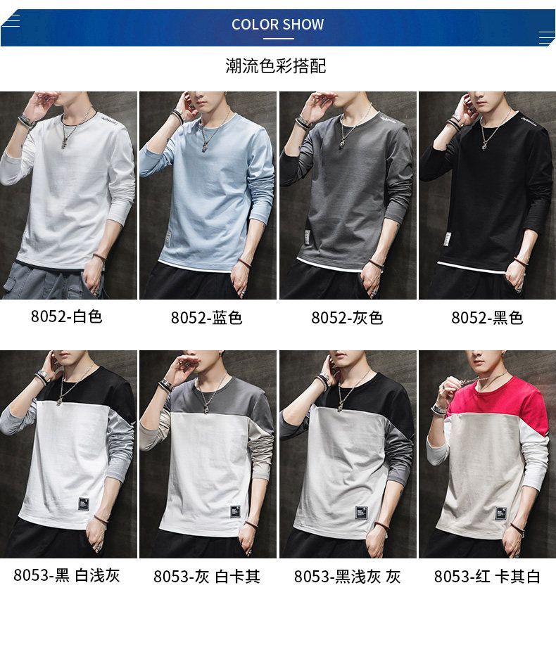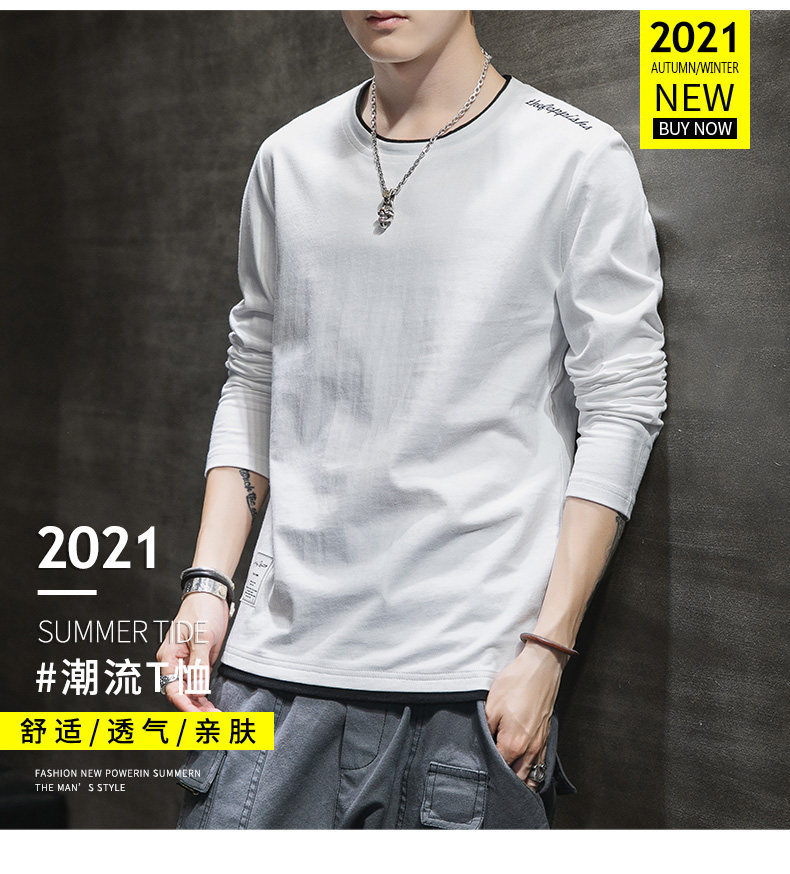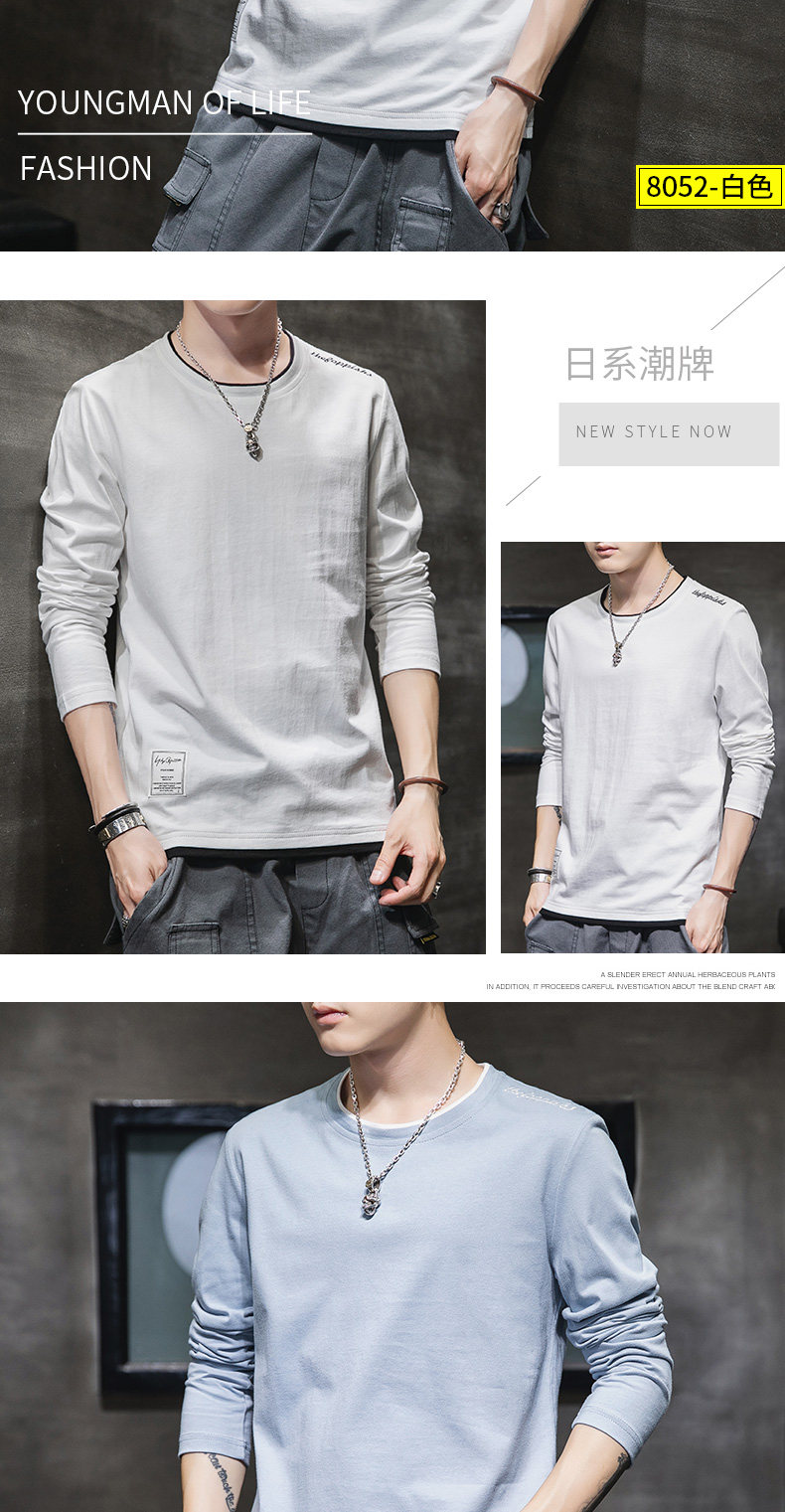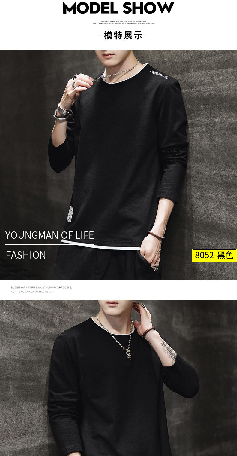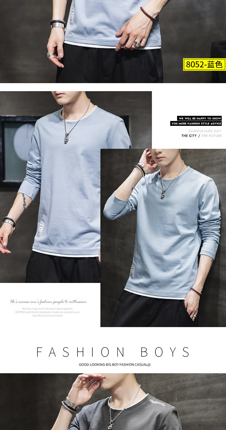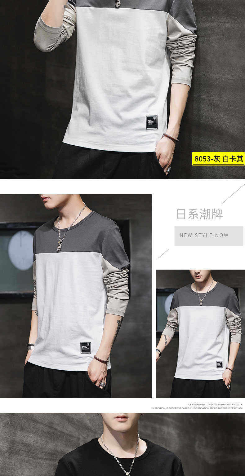 Мужской осенний демисезонный трендовый хлопковый универсальный лонгслив, осенняя толстовка, в корейском стиле