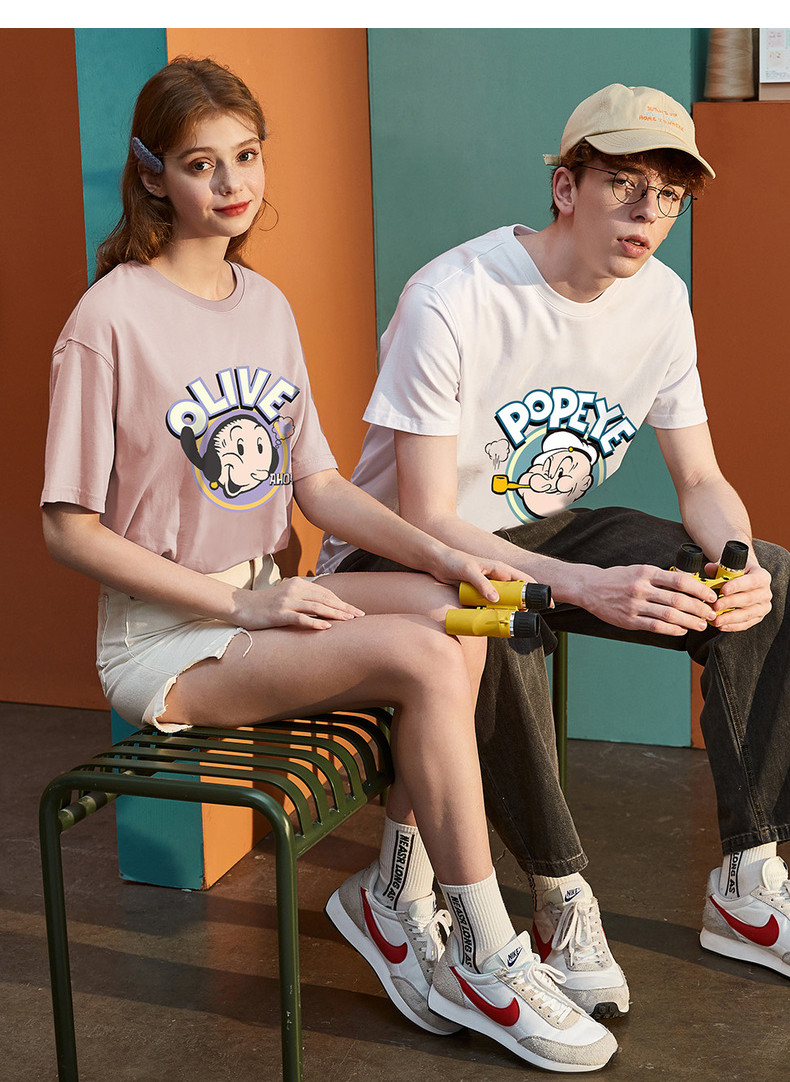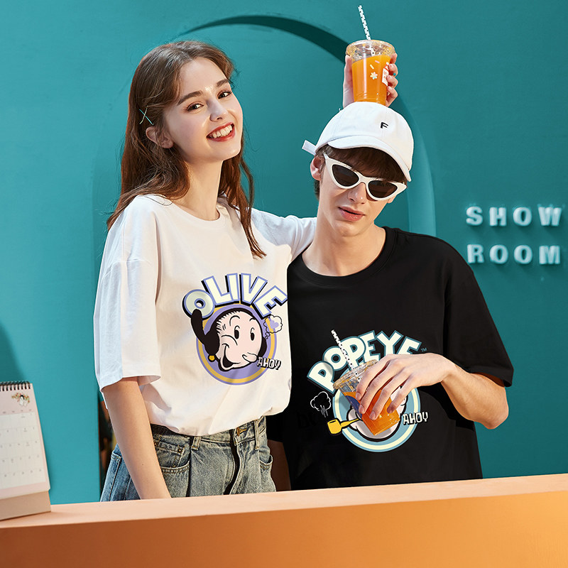 Летняя футболка с коротким рукавом, парная одежда, мультяшная трендовая брендовая летняя одежда, коллекция 2021, для влюбленных, оверсайз