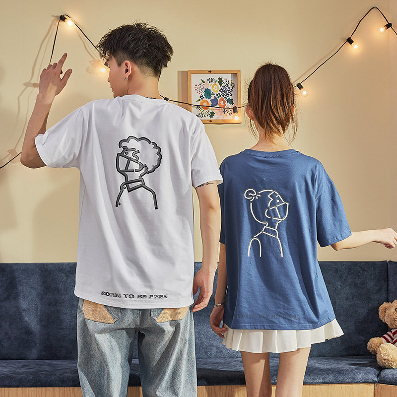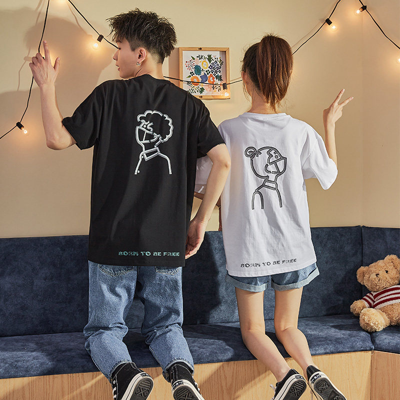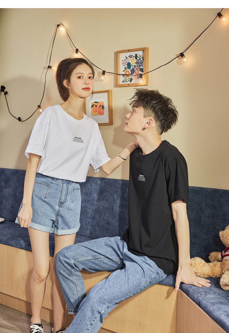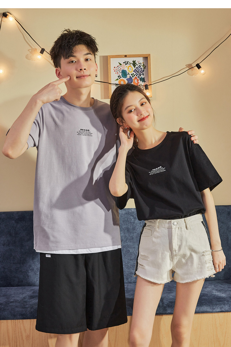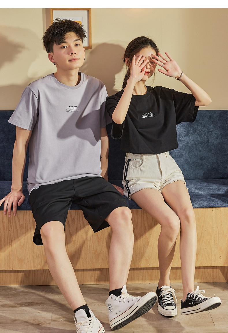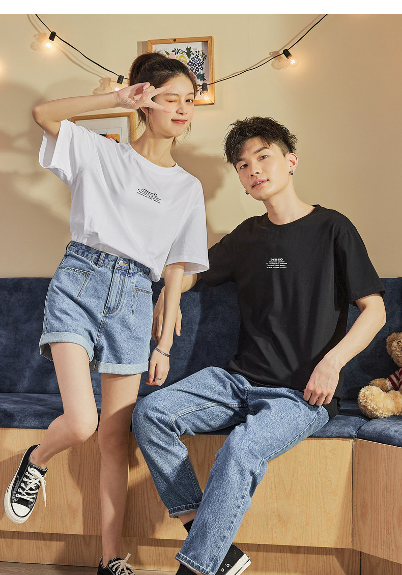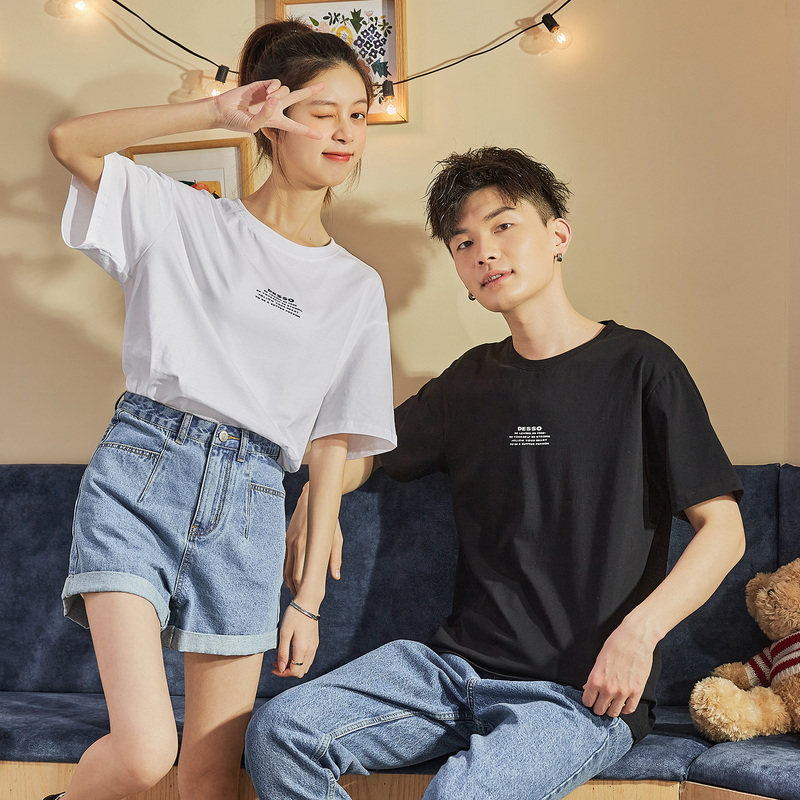 Парная одежда, летняя хлопковая трендовая футболка с коротким рукавом для школьников и студентов, для влюбленных, коллекция 2021, оверсайз