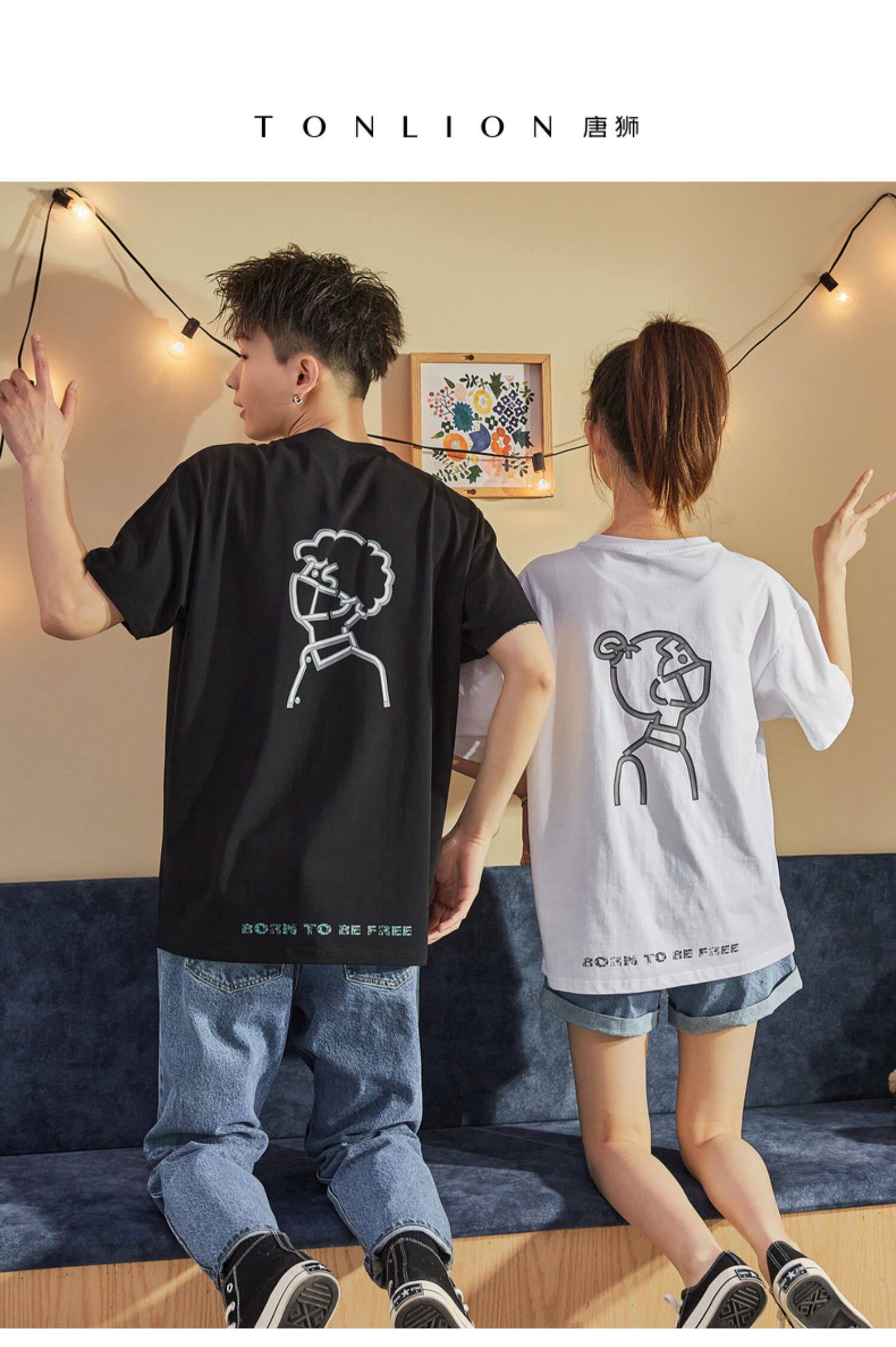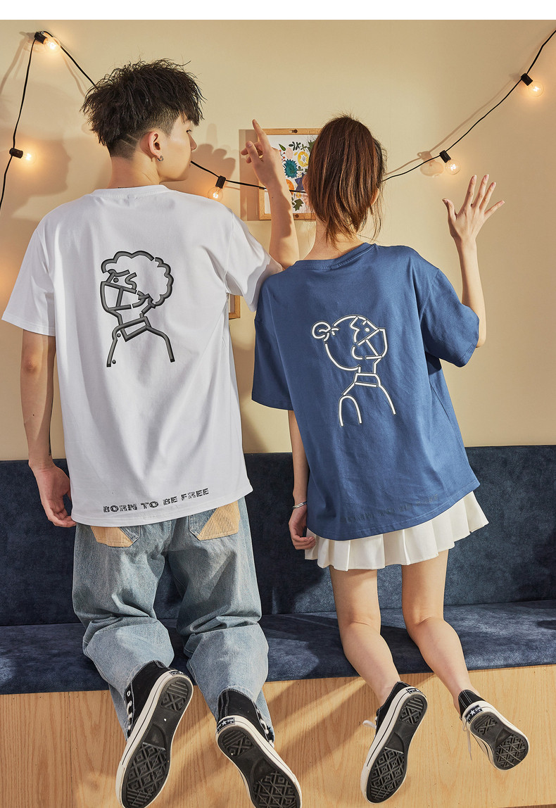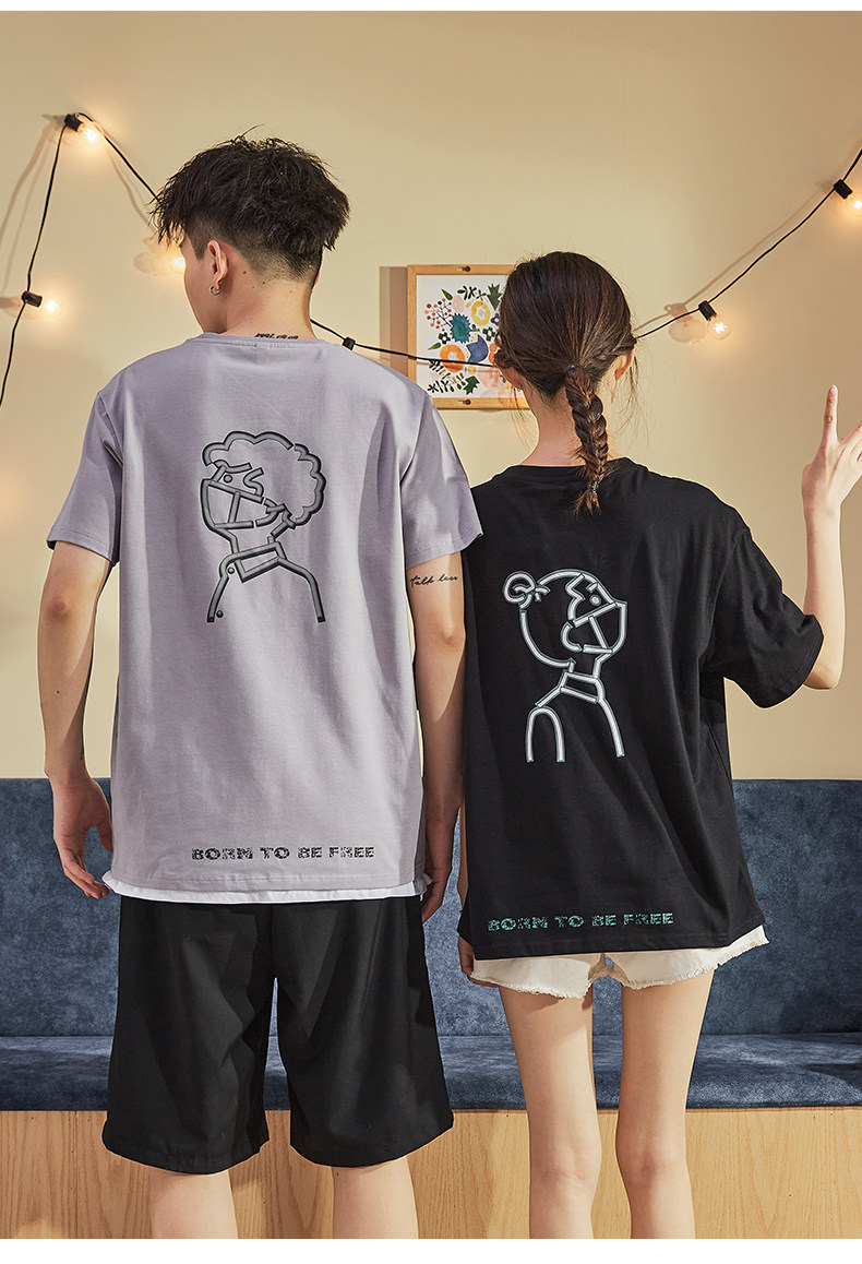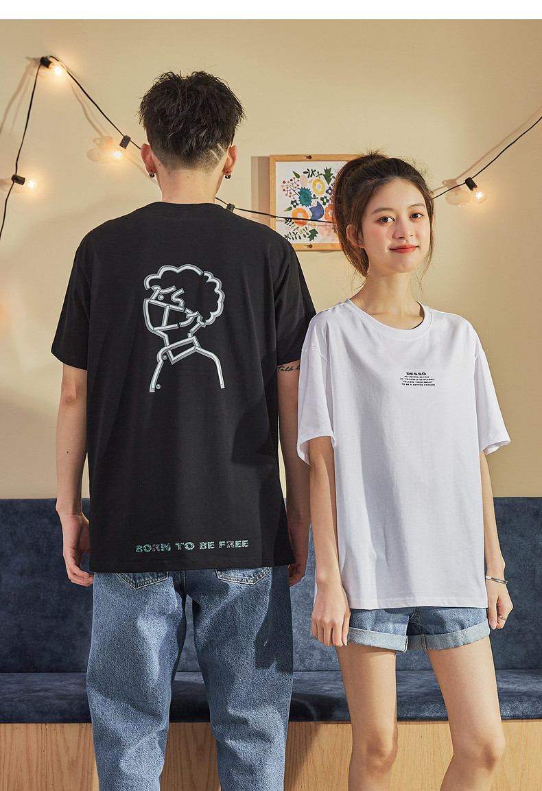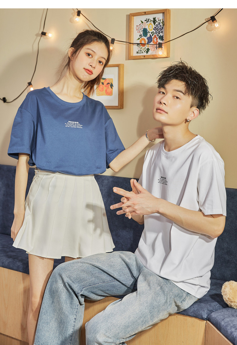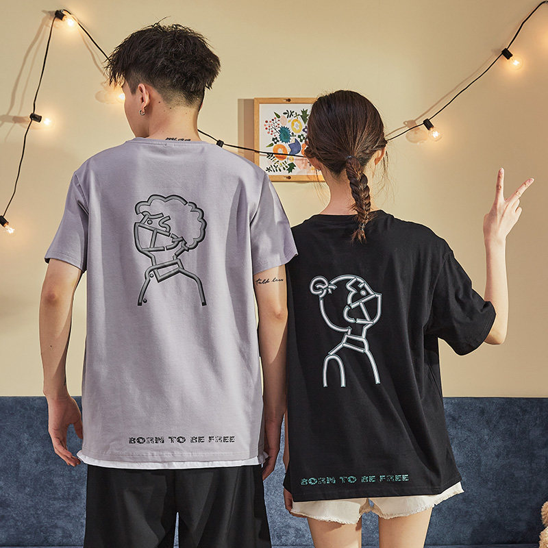 Парная одежда, летняя хлопковая трендовая футболка с коротким рукавом для школьников и студентов, для влюбленных, коллекция 2021, оверсайз