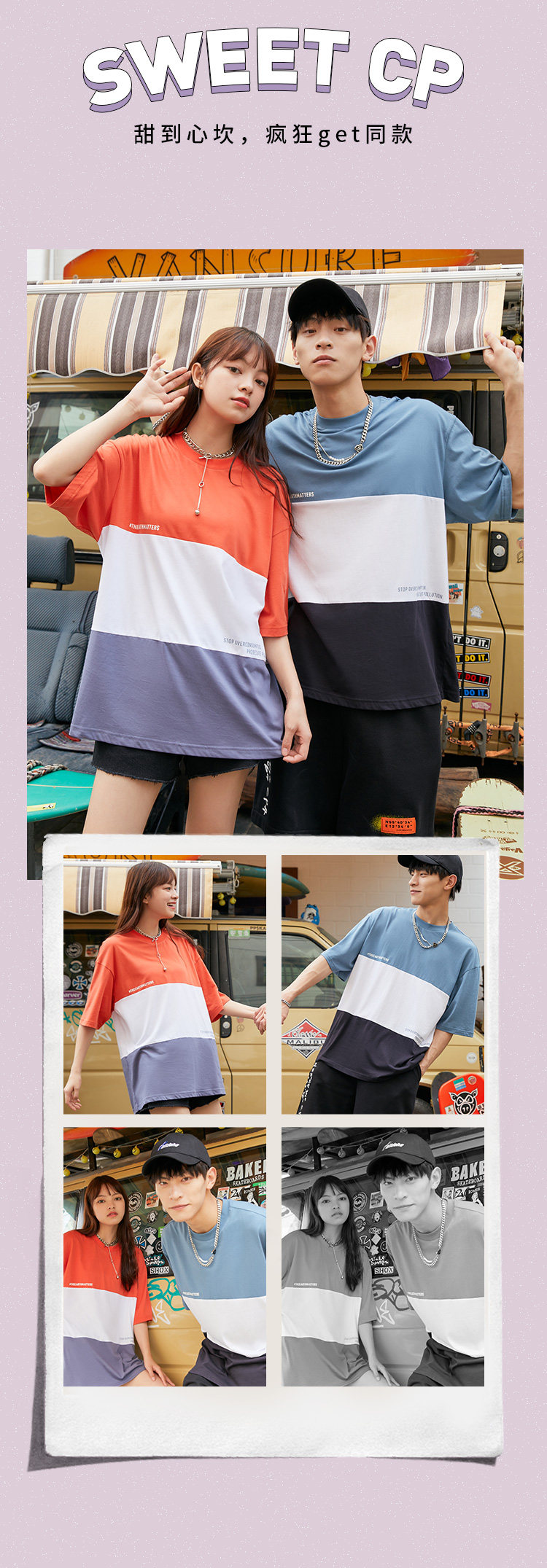 Летняя трендовая футболка с коротким рукавом для влюбленных для отдыха, оверсайз
