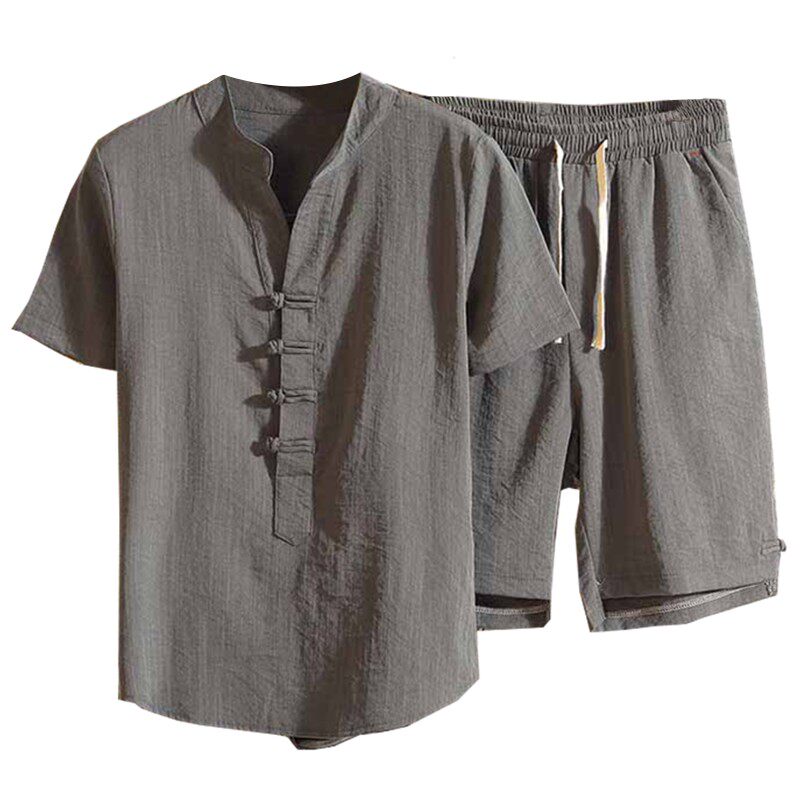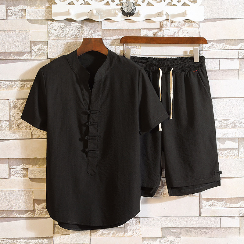 Летняя одежда, мужской комплект, летняя шелковая футболка с коротким рукавом, шорты, китайский стиль